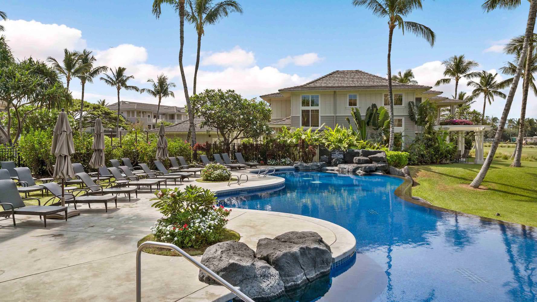 The Waikoloa Fairway Villas are located in an exquisite setting on the pristine private shores of King's Lake on the Waikoloa Beach Course. This luxurious villa provides a quiet and convenient location where you can enjoy the swimming pool, hot tub, onsite fitness facilities, shared gas grills, and nearby tennis/golf. The tropically landscaped property is close to shopping, championship golf, and ocean activities. Enjoy outstanding snorkeling and soak up the sun at "A" Bay.