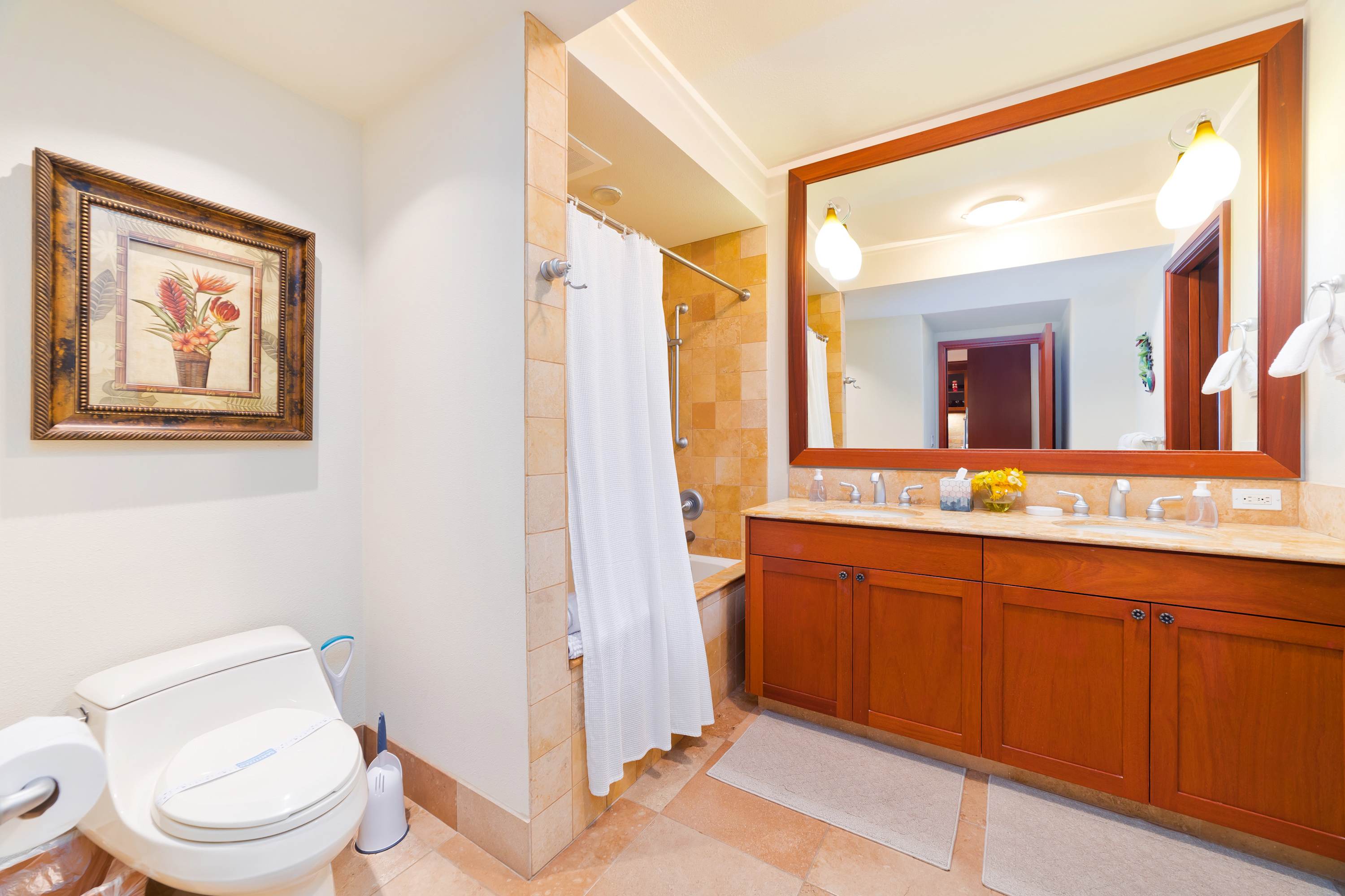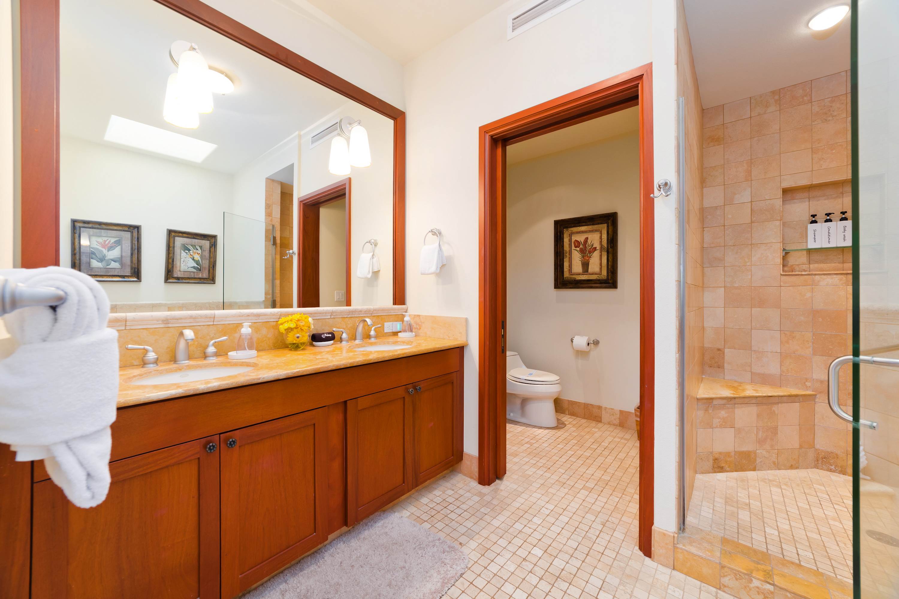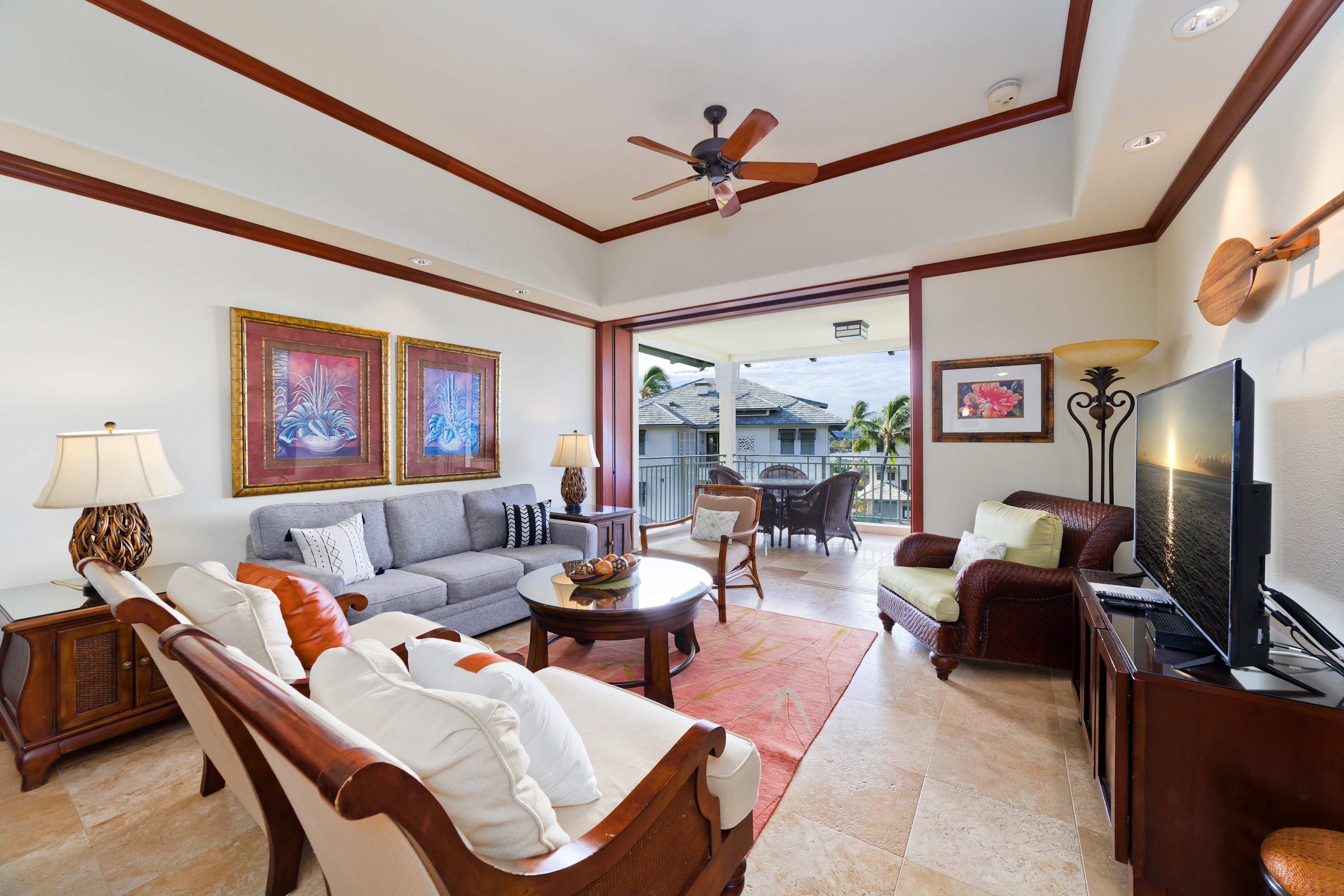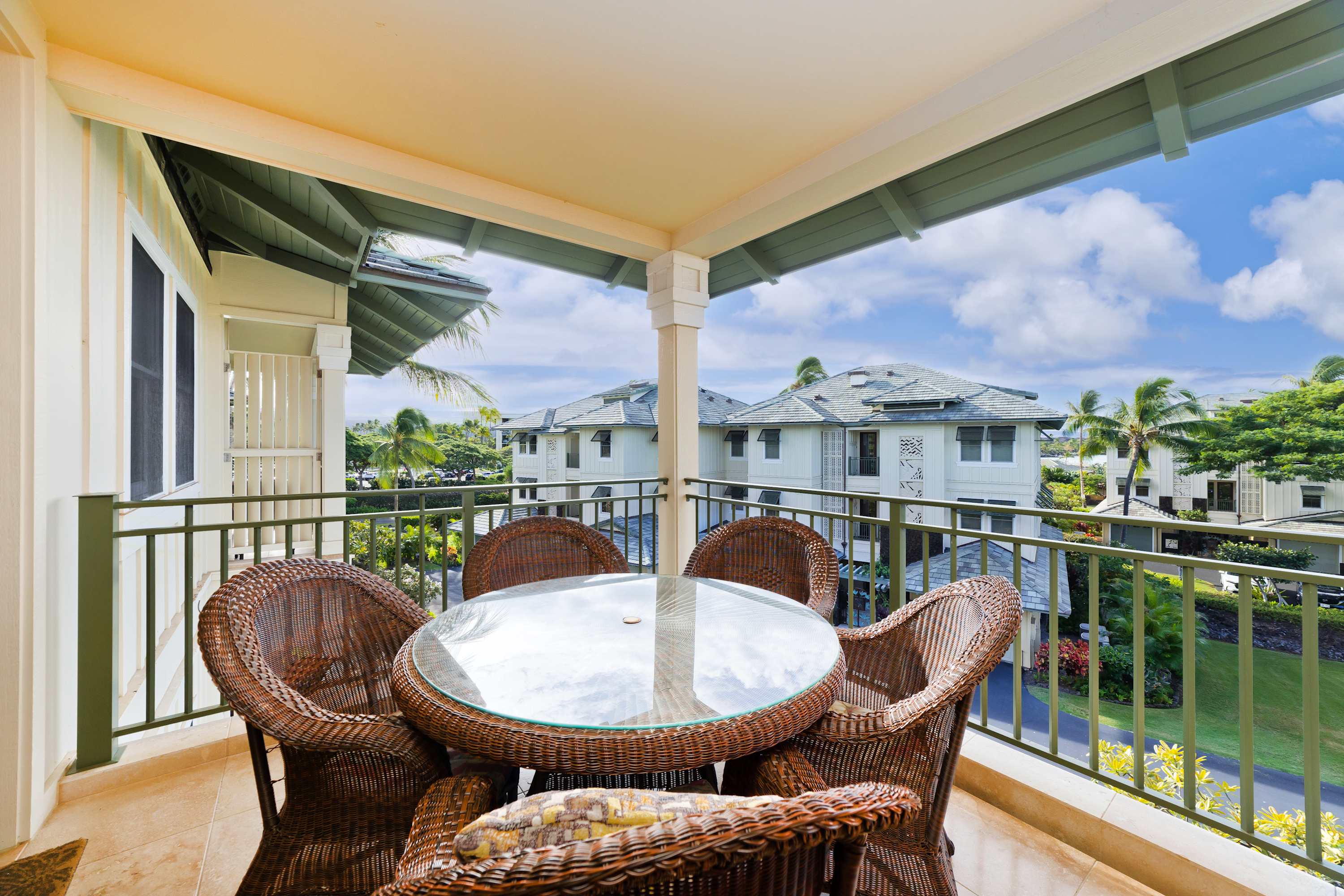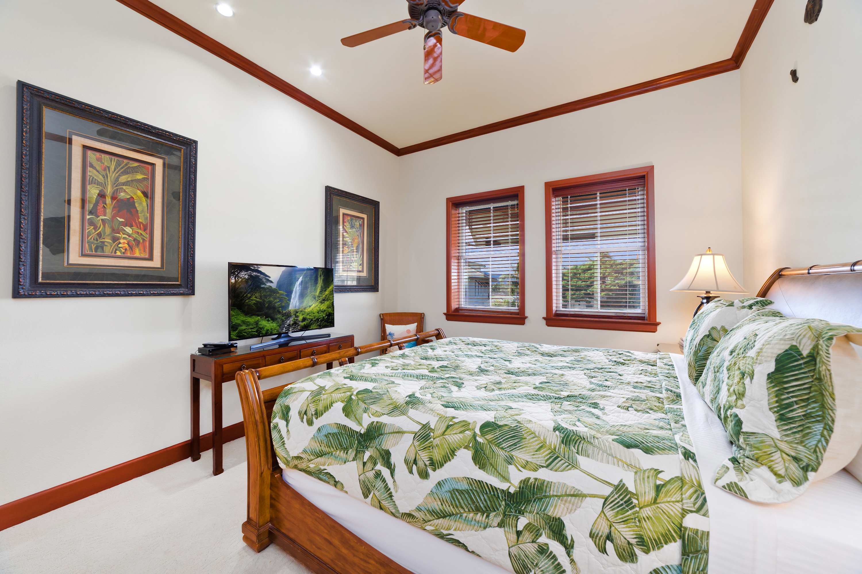 Each room features modern and island decor creating a Hawaiian atmosphere. The gourmet kitchen has everything a chef could need. Stainless steel appliances and ample granite countertops are prepared for home cooking. 2 guests can enjoy sitting at the built-in breakfast bar. Call everyone to the dining table with seating for 6 to enjoy a meal together.