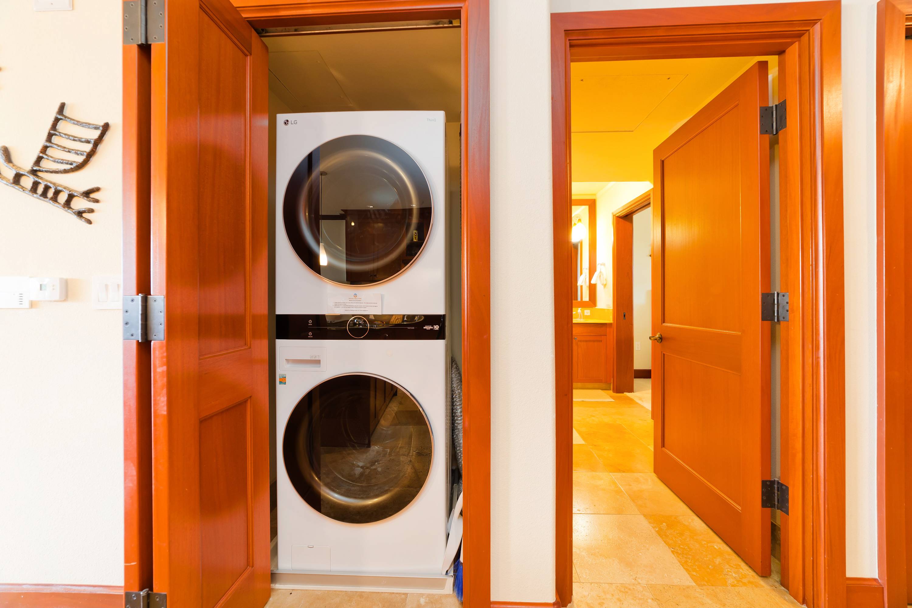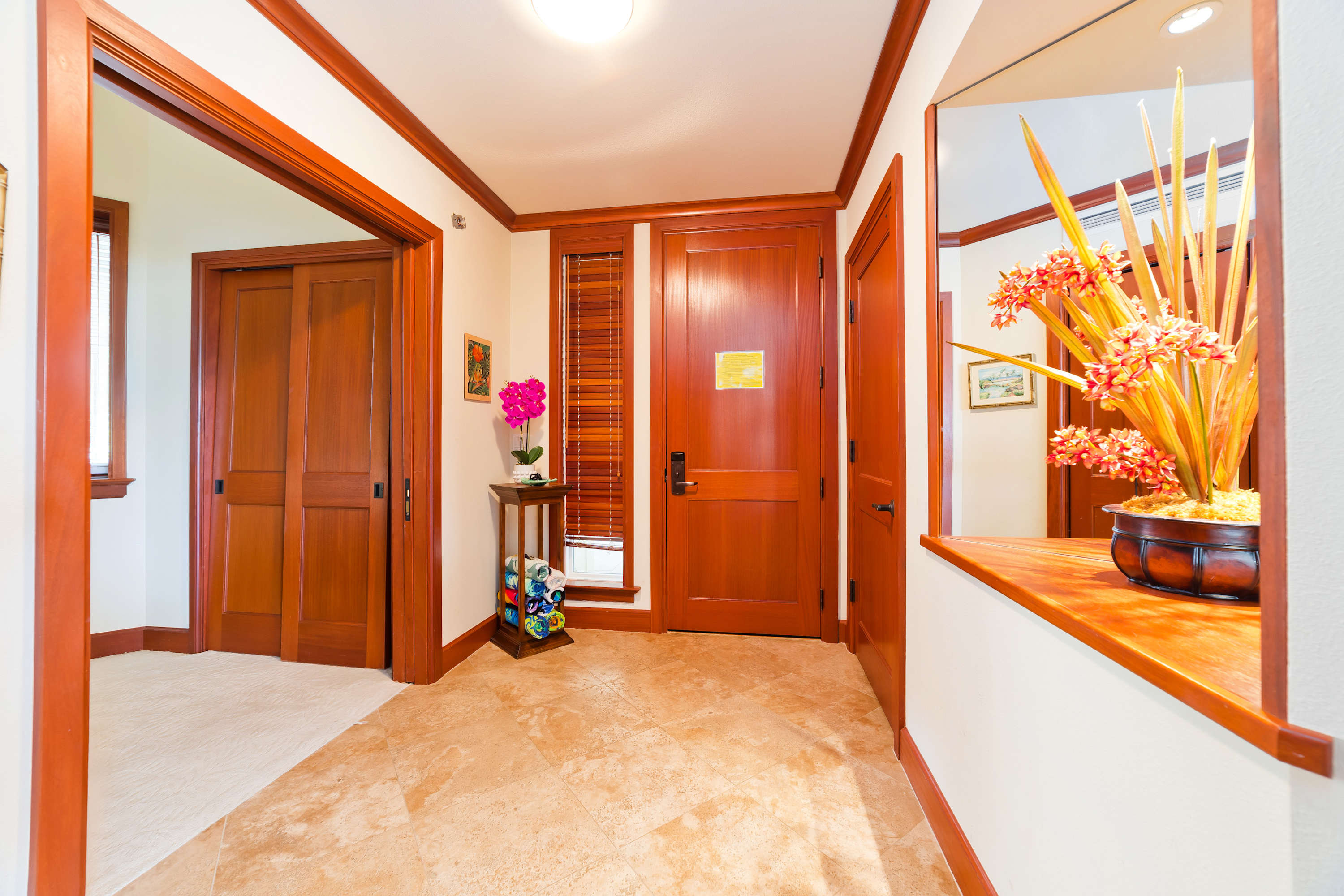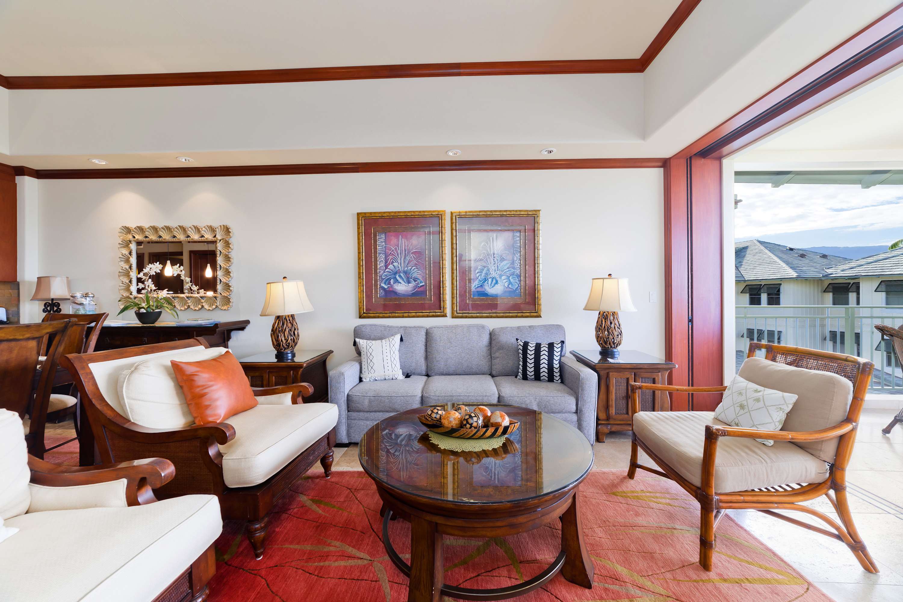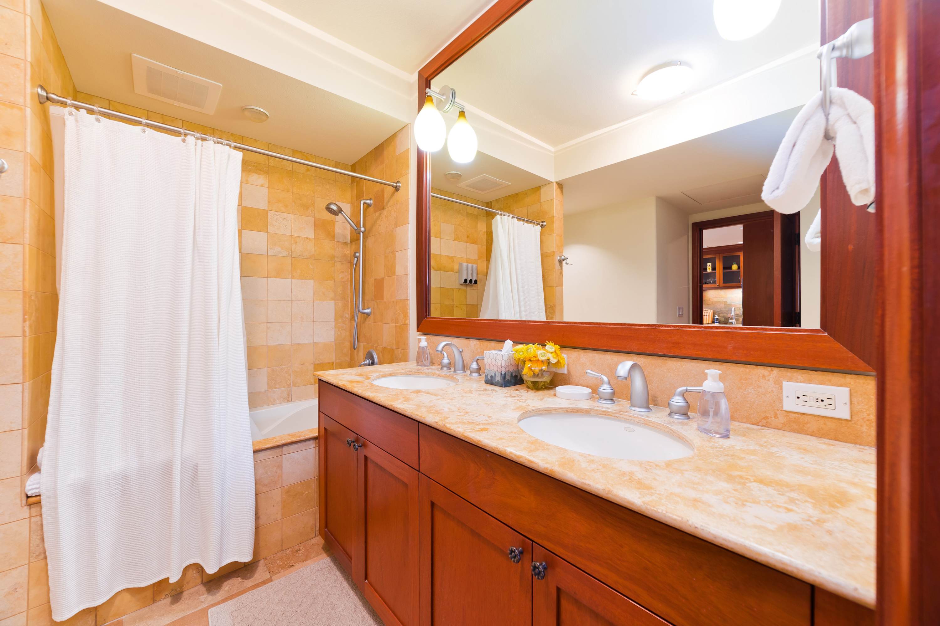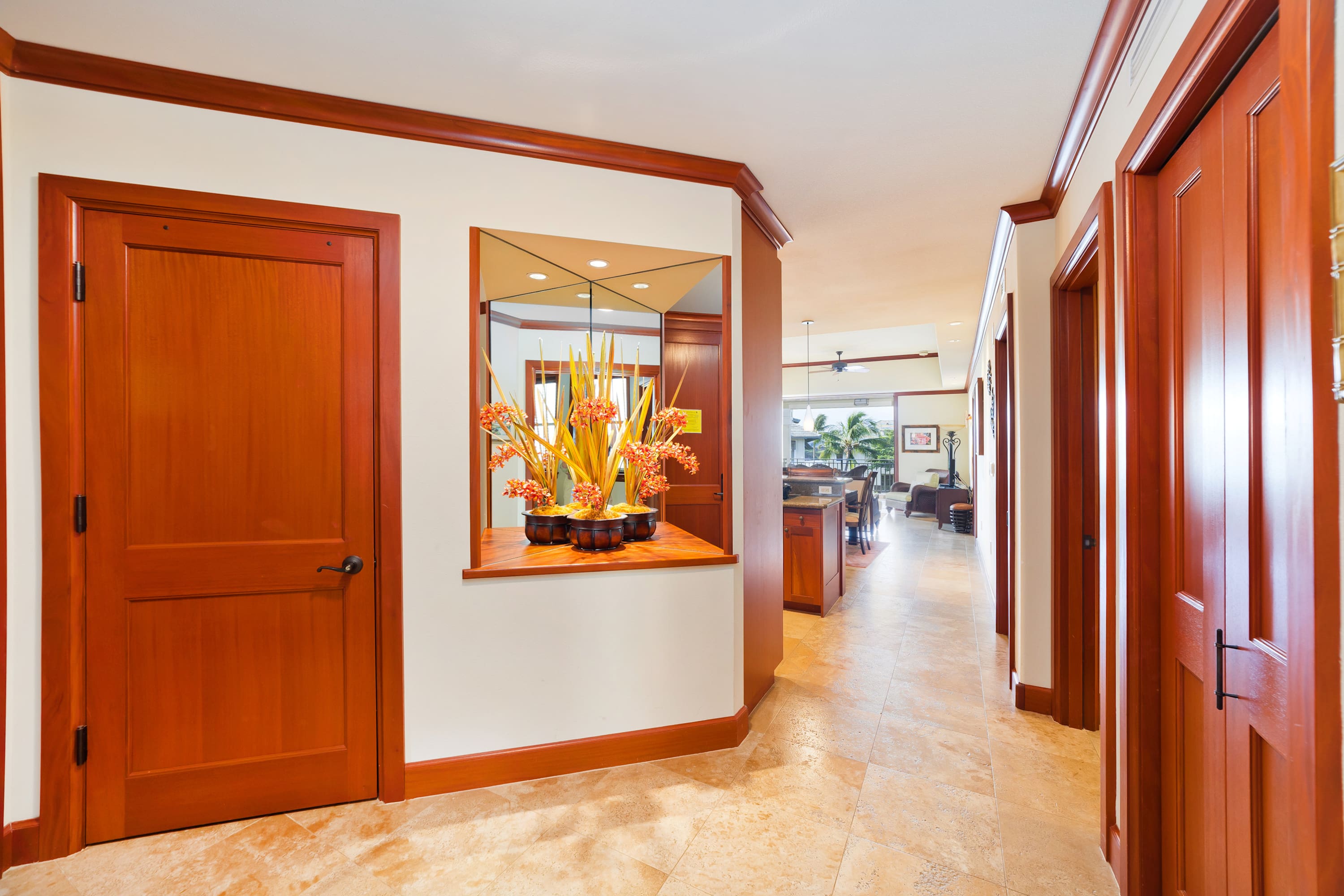 Each room features modern and island decor creating a Hawaiian atmosphere. The gourmet kitchen has everything a chef could need. Stainless steel appliances and ample granite countertops are prepared for home cooking. 2 guests can enjoy sitting at the built-in breakfast bar. Call everyone to the dining table with seating for 6 to enjoy a meal together.