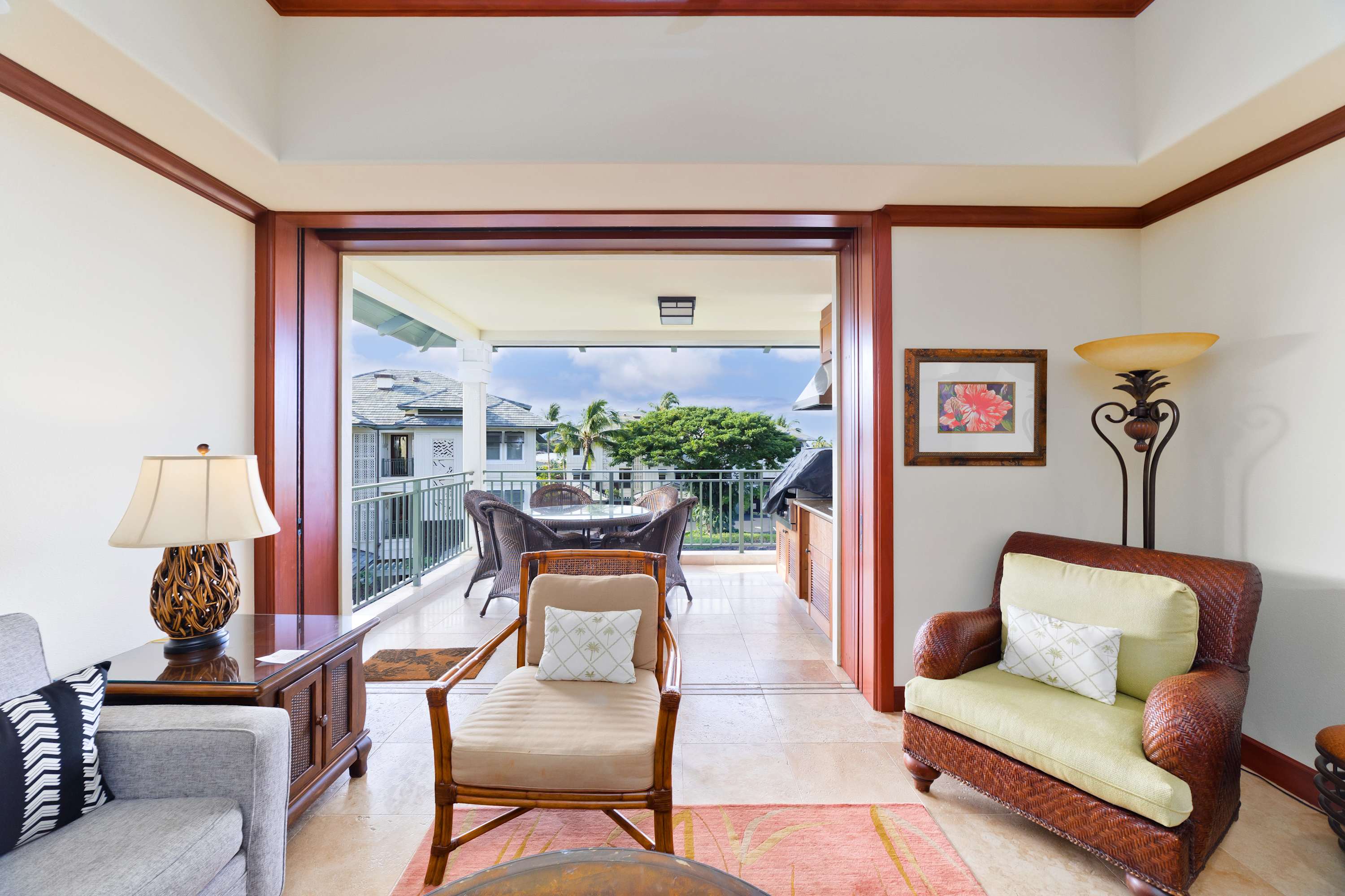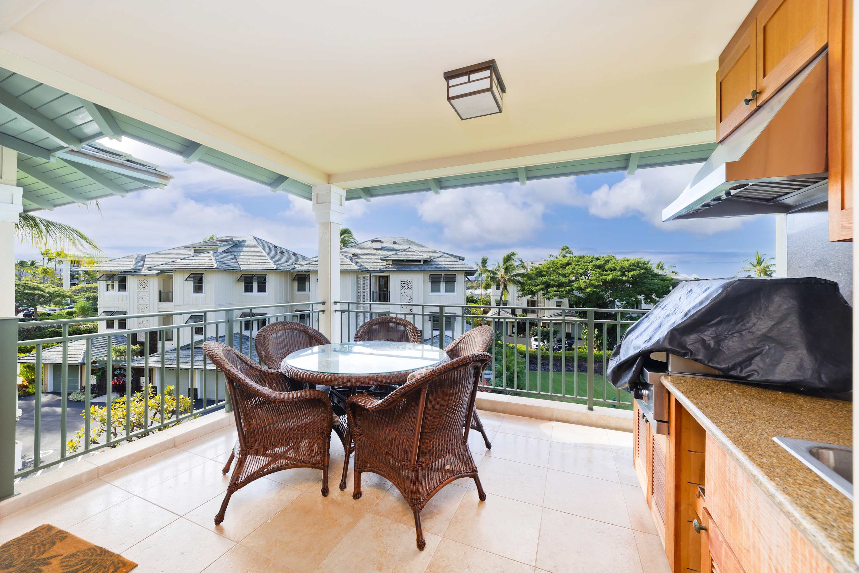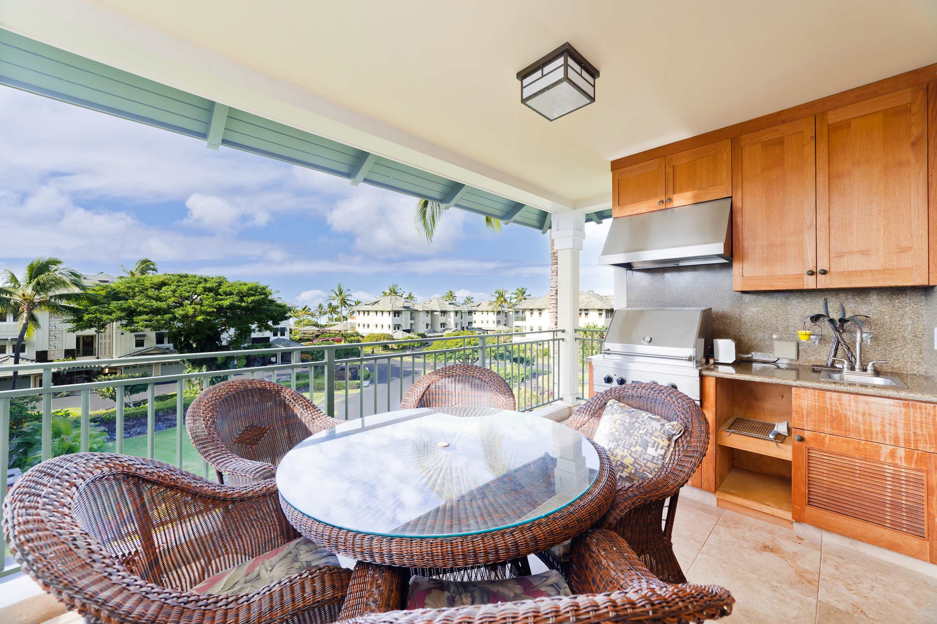 A BBQ and kitchenette are assembled on the private lanai to make this happen. A patio dining table is arranged with seating for 5 - so you can dine, drink, and unwind while enjoying the coastal breeze.