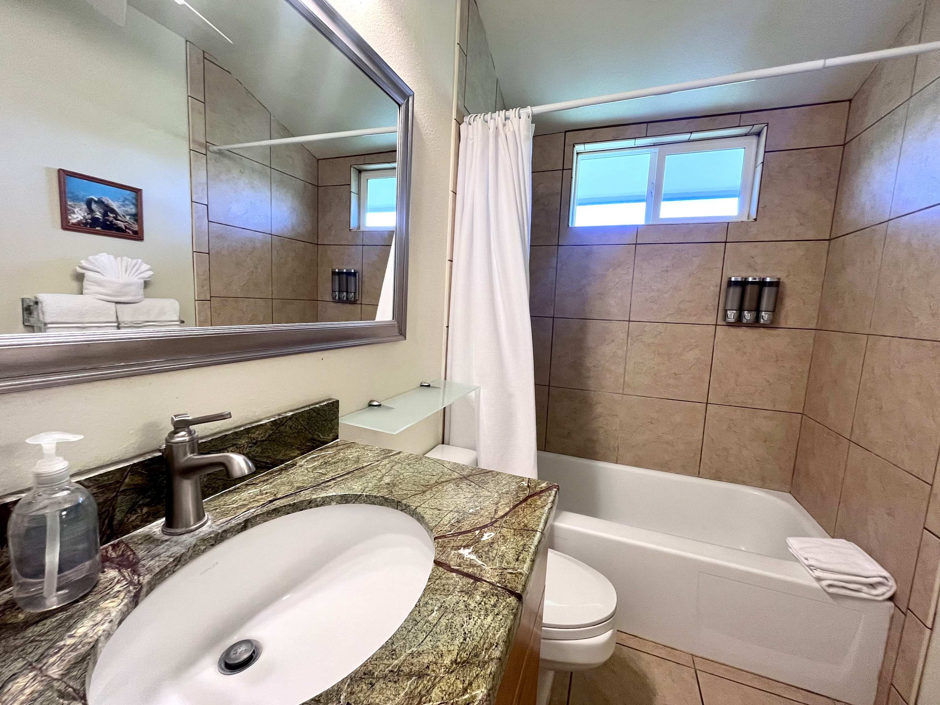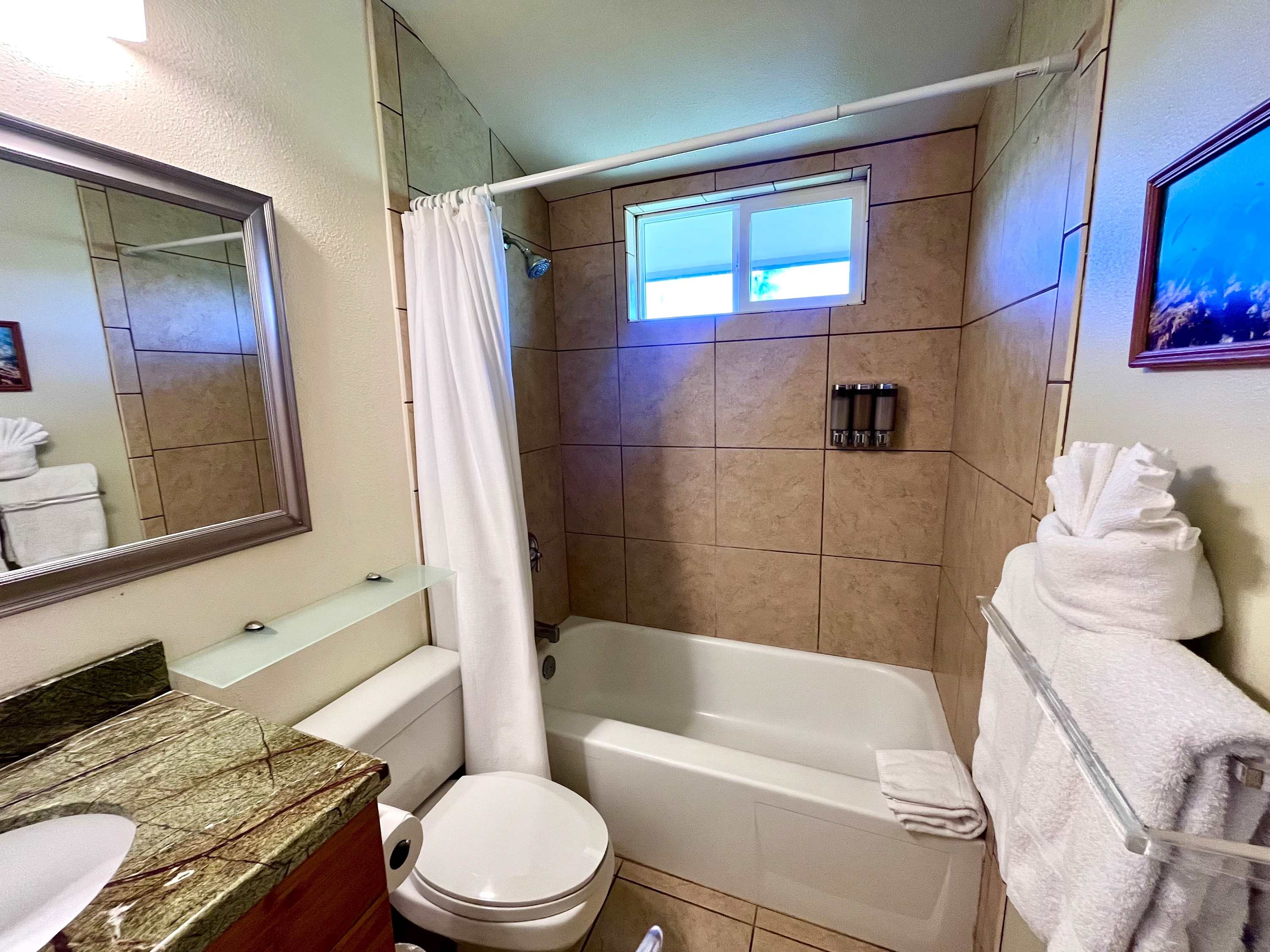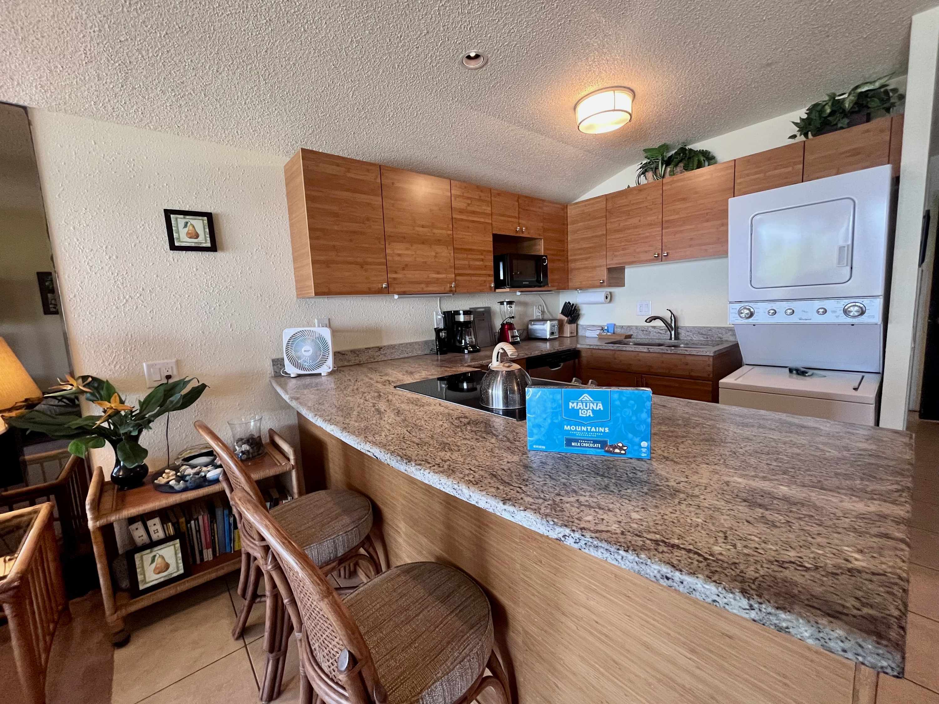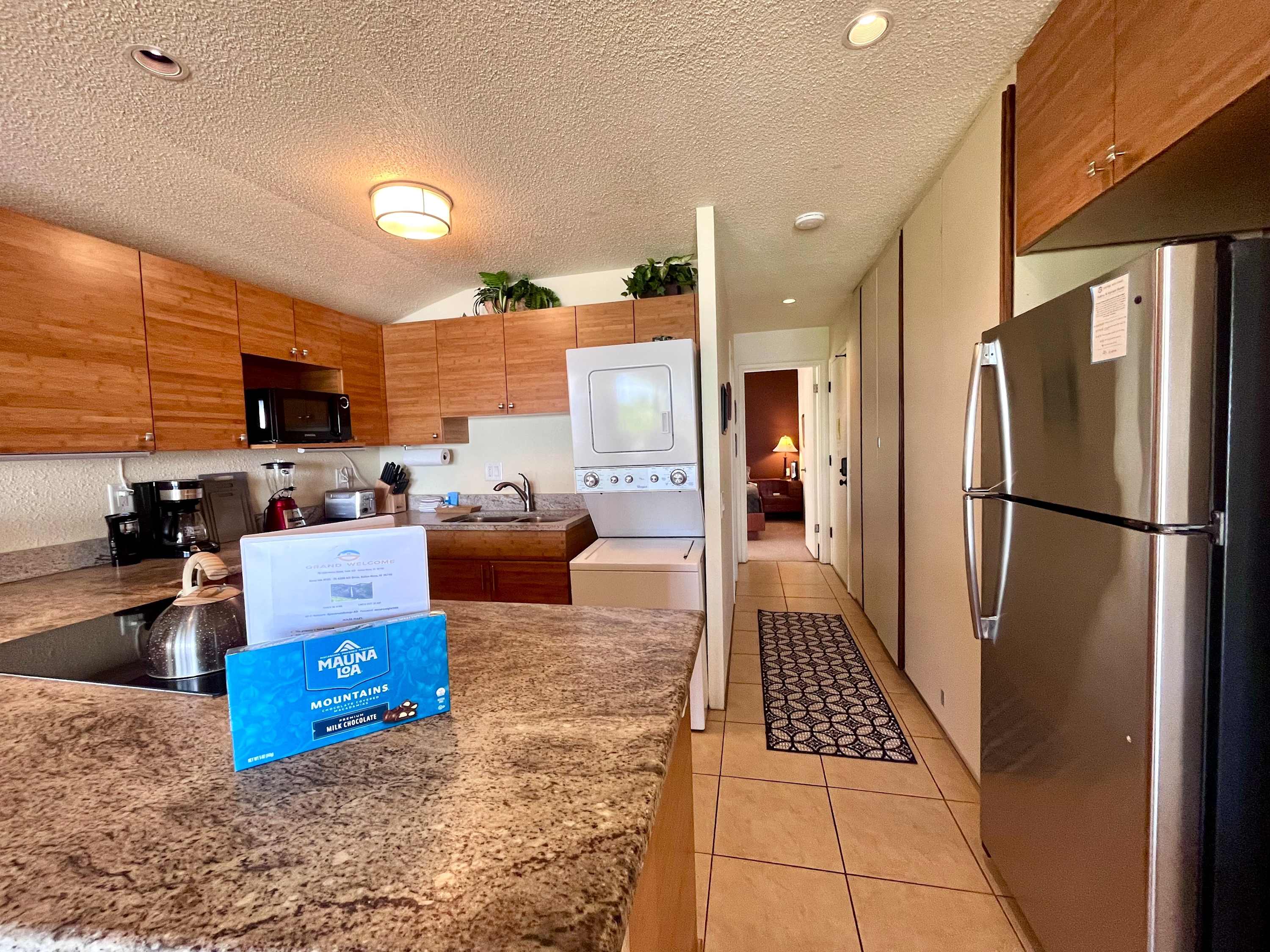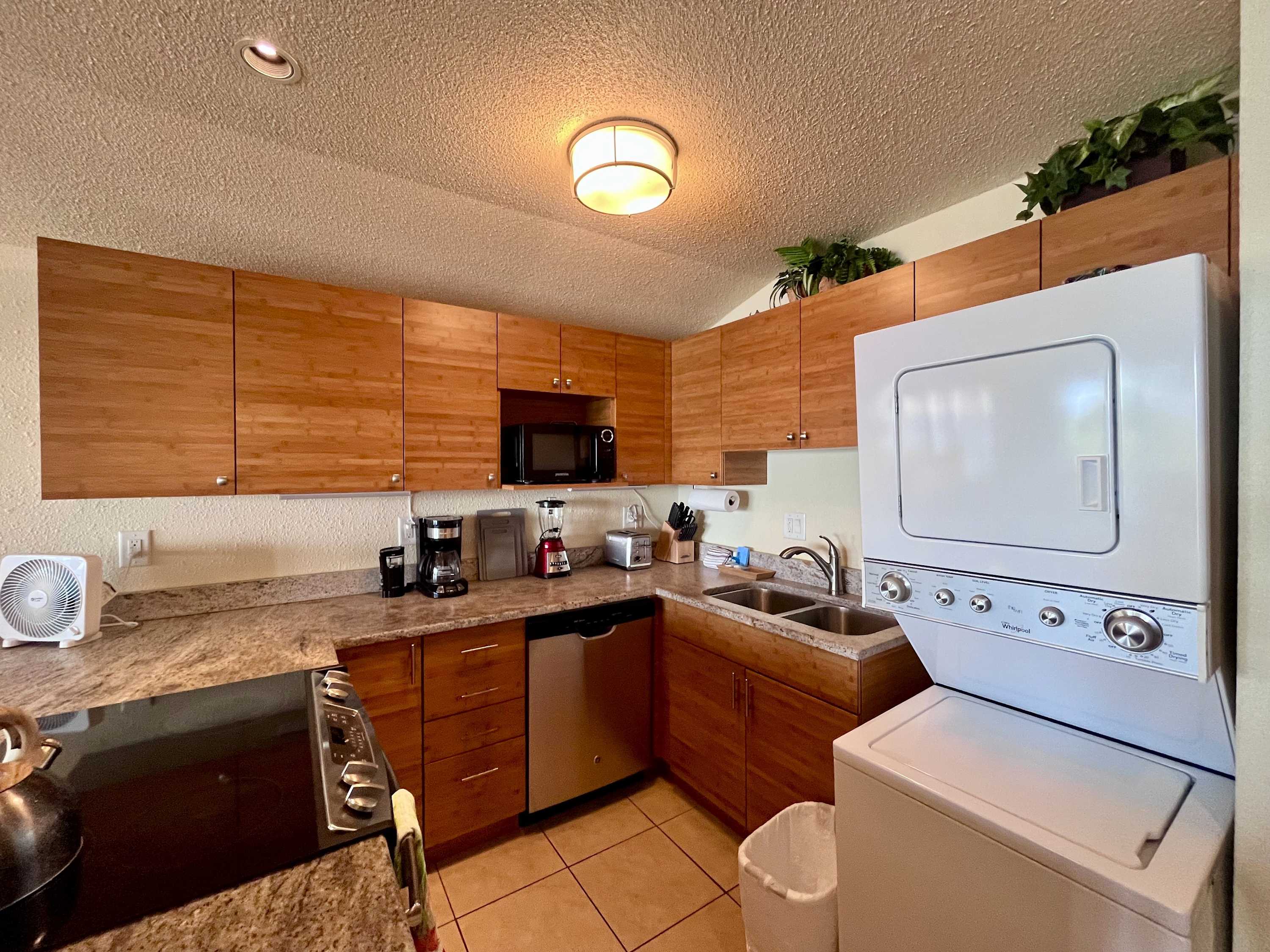 The kitchen comes equipped with a dishwasher, drip coffee maker, toaster, microwave, and more. If you don't feel like cooking, hit the town and try the famous Hawaii poke or BBQ.