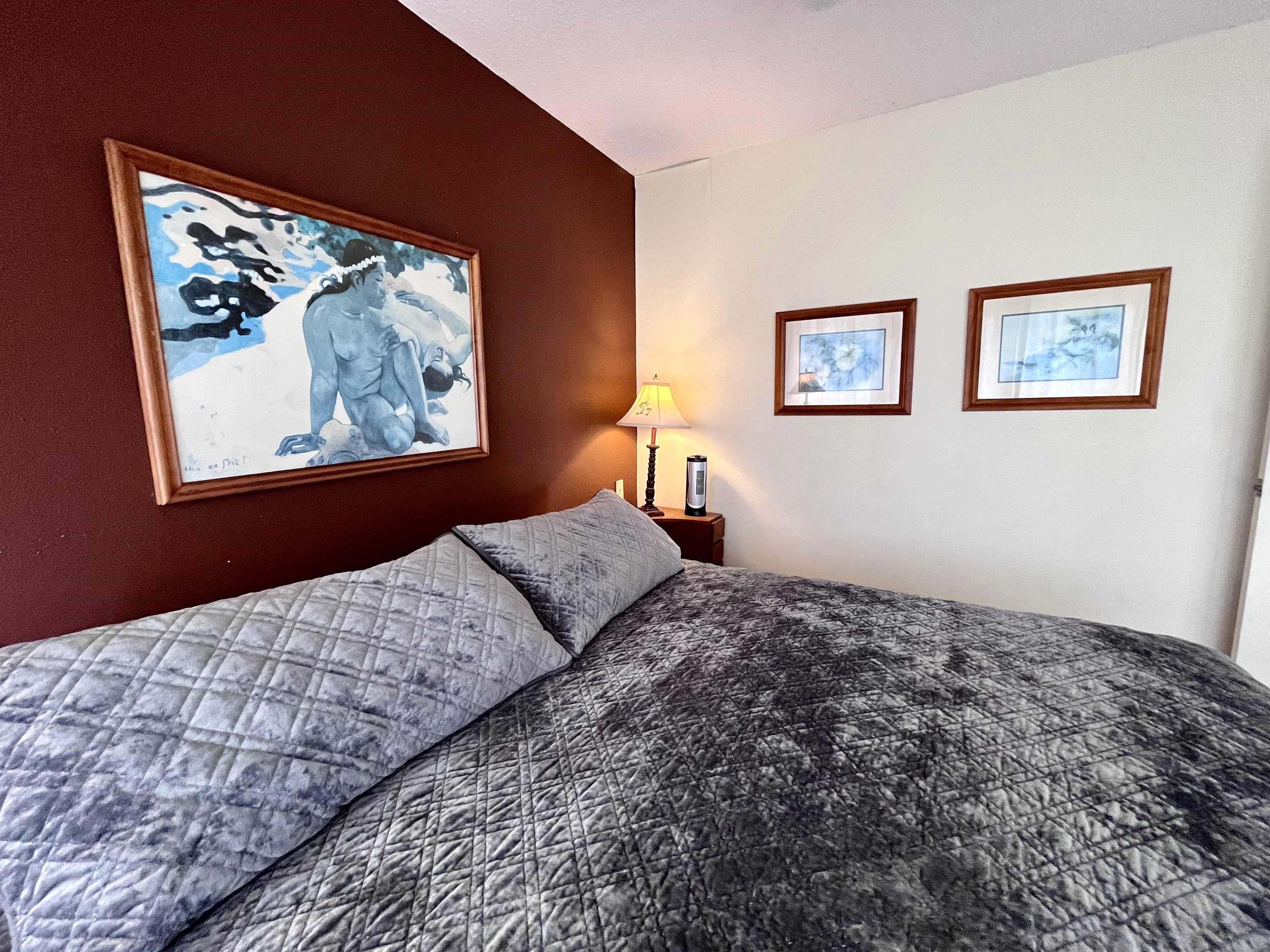 The bedroom holds a King bed, great for couples! The full bathroom in the hallway has a shower/tub combo.