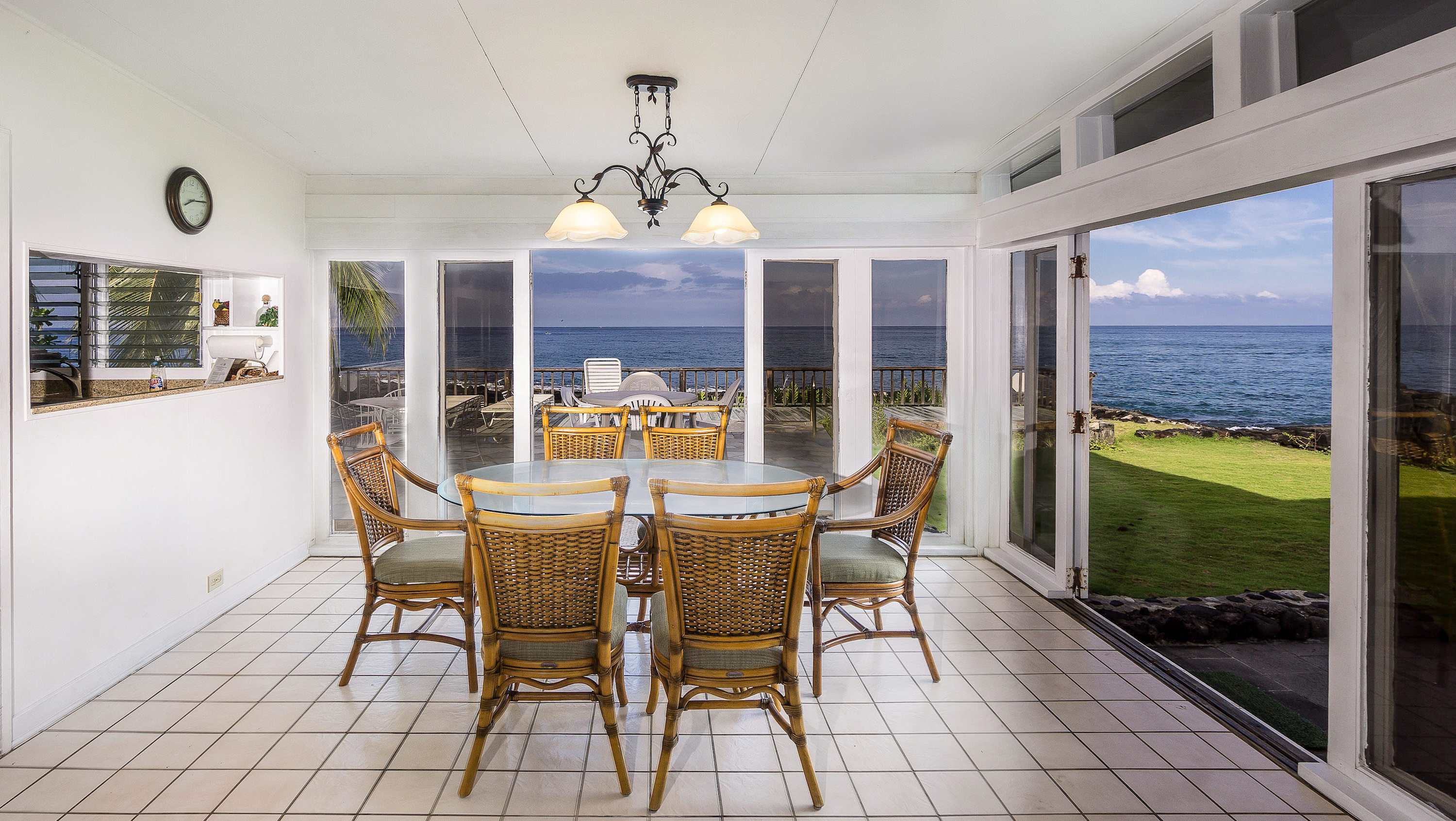 Step into old Hawaiian charm inside this newly designer decorated cottage situated on one of Hawaii's prime oceanfront locations on Ali'i drive! This charming property offers a home-style feeling with a spacious comfortable interior and gorgeous oceanfront exterior setting perfect for lounging, dining, or simply taking in the ocean activities. Please note there is no AC in the unit, and maximum occupancy is strictly enforced in accordance with local ordinances.