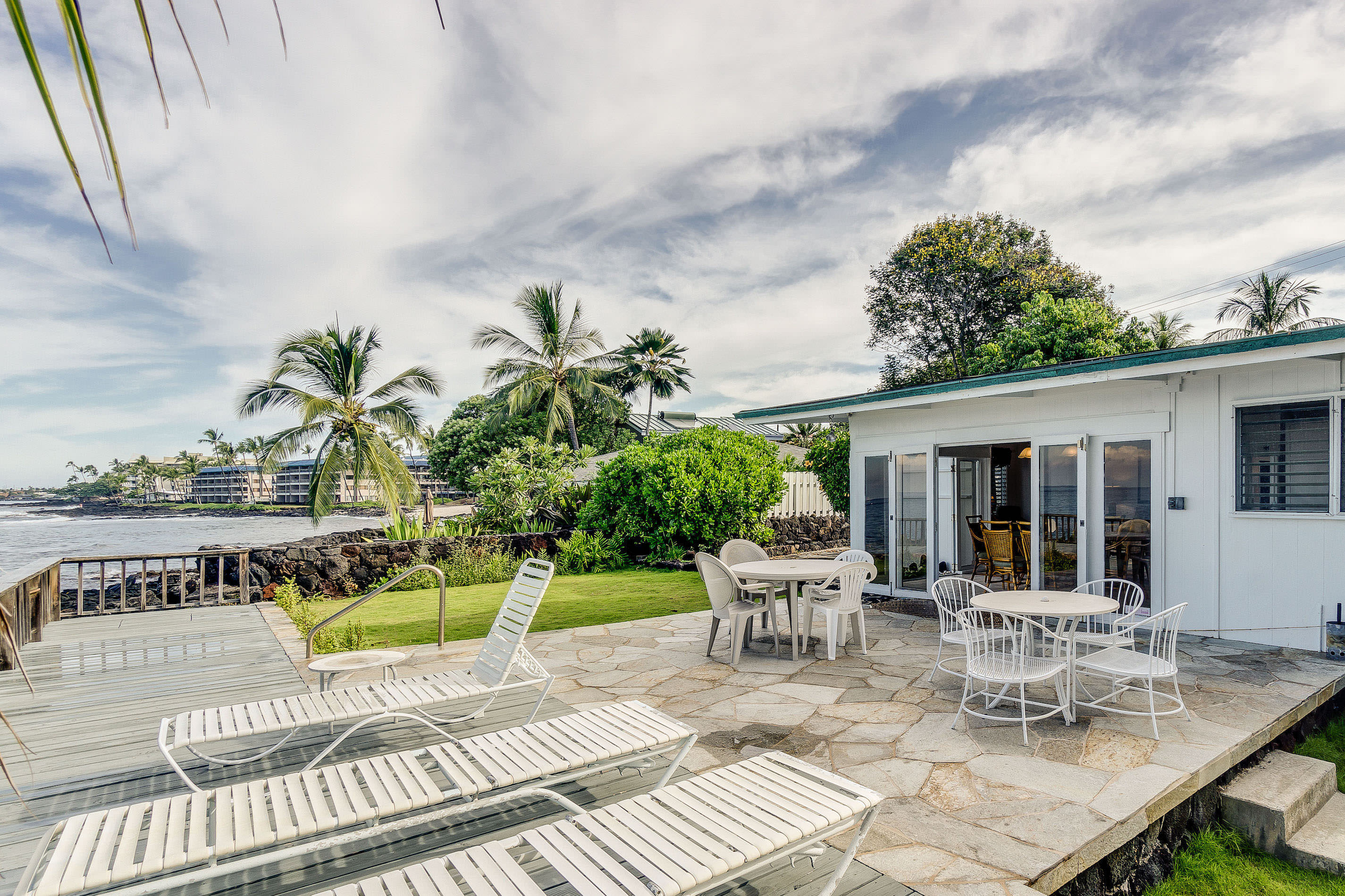 - Flagstone tiled lanai for lounging