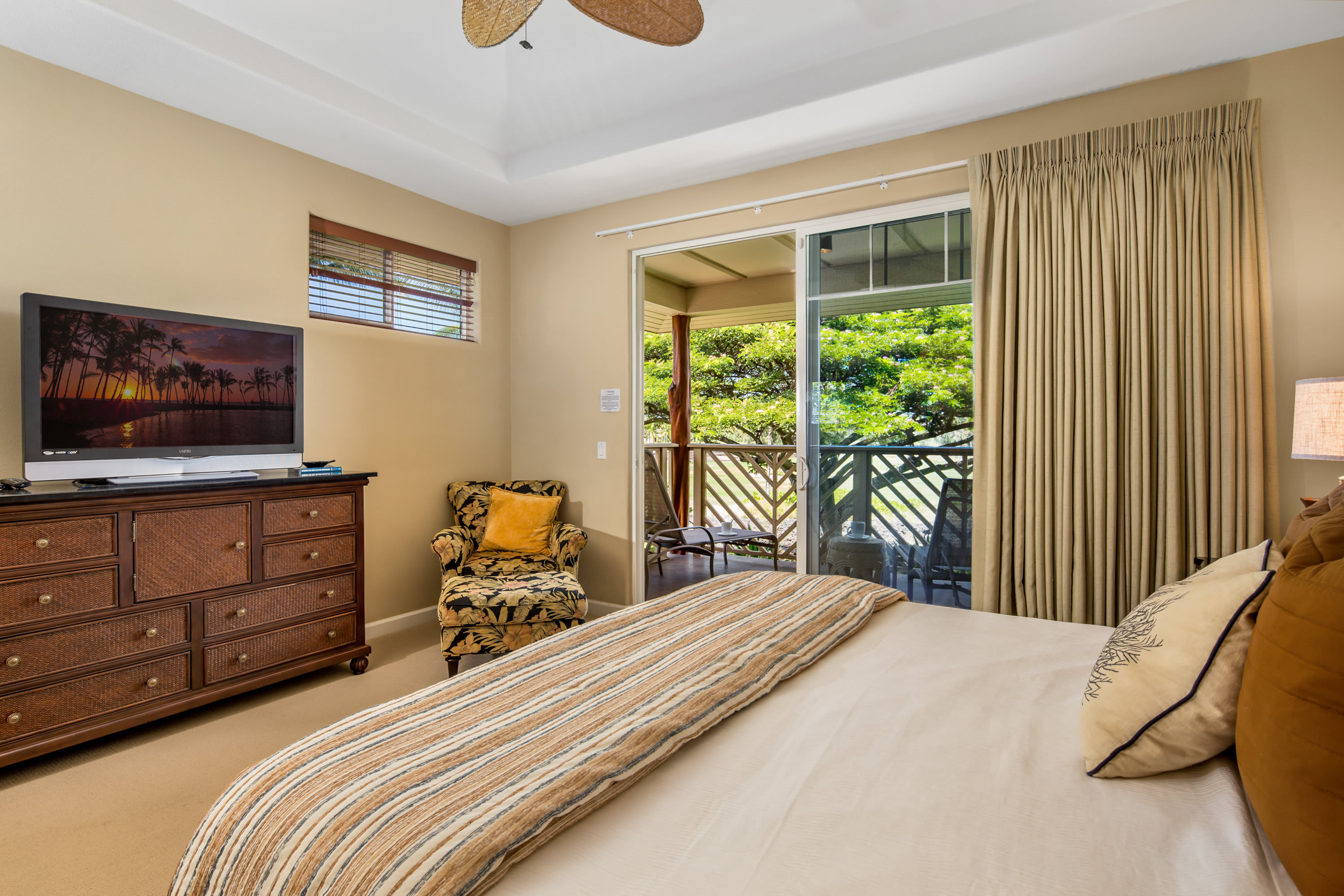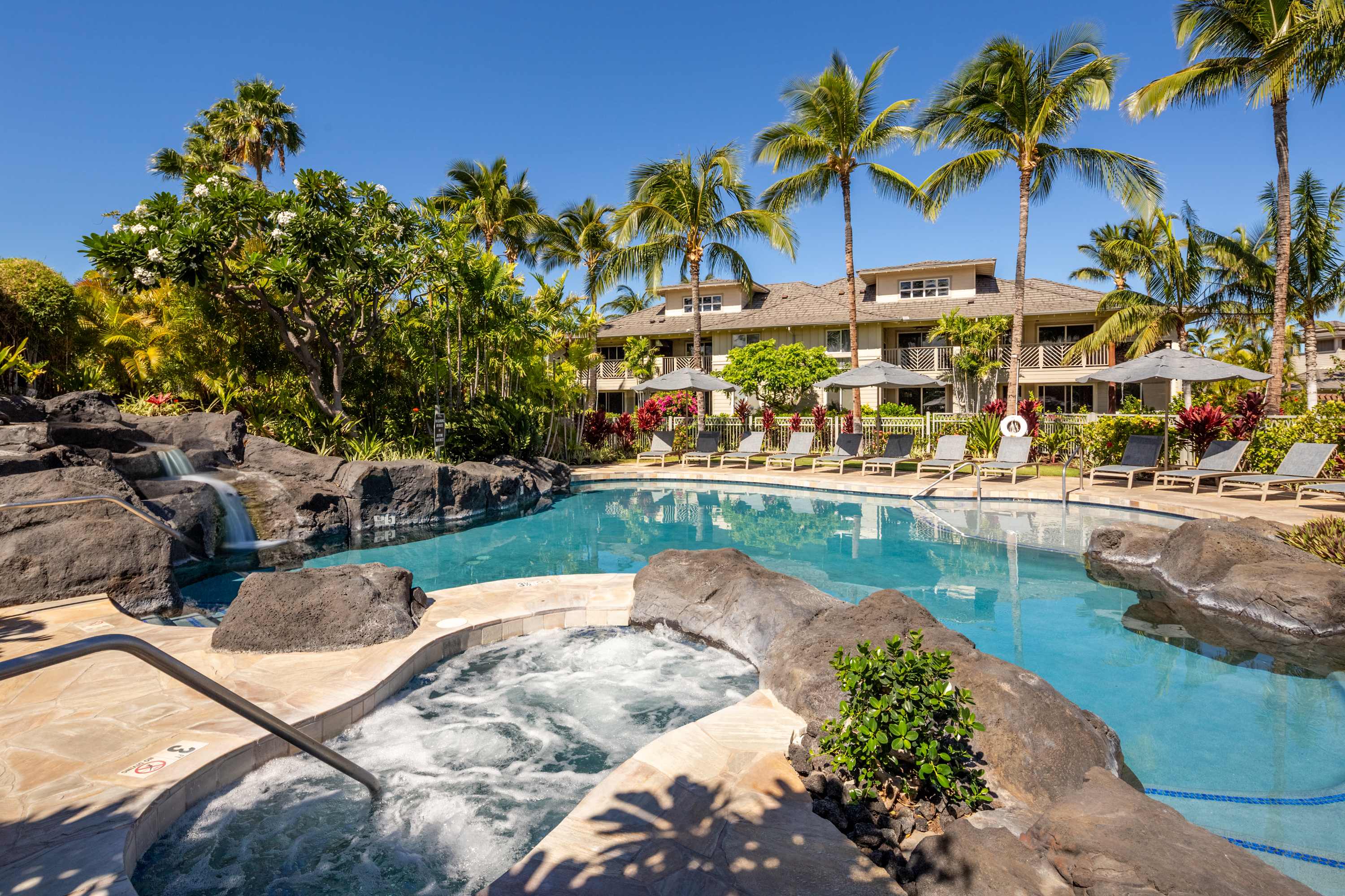 Outside of the resort, you’ll be within walking distance or a short drive to Queens’ Marketplace and the Kings’ Shops, both offering a variety of shopping, café, and dining options along with grocery and cinema. Experience swimming, snorkeling, and full days relaxing on the sands of ‘Anaeho’omalu Bay, taking a break for lunch with a stroll down to the Lava Lava Beach Club. For the golfers among you, not only does this community overlook the Waikoloa Village Golf Course, but the championship golf courses at Mauna Kea, Mauna Lani, Hapuna Prince, and the Waikoloa Beach and Waikoloa Kings Courses are all within easy reach as well.