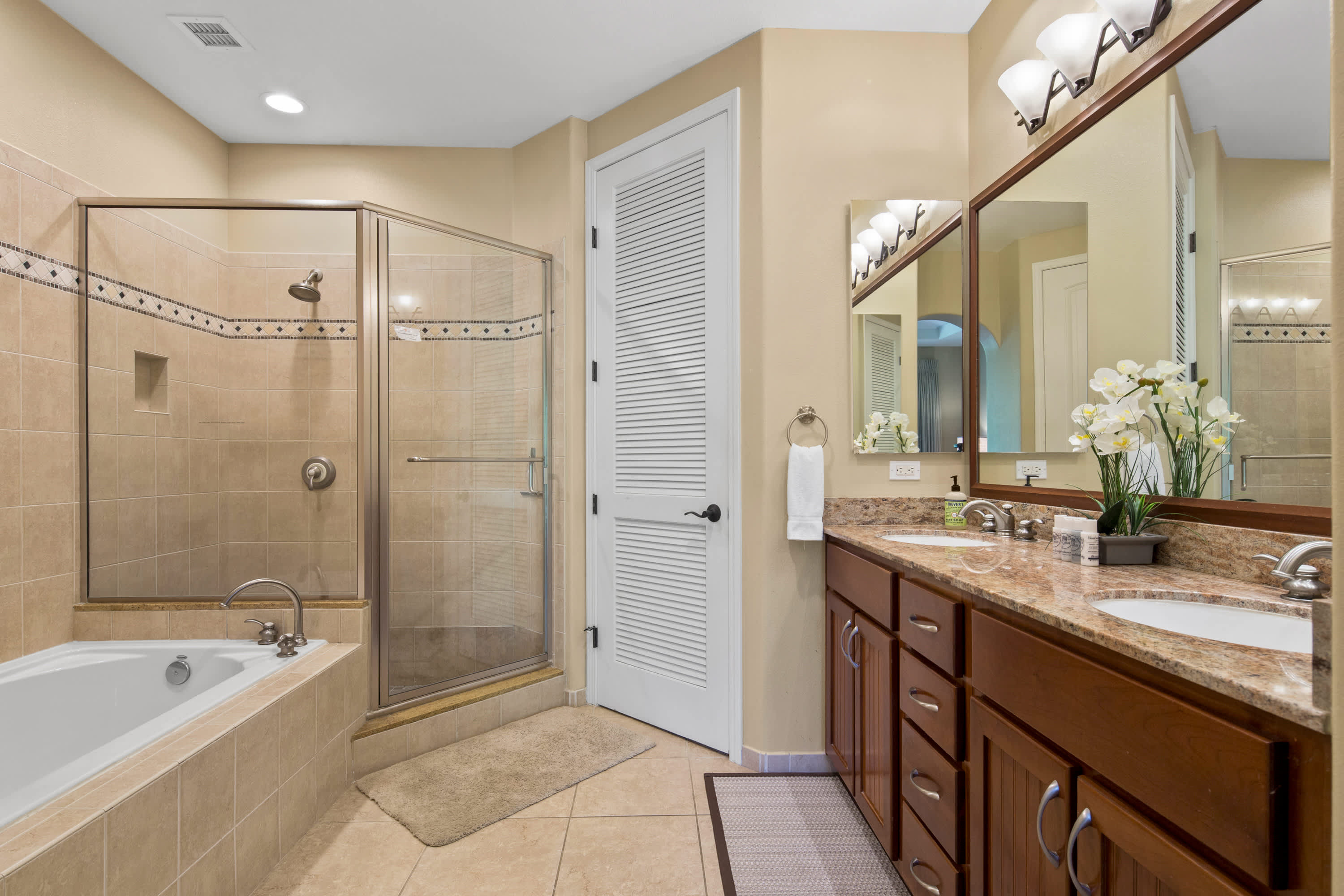 The home also includes 2 additional full guest bathrooms, each with a single vanity and shower/tub combo.