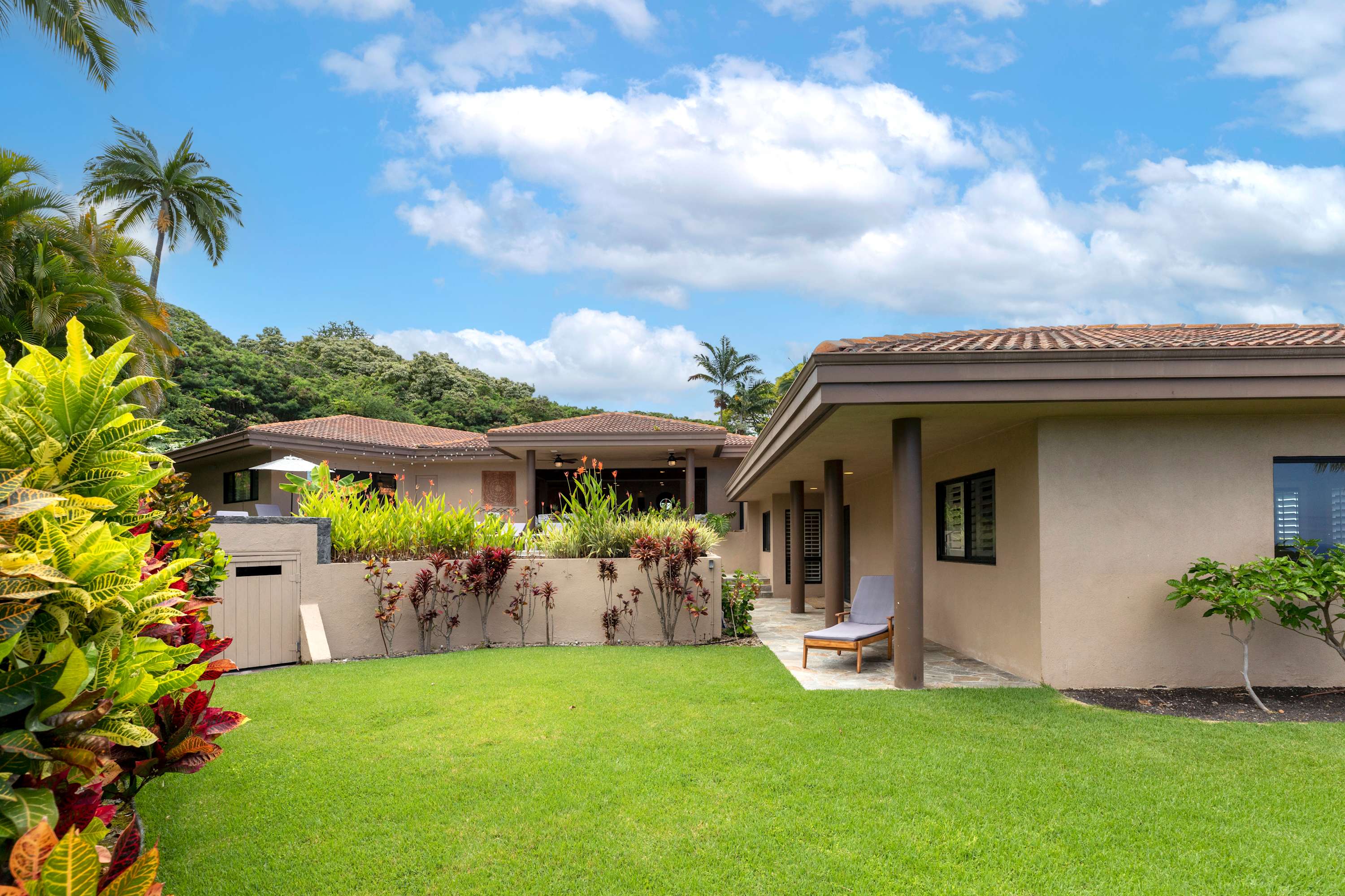Enjoy nightly picture-perfect sunsets over the Pacific Ocean from the home’s spacious and secluded lanai, surrounded by a luscious garden. With 5 bedrooms and 5 ½ bathrooms, this family-friendly home boasts ample space to comfortably host your large group. From its ideal location, you can access all kinds of Hawaiian adventures, or simply relax and recharge at your own poolside retreat with a plethora of options for seating and lounging.