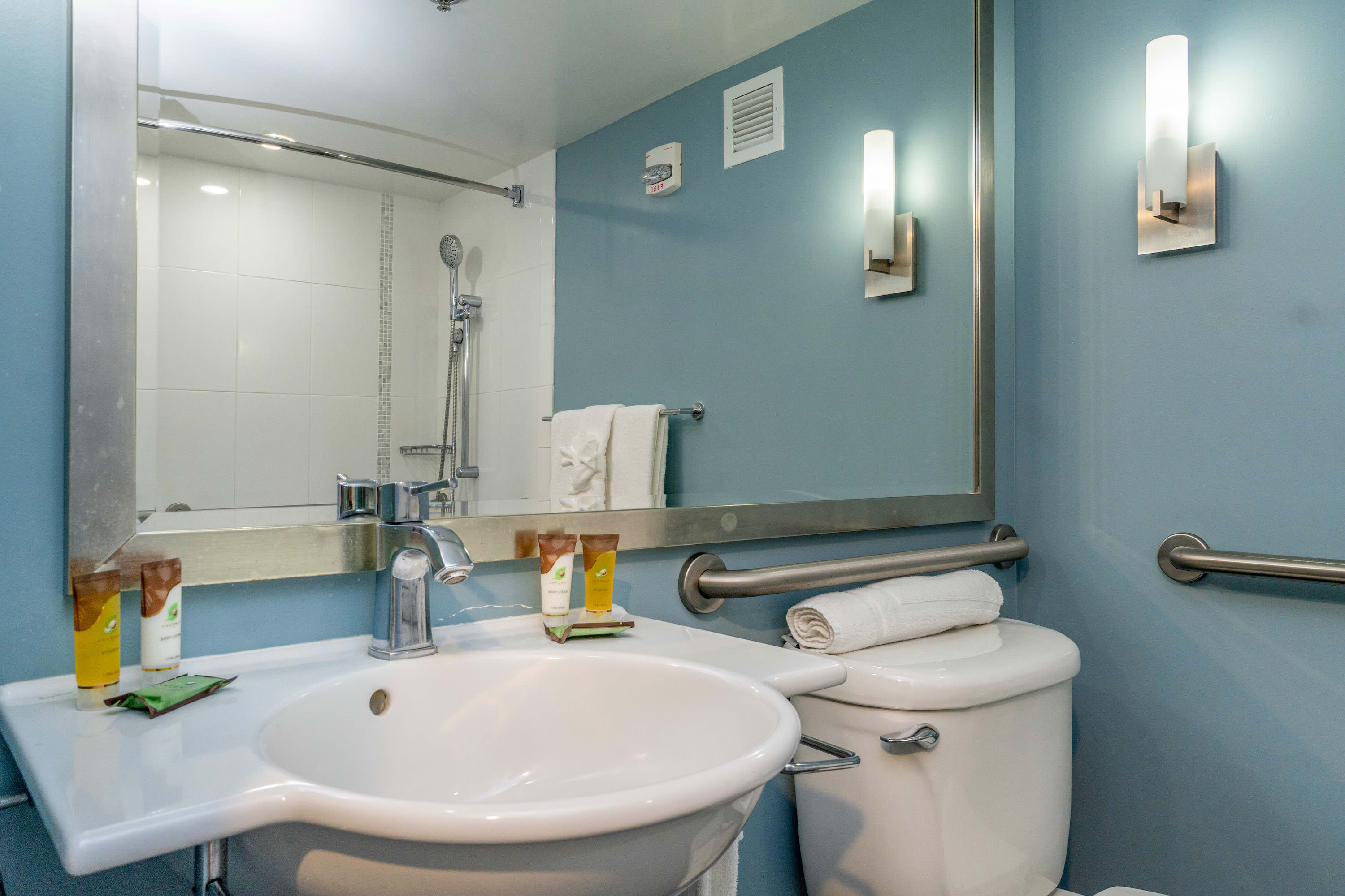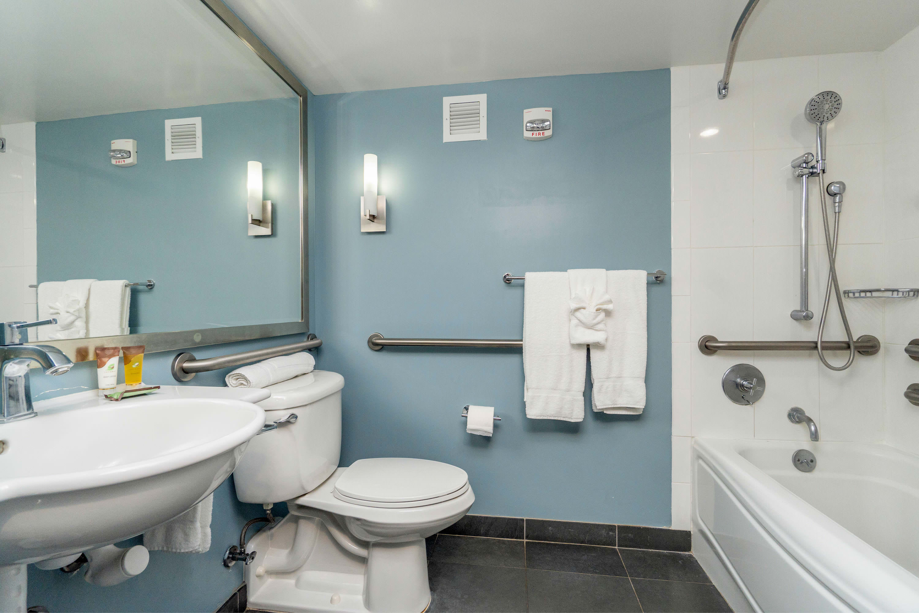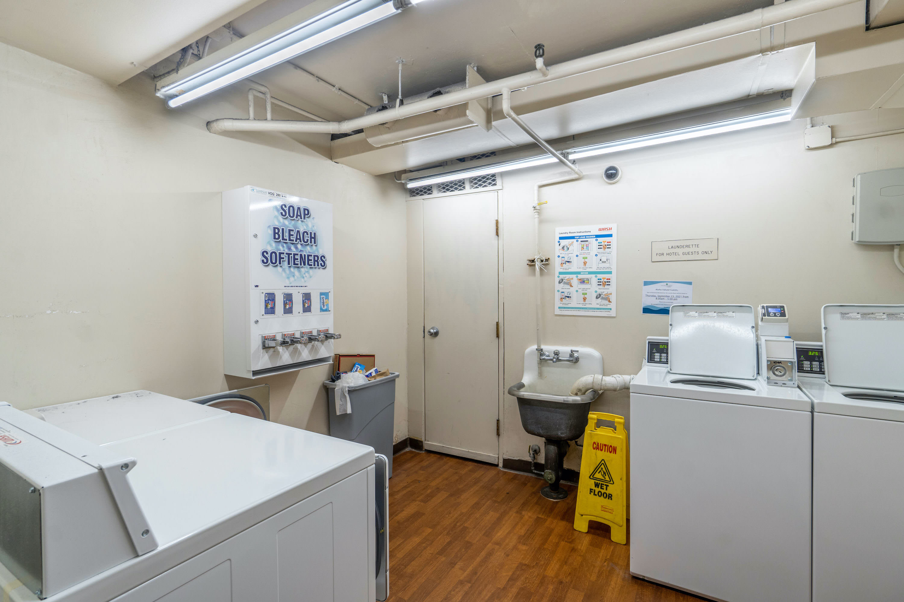There are several shared amenities at the hotel including an outdoor pool with sundeck, fitness room, sauna, steam room, and laundry room. There are a few dining options in the hotel and multiple meeting rooms and satellite conference facilities. Room service, housekeeping, and condiment replenishment are not included for this property.