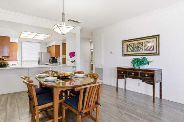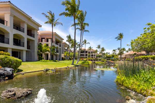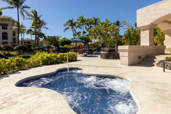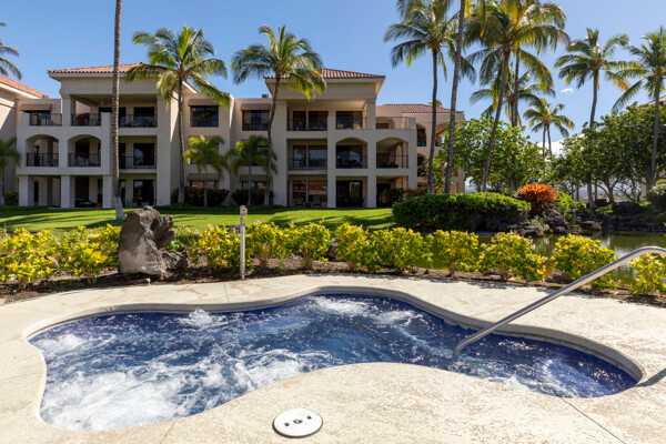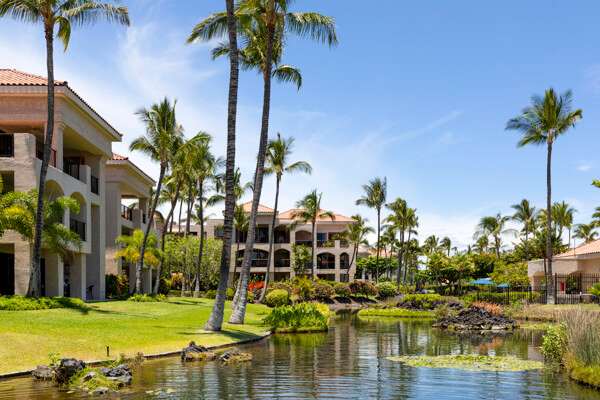 The tropical resort features luscious greenery, koi ponds, a shared swimming pool, a fitness room, and BBQ stations. Enjoy the white sandy beach, Anaehoomalu Bay (A-Bay), just a mile away. Dine and shop at the King's and new Queen's shop, less than a mile away. Take up swimming with dolphins, snorkeling, windsurfing, golfing, or going on a tour on one of the glass bottom boats is all close by for a perfect tropical vacation!