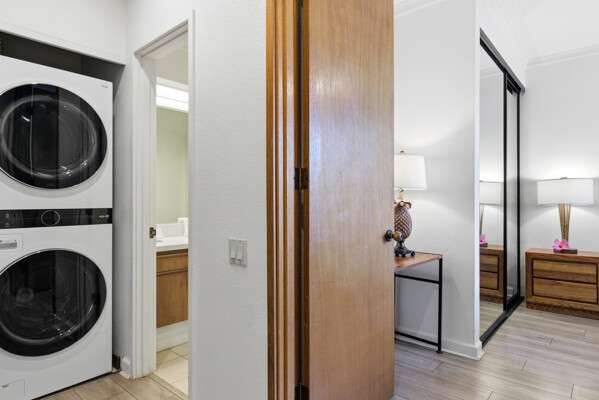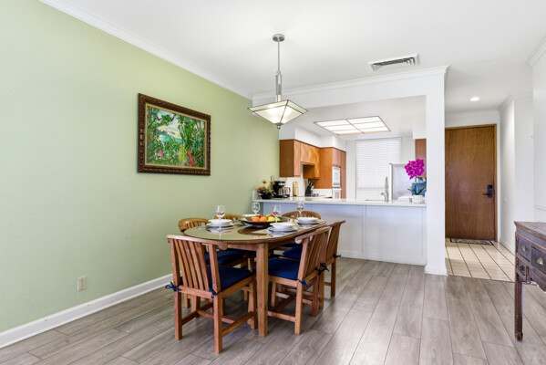 The kitchen comes equipped with a drip coffee maker, blender, toaster, and more to make you feel right at home. Cook up delicious homemade meals and gather around the dining table for 6.