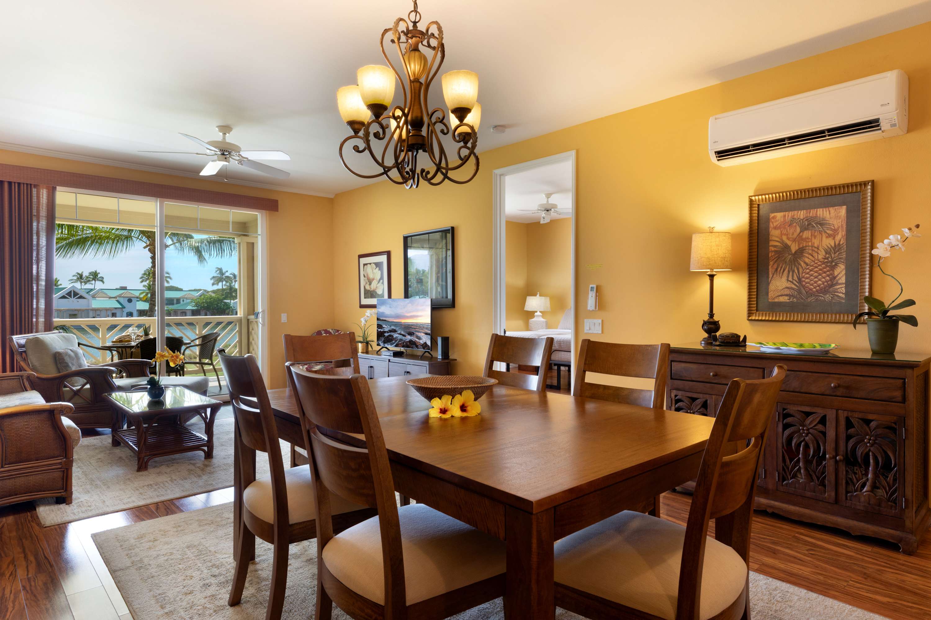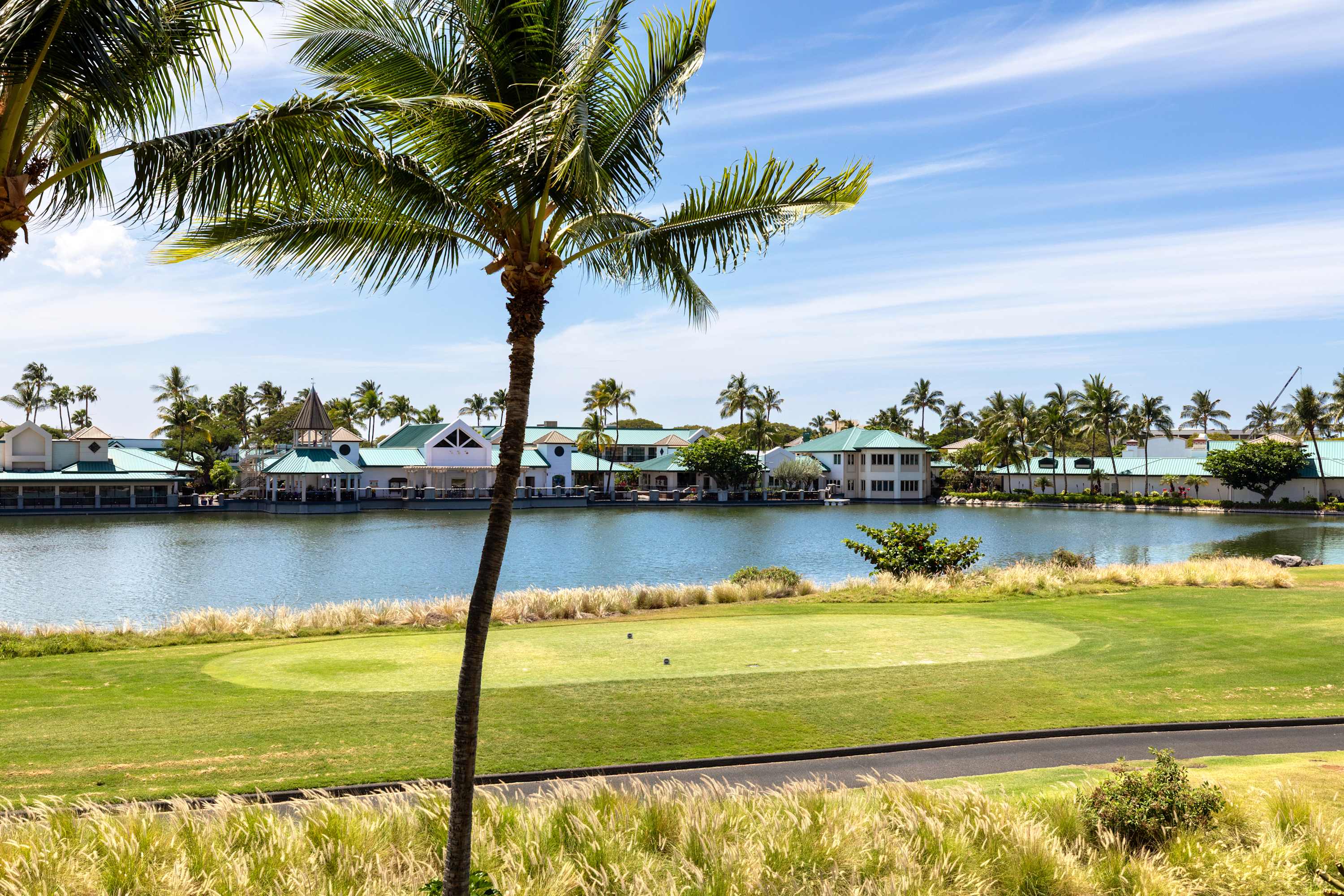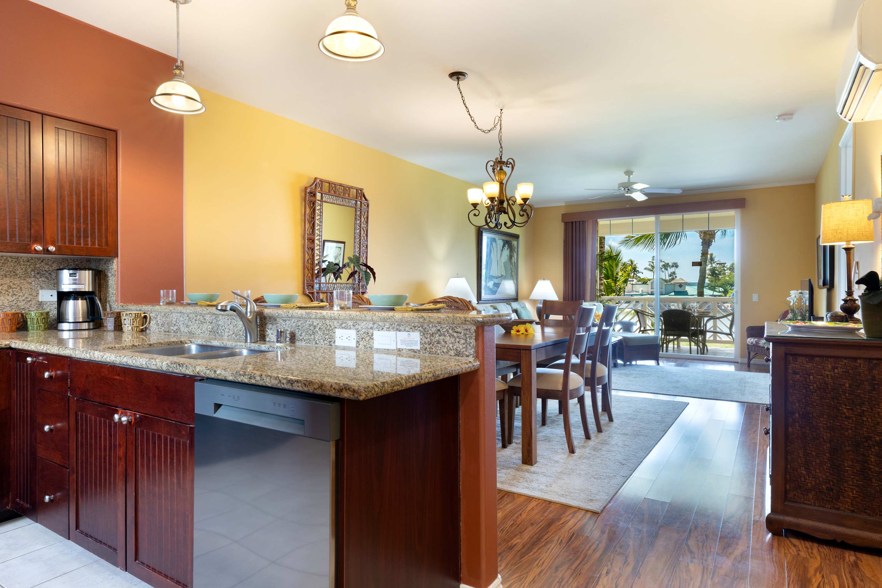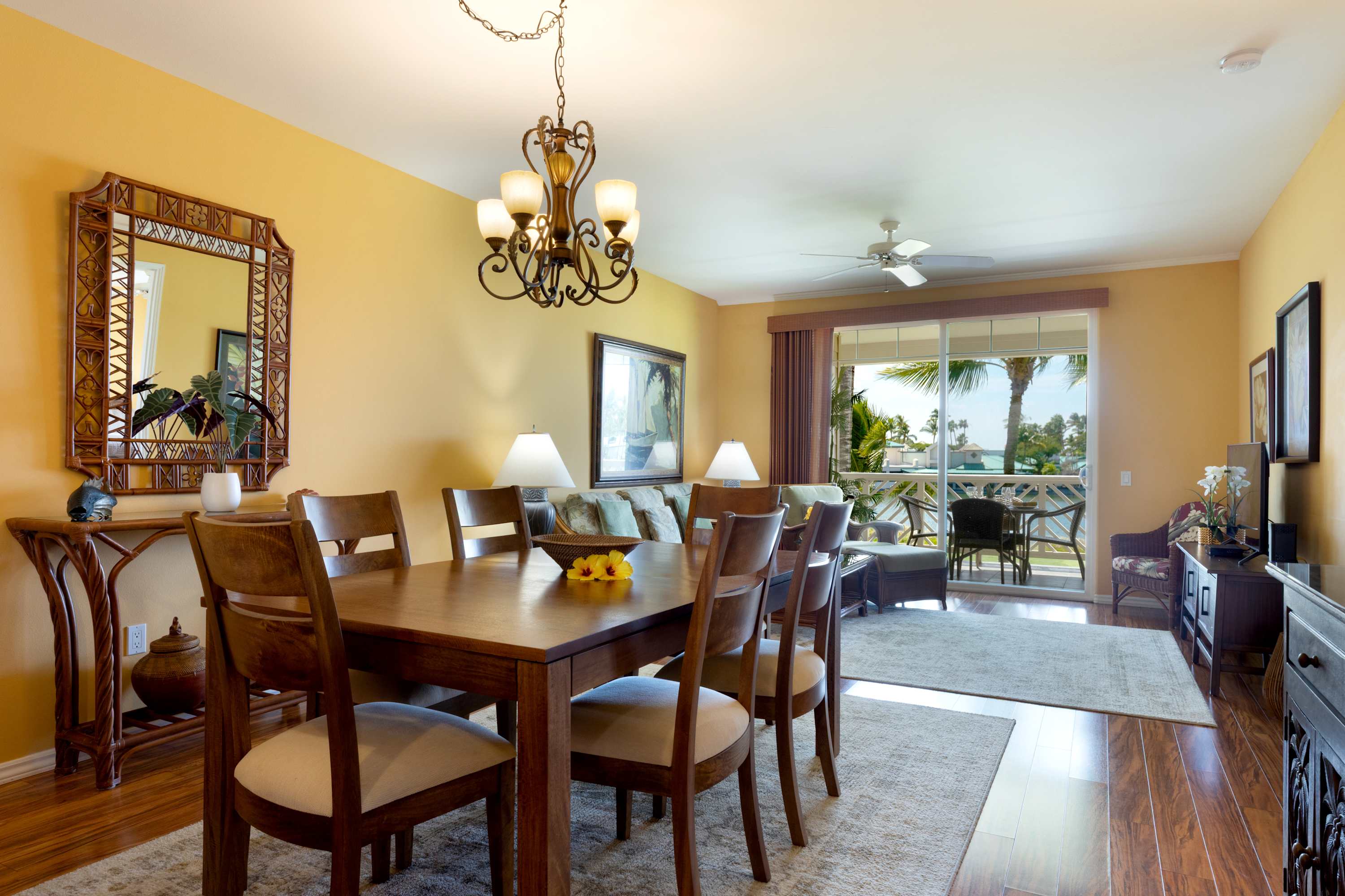 Step inside the luxurious villa to be greeted by Hawaiian decor and island furnishings! The living room is well situated with a cable TV, DVD player, and lanai access. Enjoy your morning coffee out on the lanai overlooking the golf course and reservoir. There is air conditioning available to stay cool during the warm summer days.
