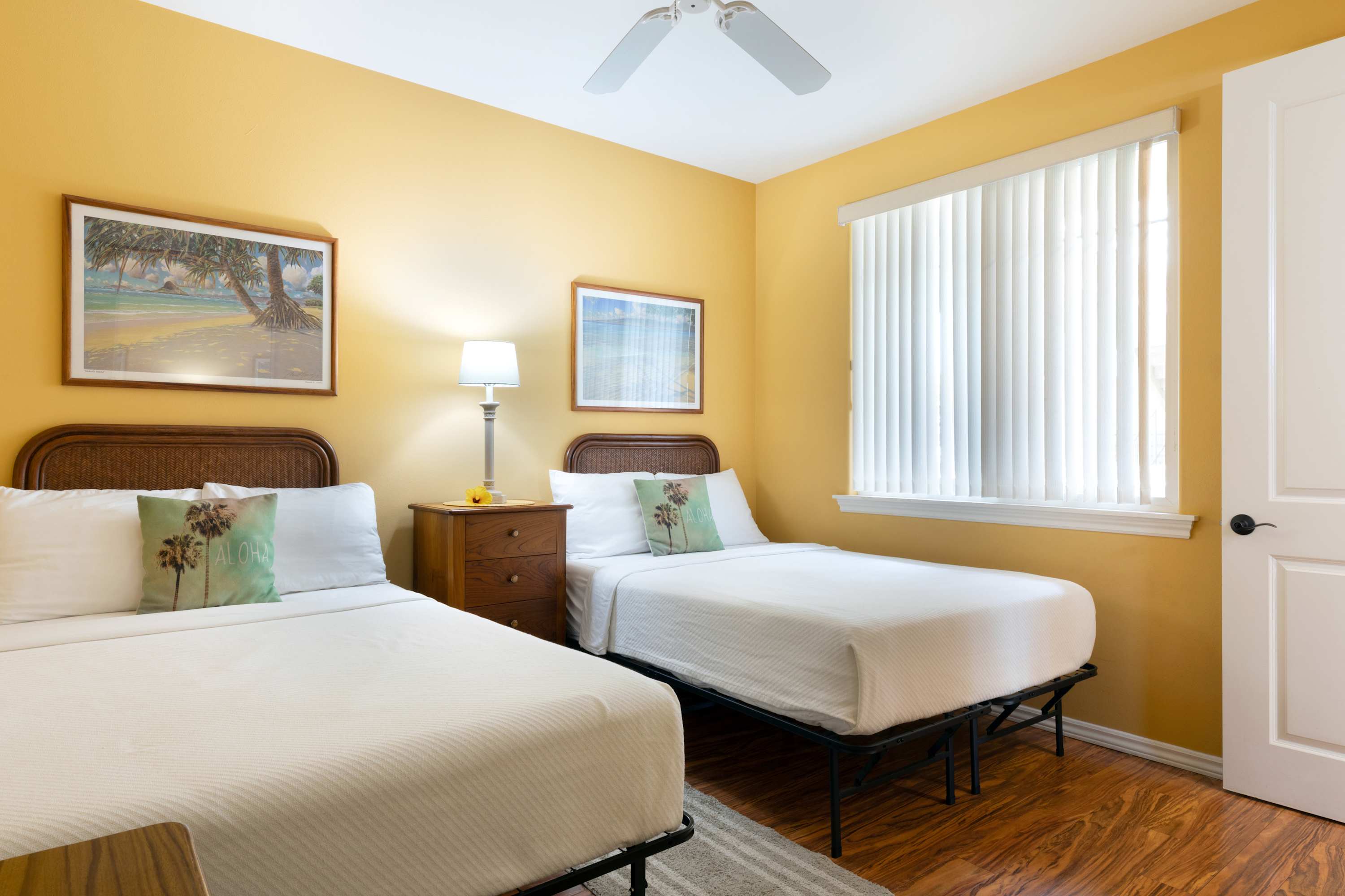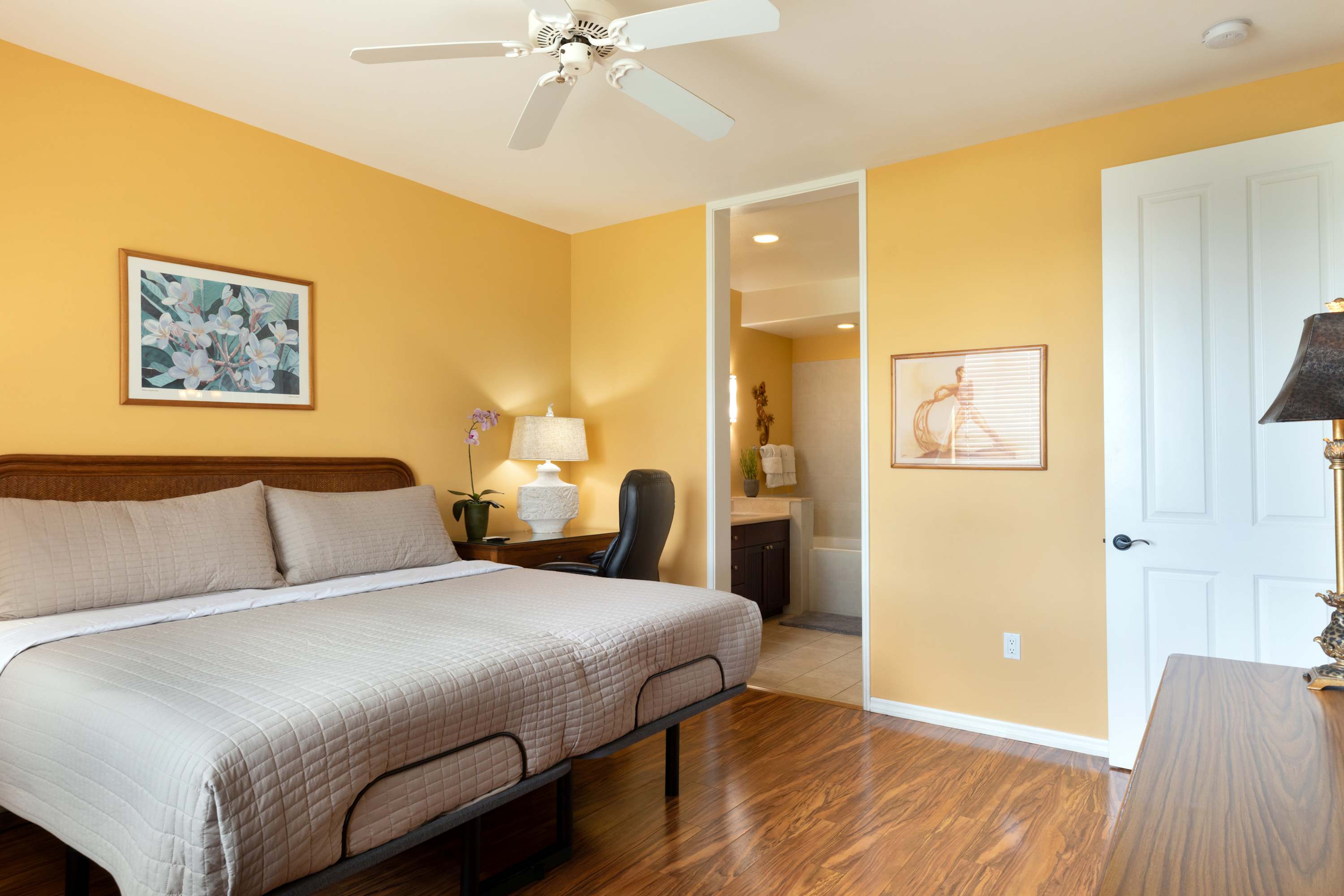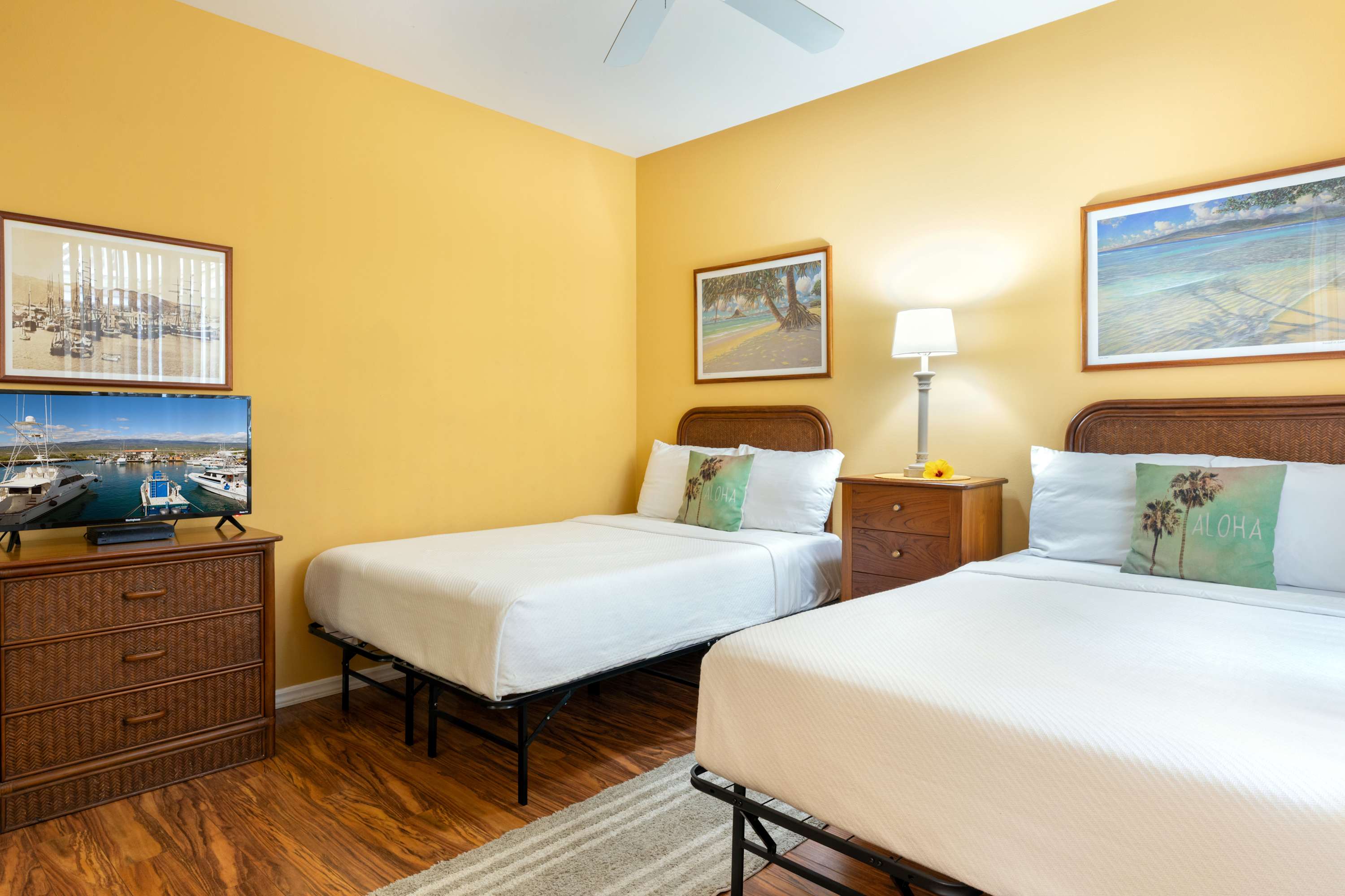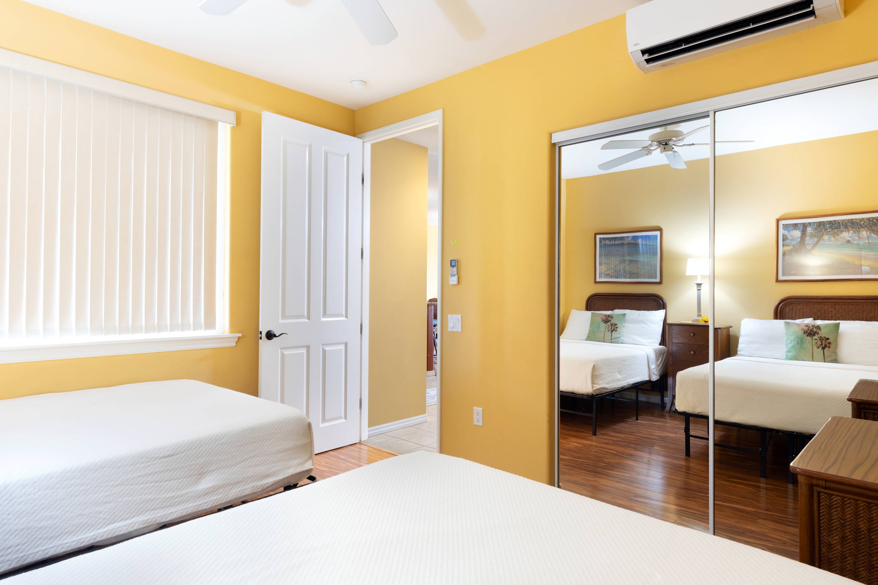 Step inside the luxurious villa to be greeted by Hawaiian decor and island furnishings! The living room is well situated with a cable TV, DVD player, and lanai access. Enjoy your morning coffee out on the lanai overlooking the golf course and reservoir. There is air conditioning available to stay cool during the warm summer days.