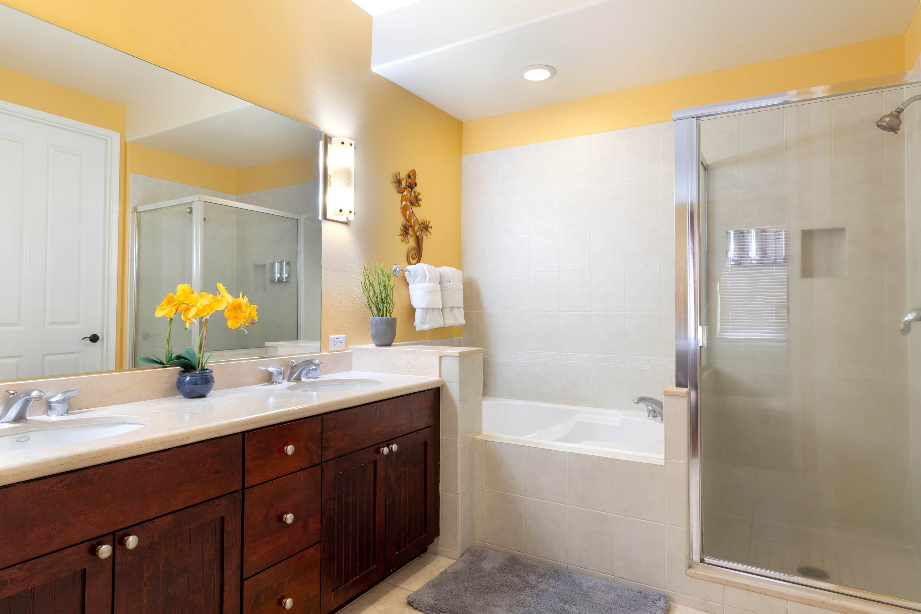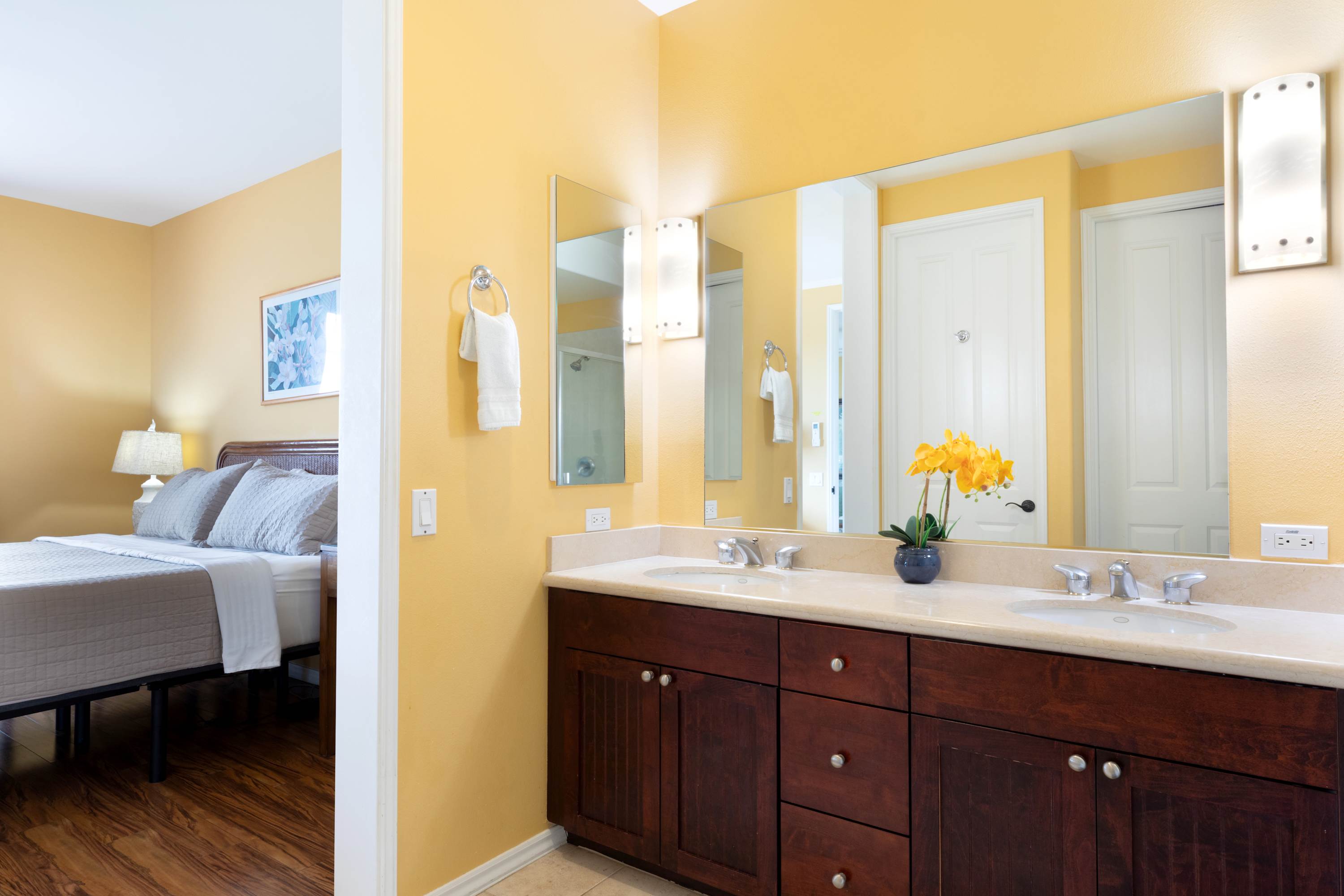 The master bedroom has a California King bed and en suite bathroom. After a long day of adventure, take a relaxing bath in the soaking tub. The 2nd bedroom has 2 Full size beds, great for the kids. There is a shared full bathroom available as well. The washer and dryer are available for guests, perfect after a day at the beach or after a long hike!
