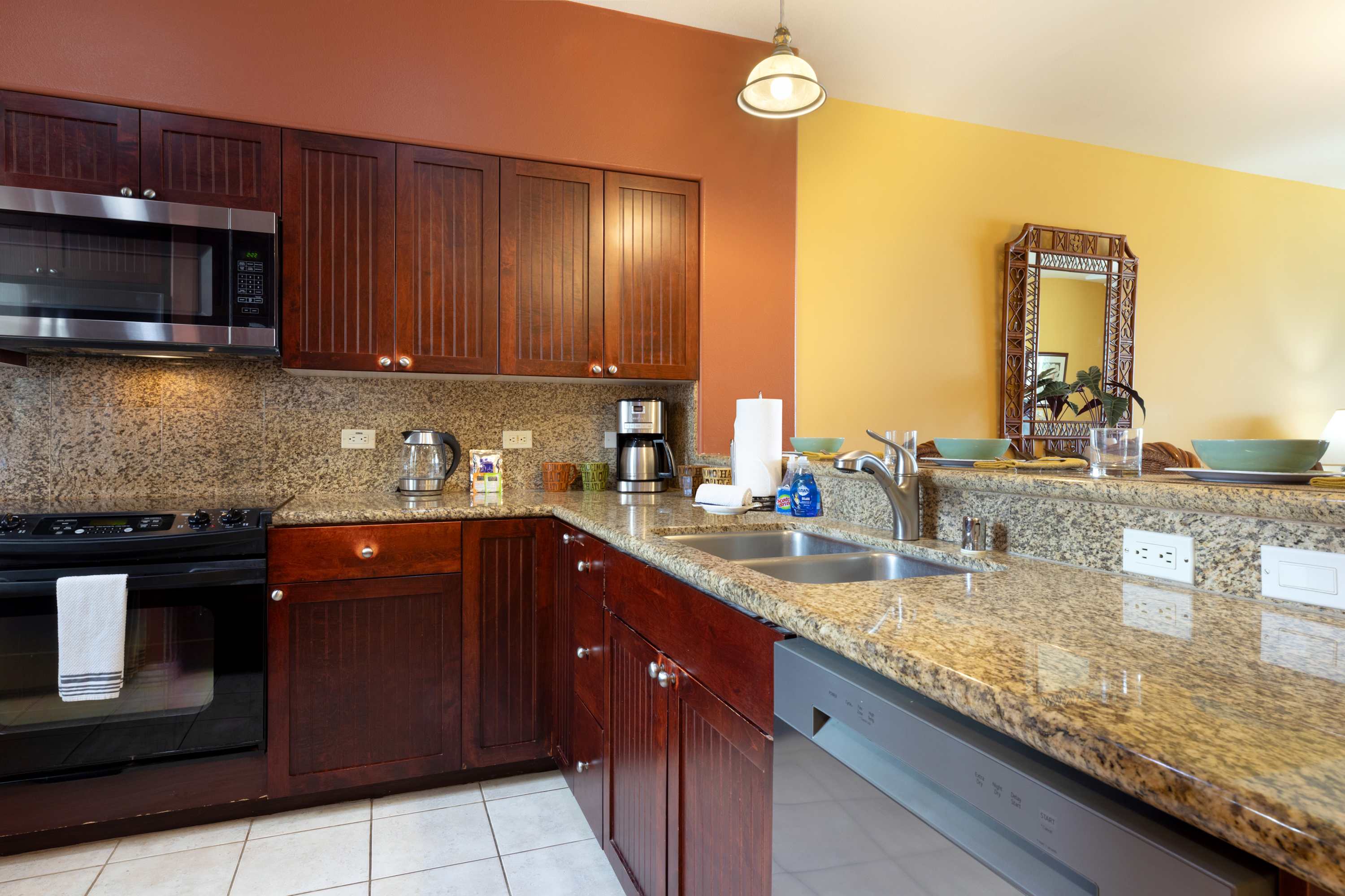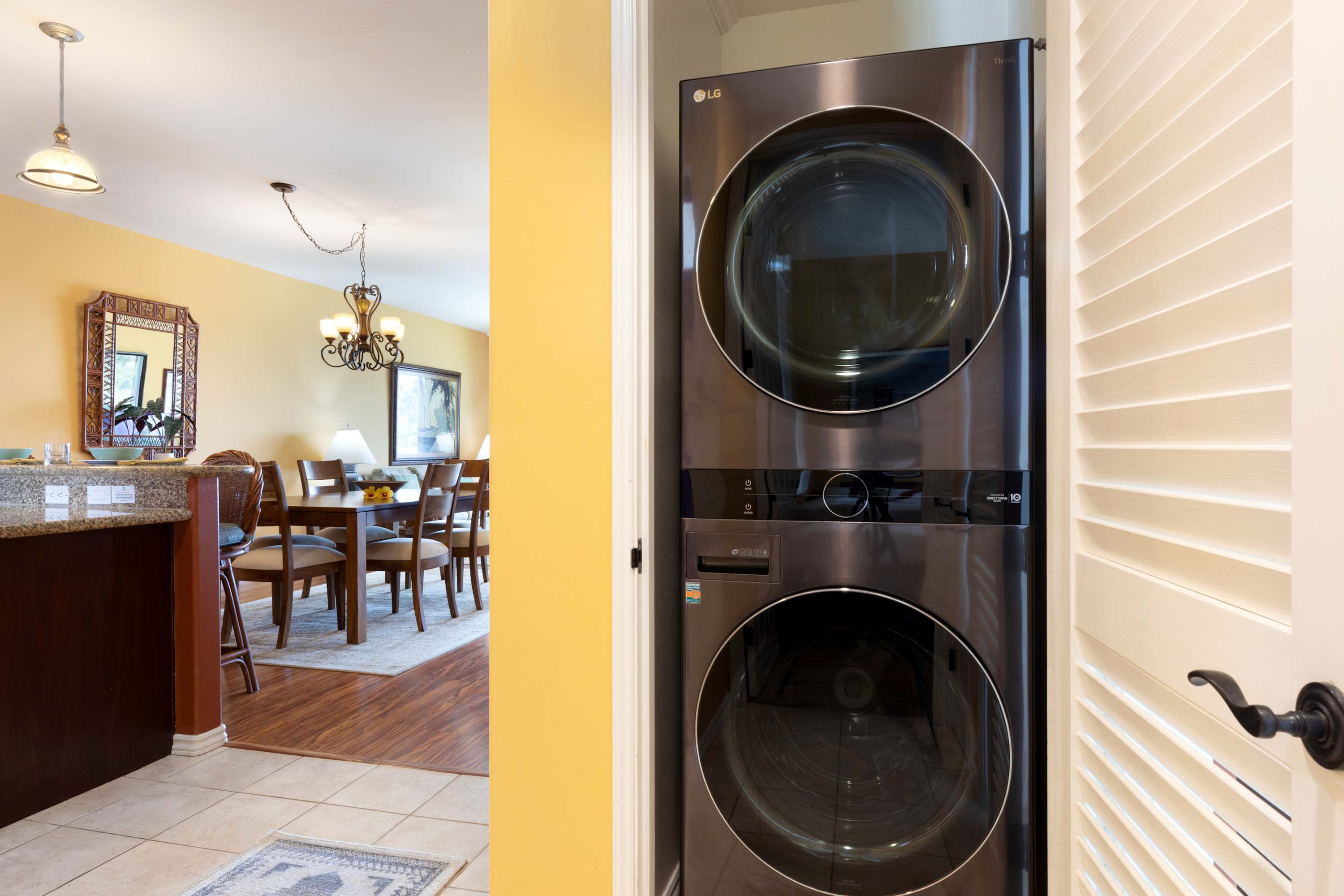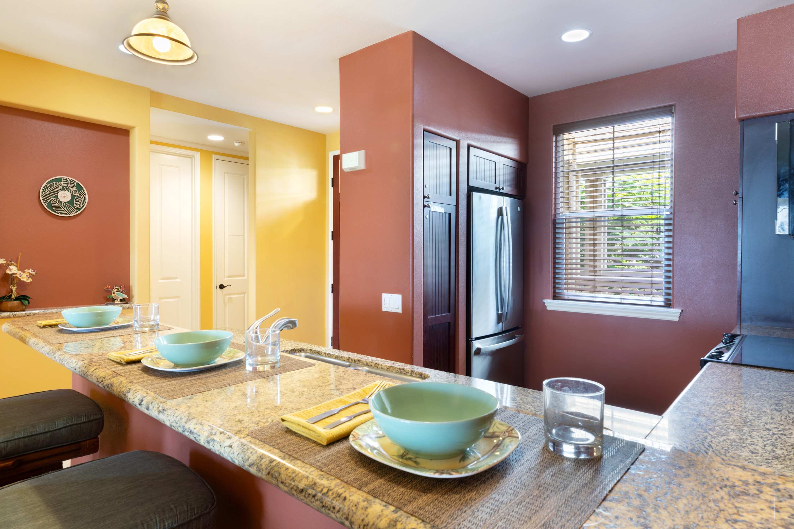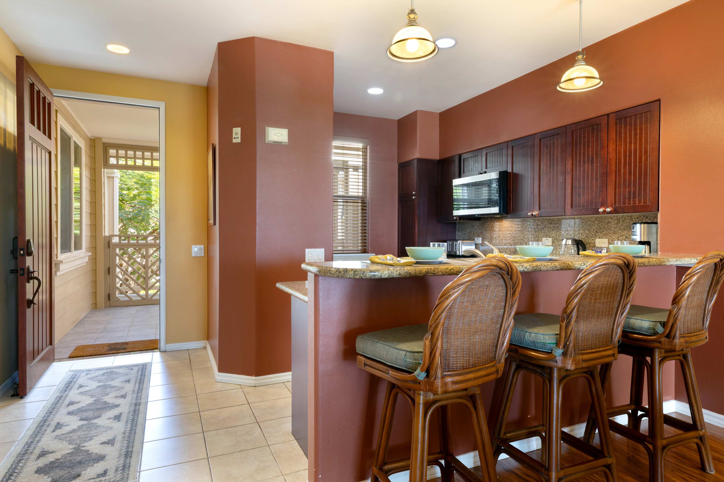 The kitchen is well equipped with a coffee maker, toaster, blender, and more to make you feel right at home! If you don't feel like cooking at home, explore the island flavors from BBQ's to poke. The dining table has seating for 6.