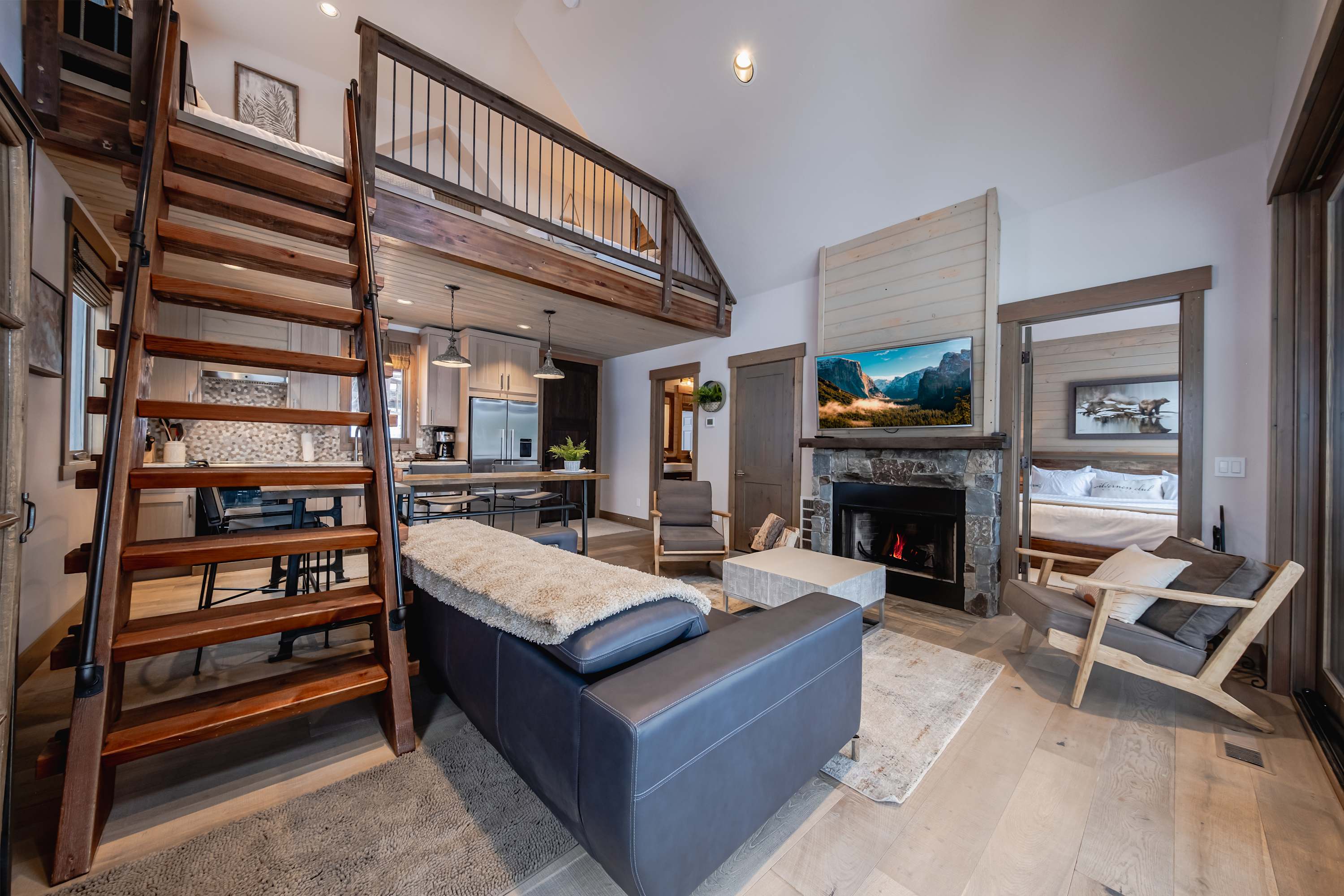 This home comfortably sleeps 4 guests between a private bedroom and a loft.