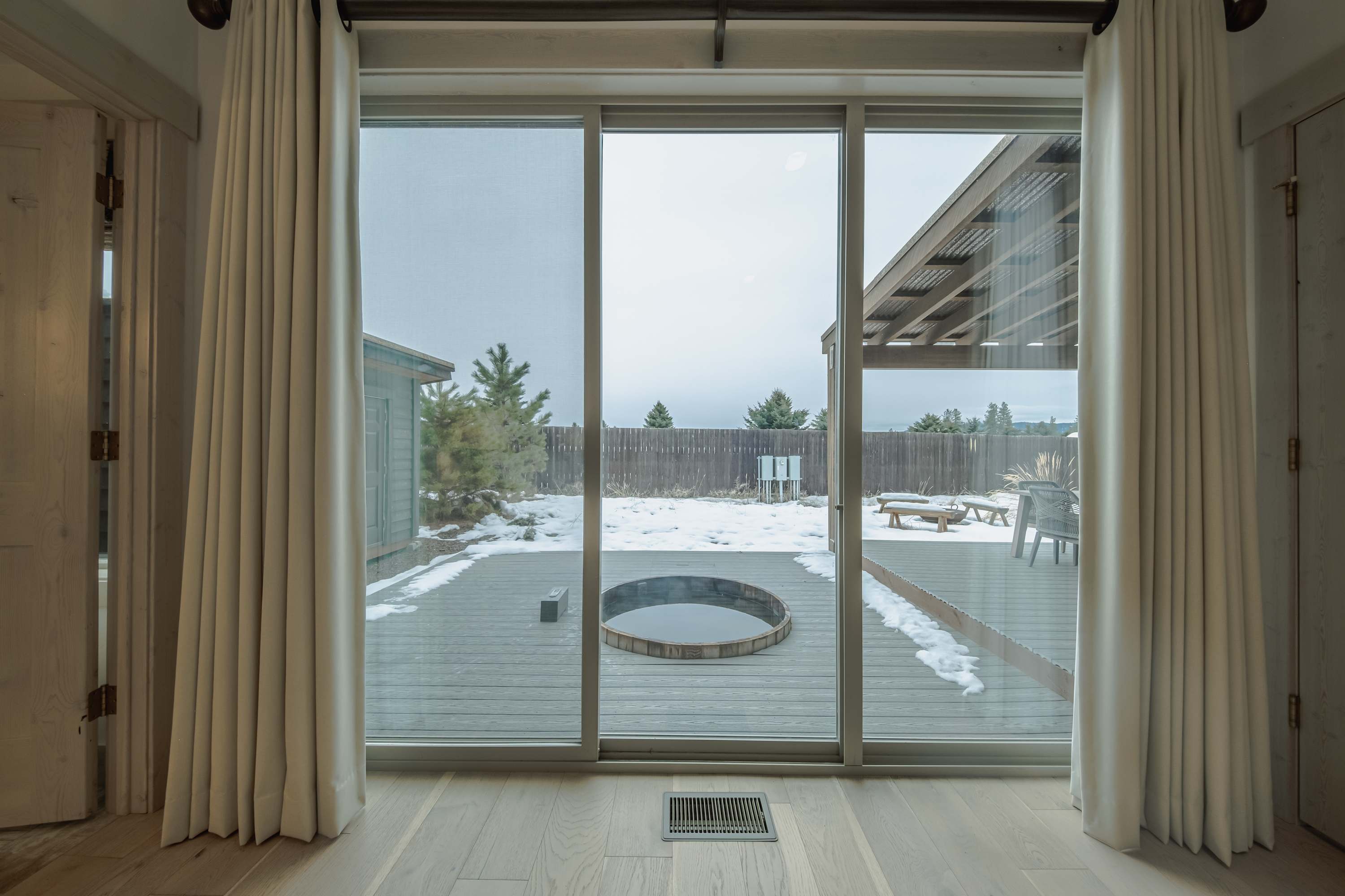 The home’s spacious outdoor deck is the perfect spot for soaking in fresh air and abundant sunshine, immersing yourself in the tranquil bliss of the surrounding landscape. Grill up an authentic barbeque feast on the grill, served tableside at the outdoor dining set for 6 in rain or shine under the cover of the overhang. As evening nears, enjoy a soak in the built-in hot tub, soothing your tired muscles with a relaxing glass of wine in hand.