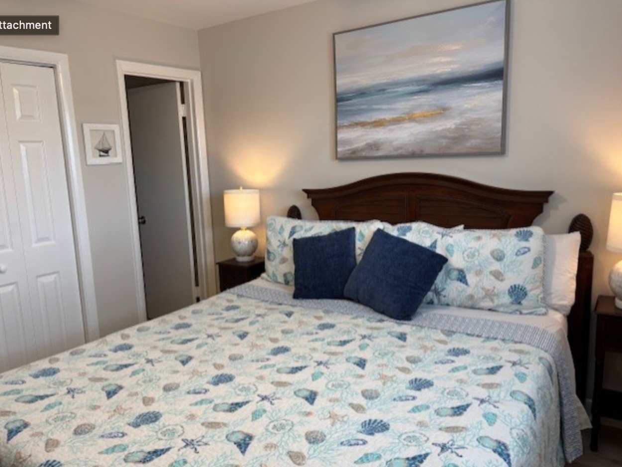 Both bedrooms have smart TVs for easy downtime. The primary suite includes an ensuite bath for added privacy. You’ll be in a resort community near the beach with access to indoor and outdoor pools, a hot tub and sauna, a wellness gym, and outdoor BBQ areas with seating—great for relaxing after a day in the sun. Beach essentials are provided to help you make the most of your time on the sand.