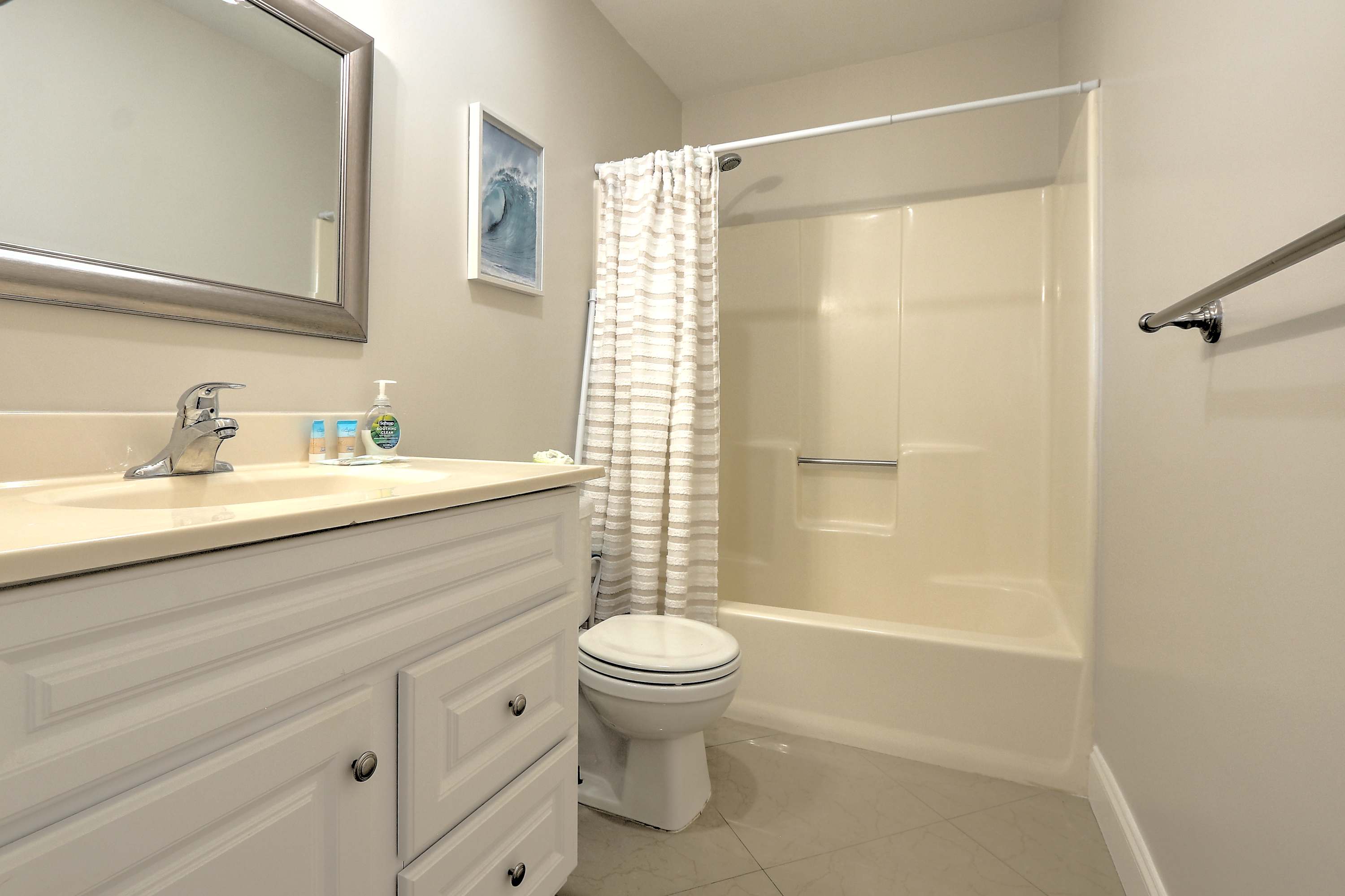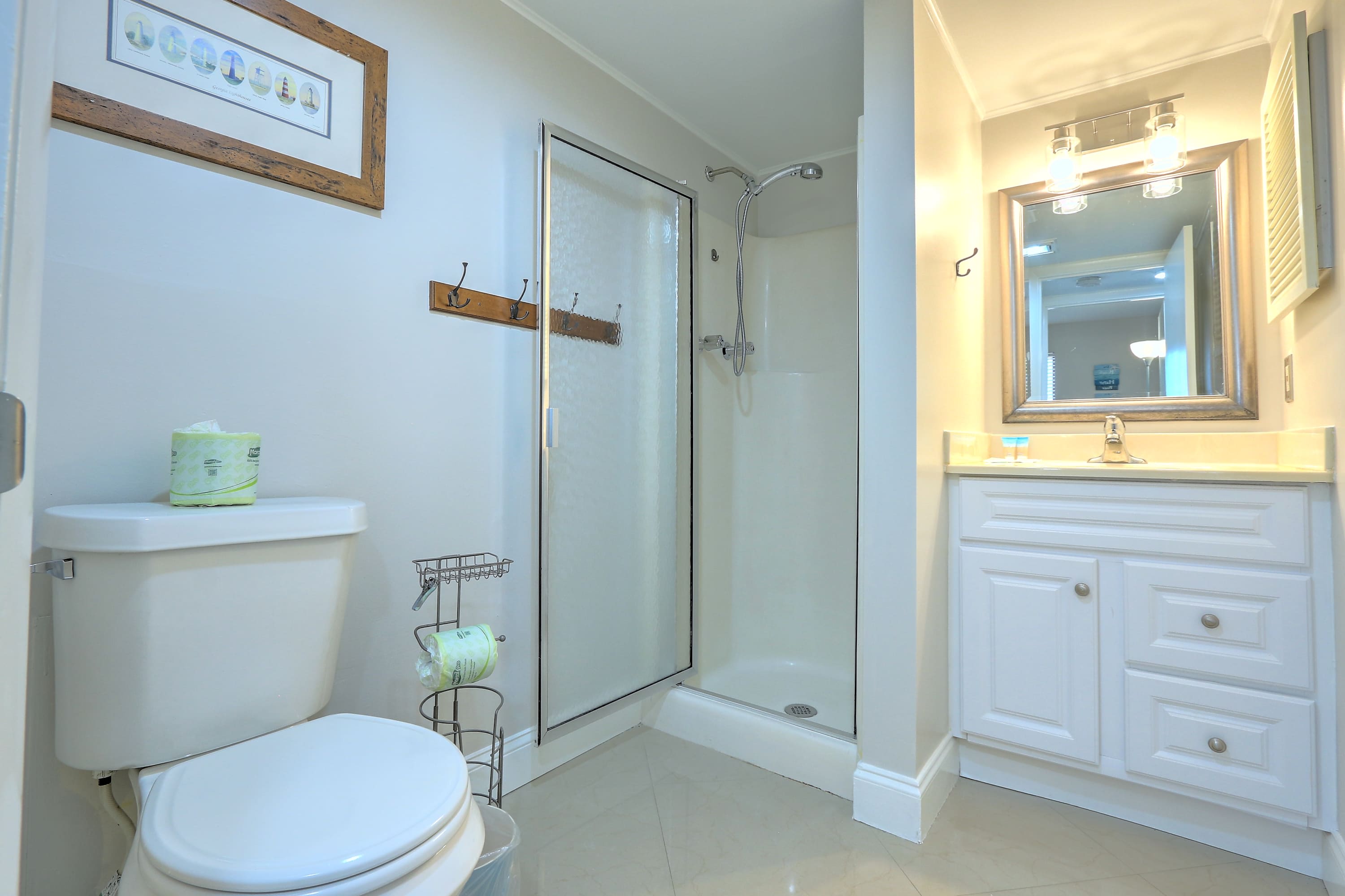 • Bathroom 2 (hall/guest): Single vanity and walk-in shower