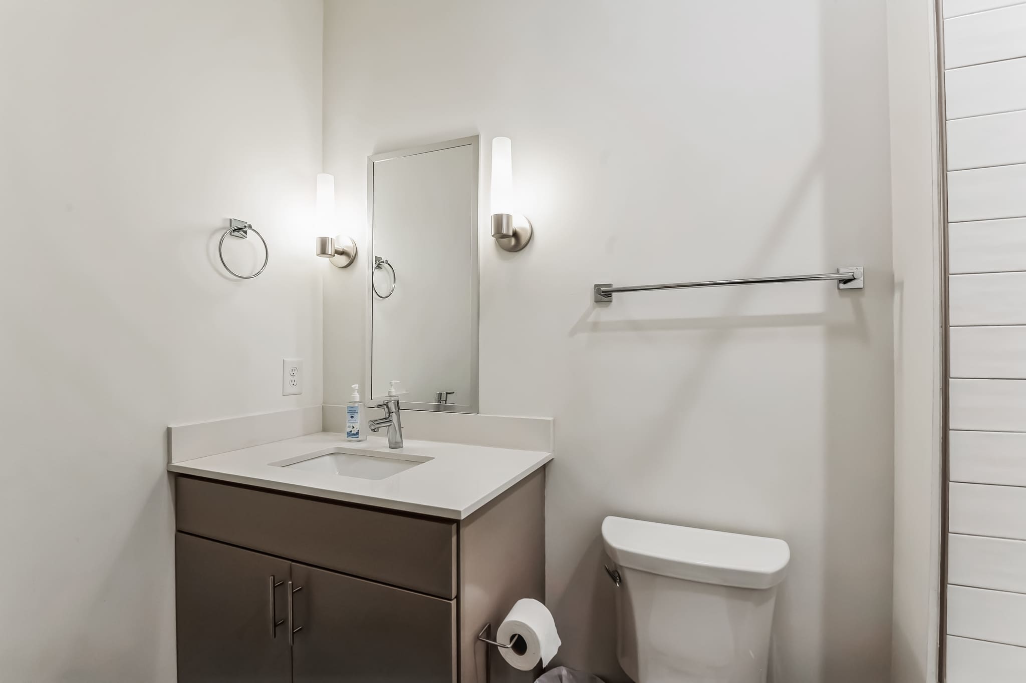 The home also includes a half bathroom as well as an additional full guest bathroom with a single vanity and shower/tub combo.