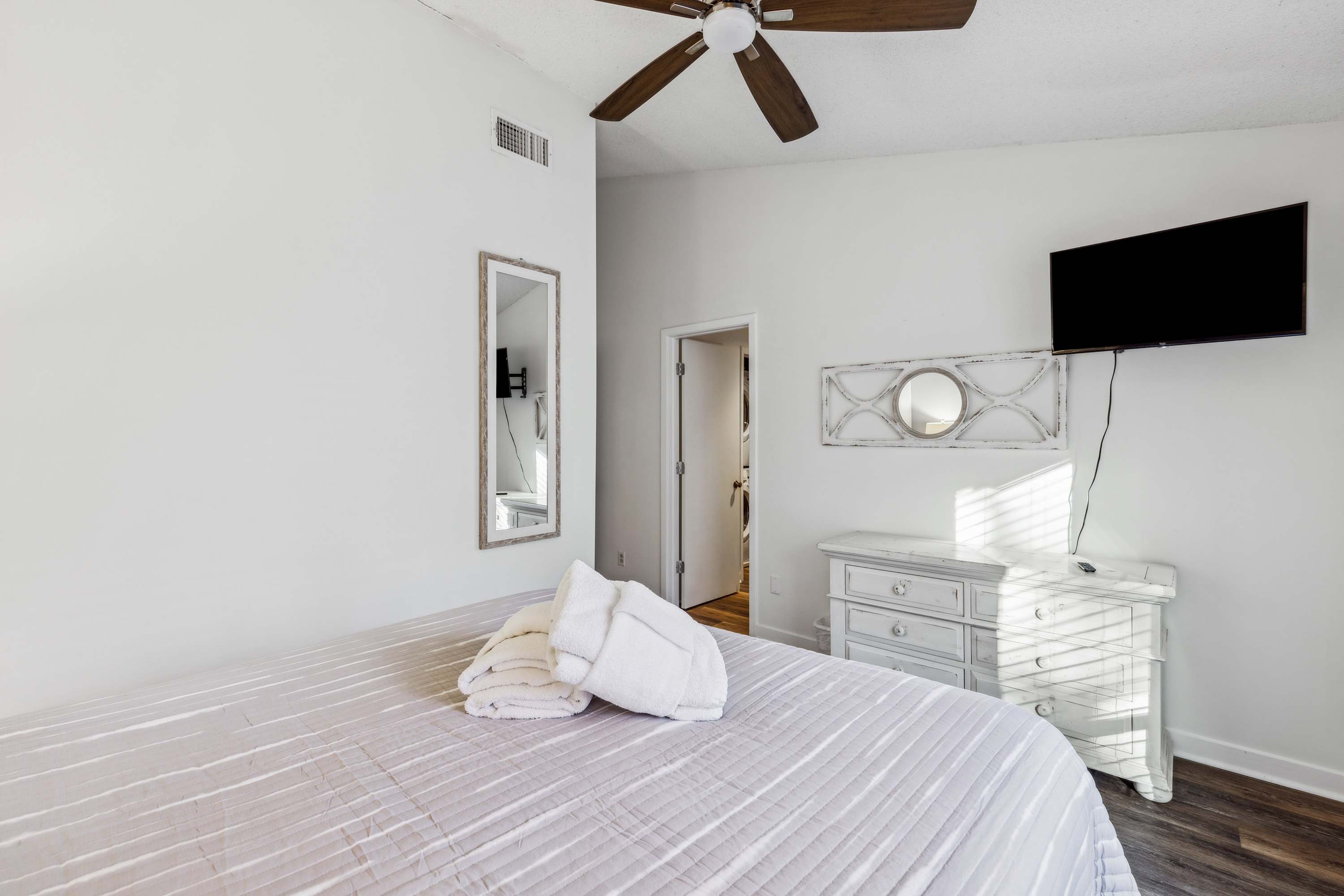 • Bedroom 1: Queen bed, sleeps 2; smart TV