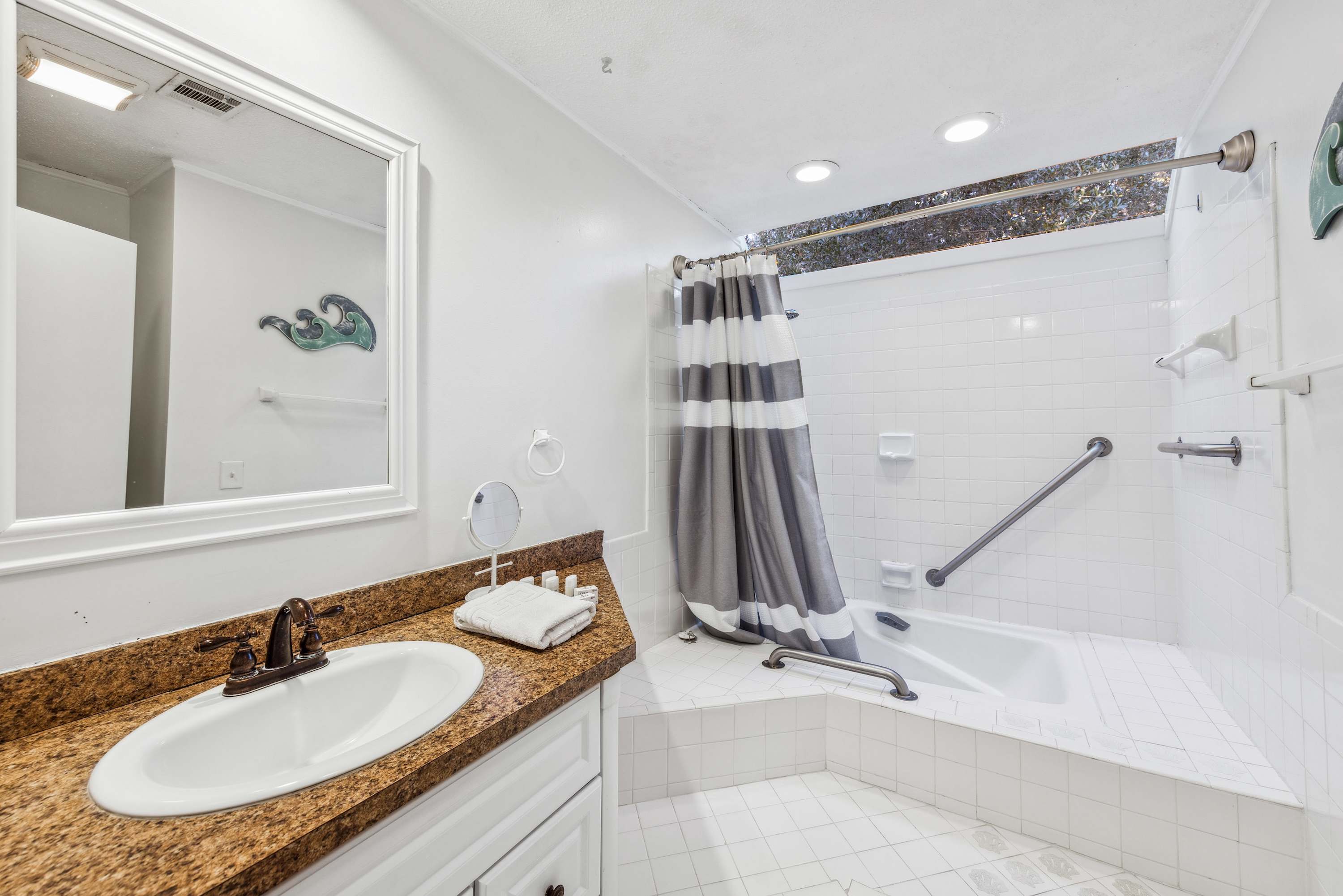 • Bathroom 1: Hall access; single vanity and tub/shower combo