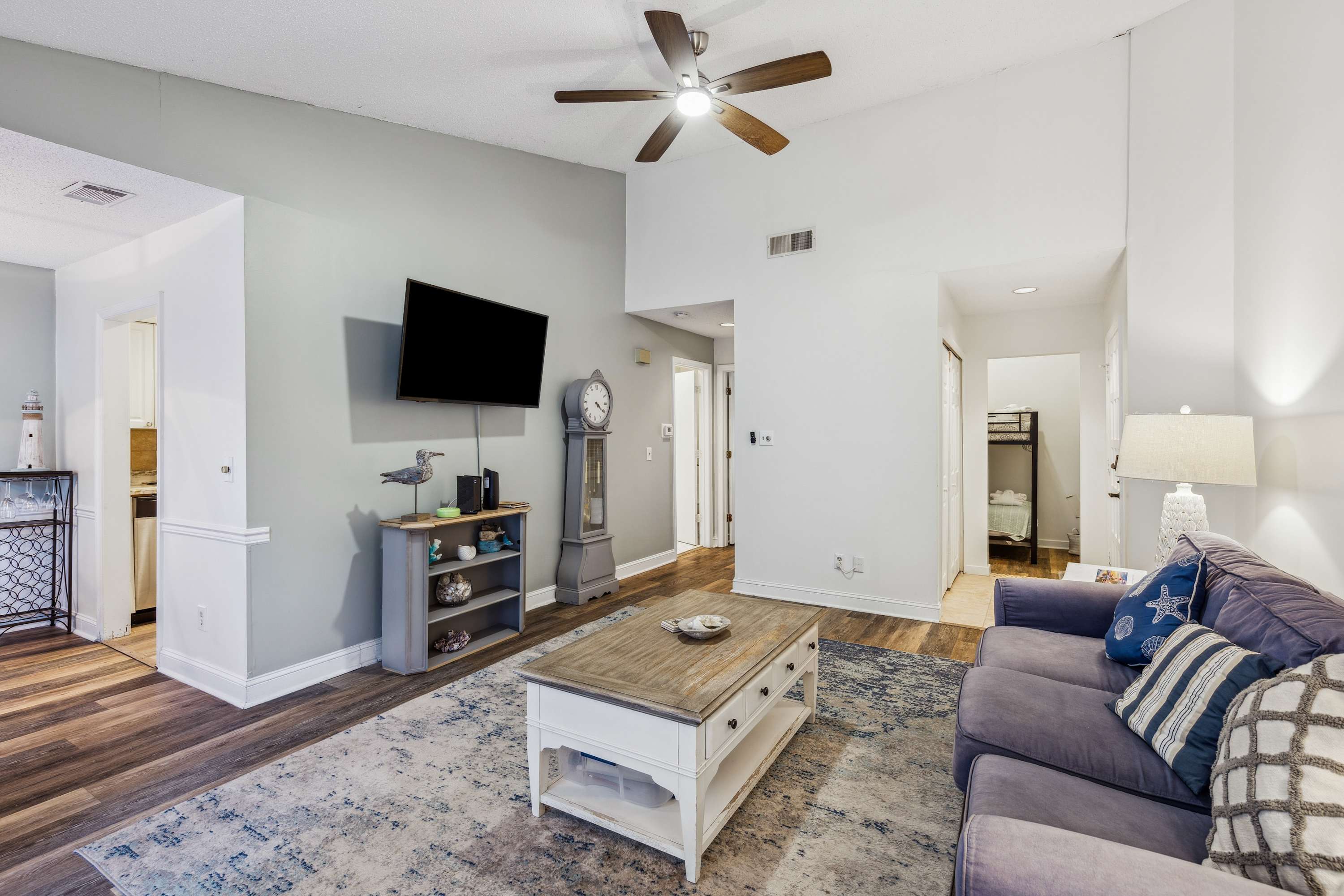 • Alcove (off living room): Twin-over-twin bunk bed, sleeps 2