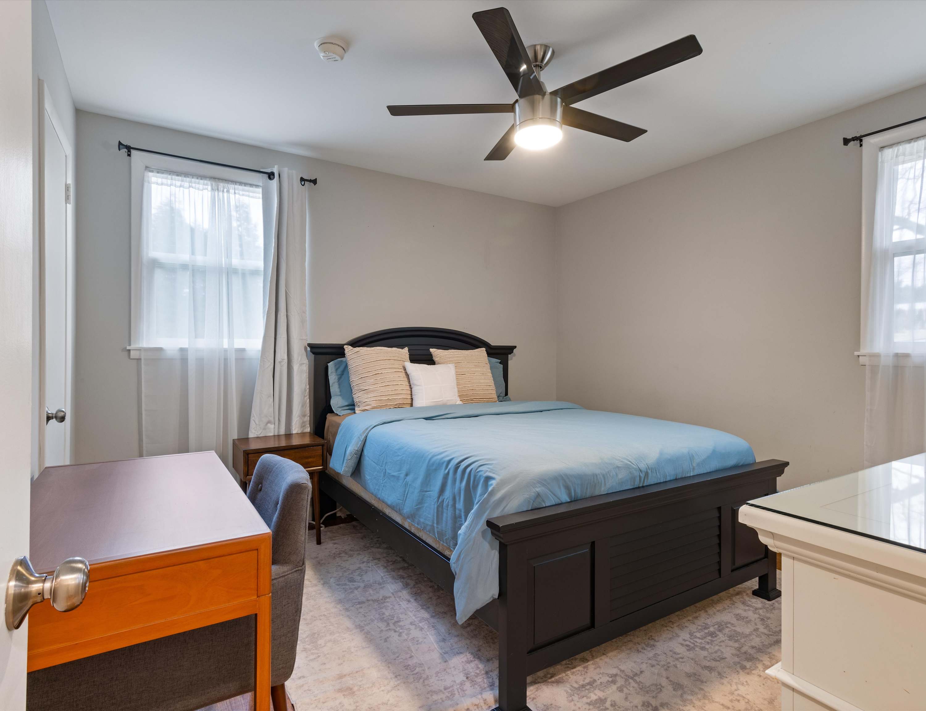 Bedroom #1 includes a queen size bed and dedicated workspace.