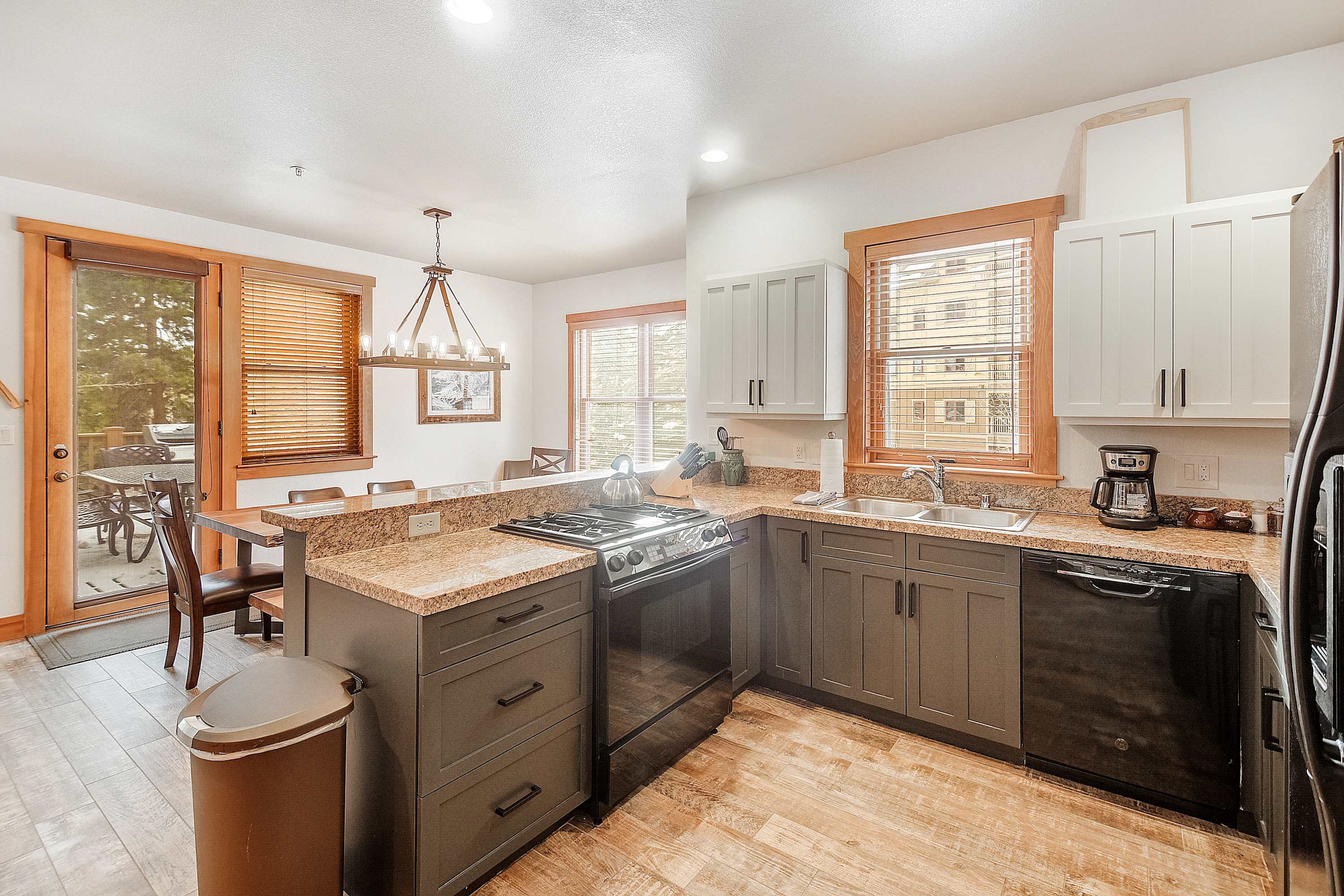 Settle in for game nights at the pool table or break out the board games for a cozy evening in. Two bedrooms include TVs for unwinding at the end of the day, and Bedroom 1 features a cooling unit for added comfort. Step outside to the outdoor seating area to enjoy the fresh alpine air. A washer and dryer in the home make longer stays simple, and parking is a breeze with garage and driveway options.