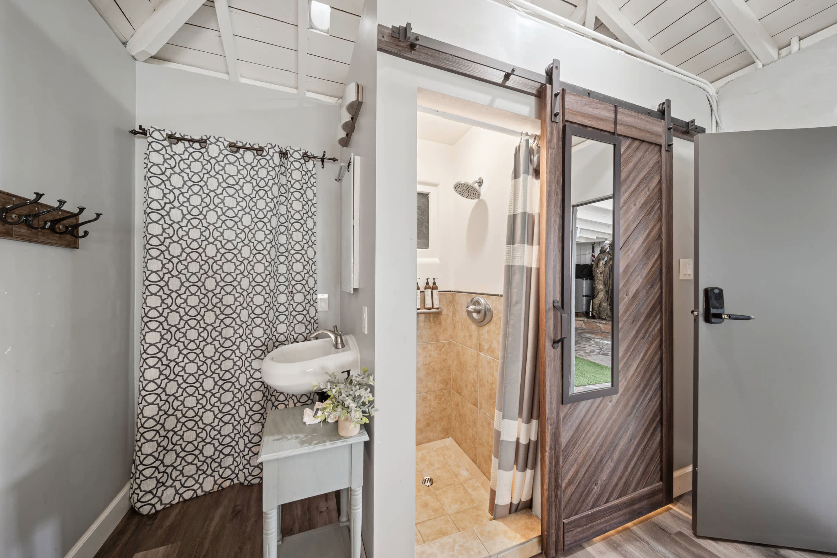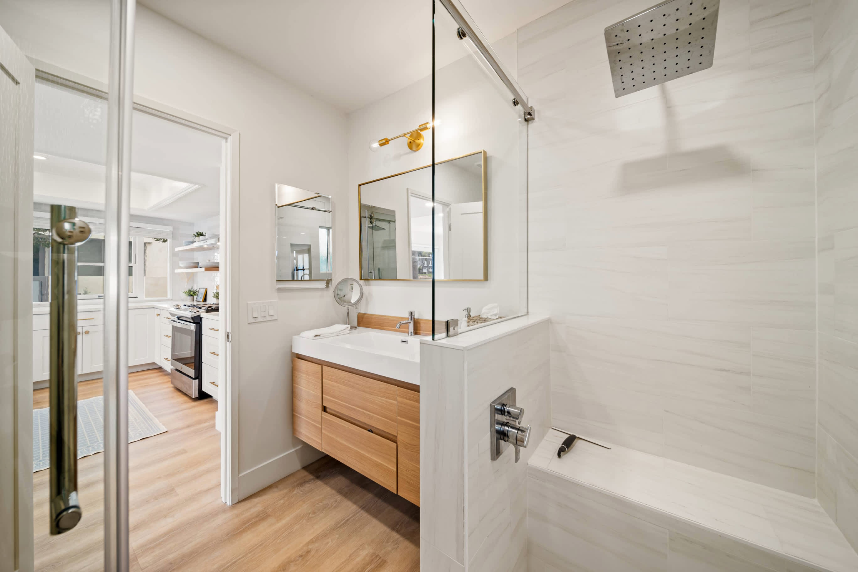 The home also includes an additional full guest bathroom with a single vanity and glass walk-in shower.