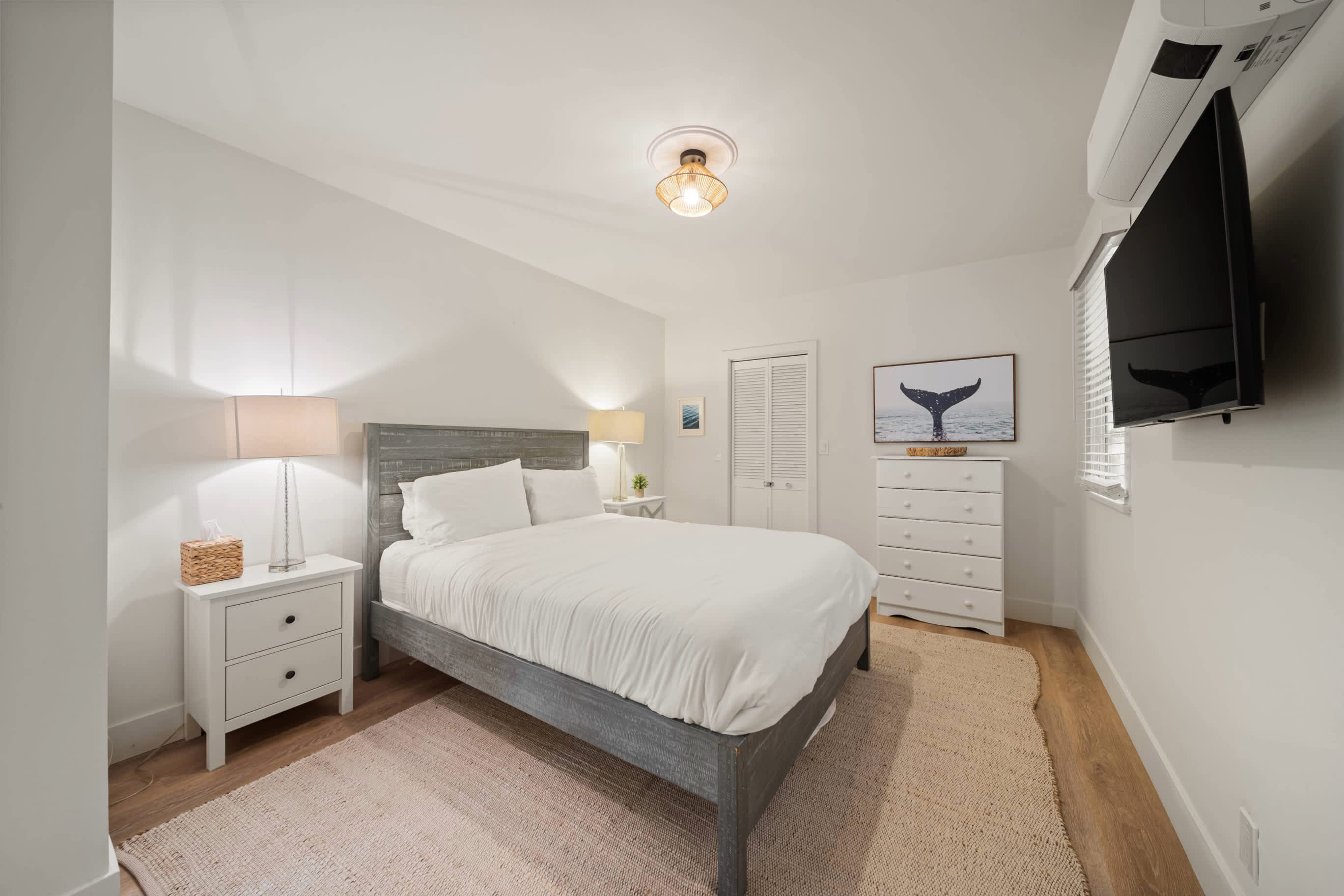 Bedroom #1 includes a queen size bed and TV.