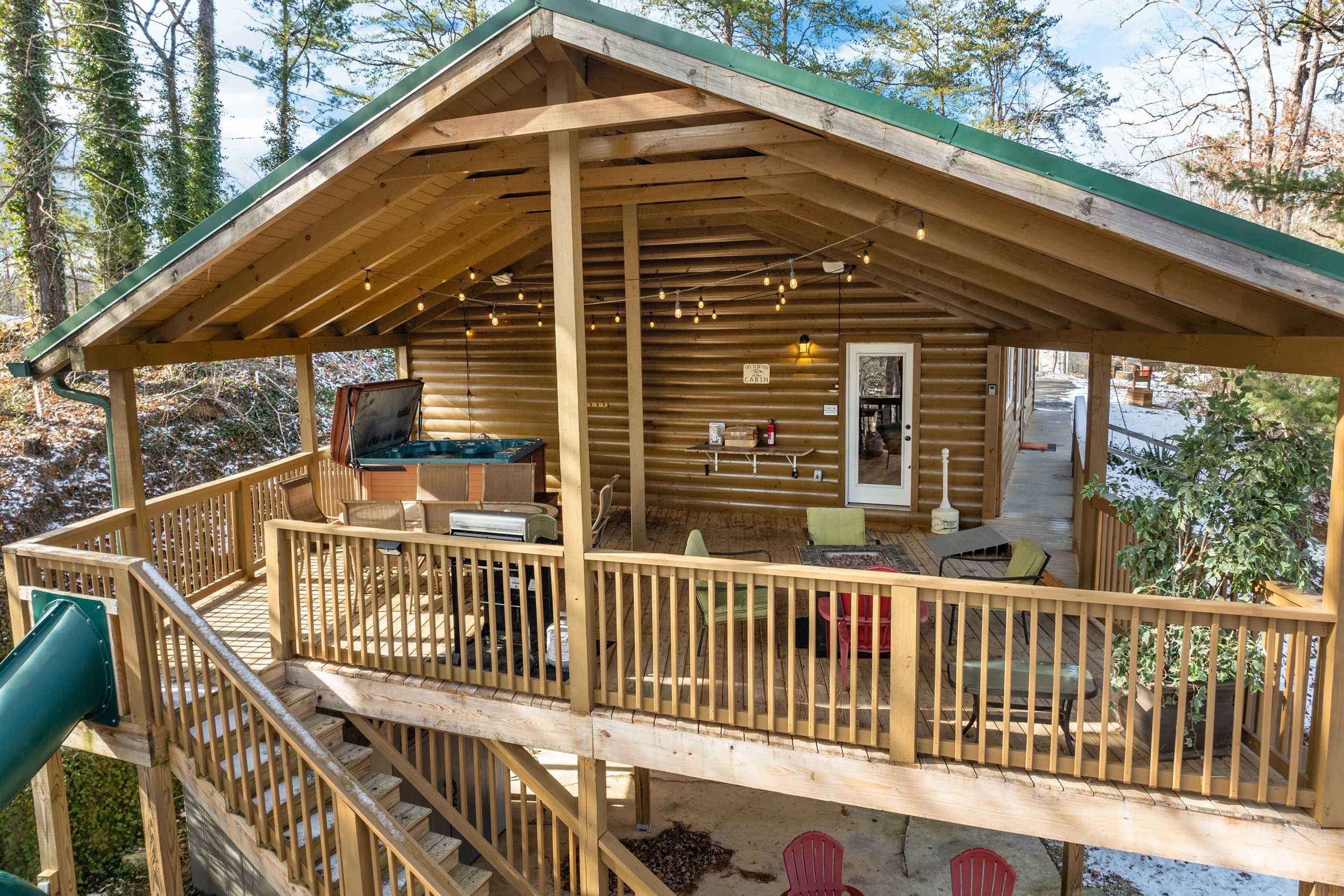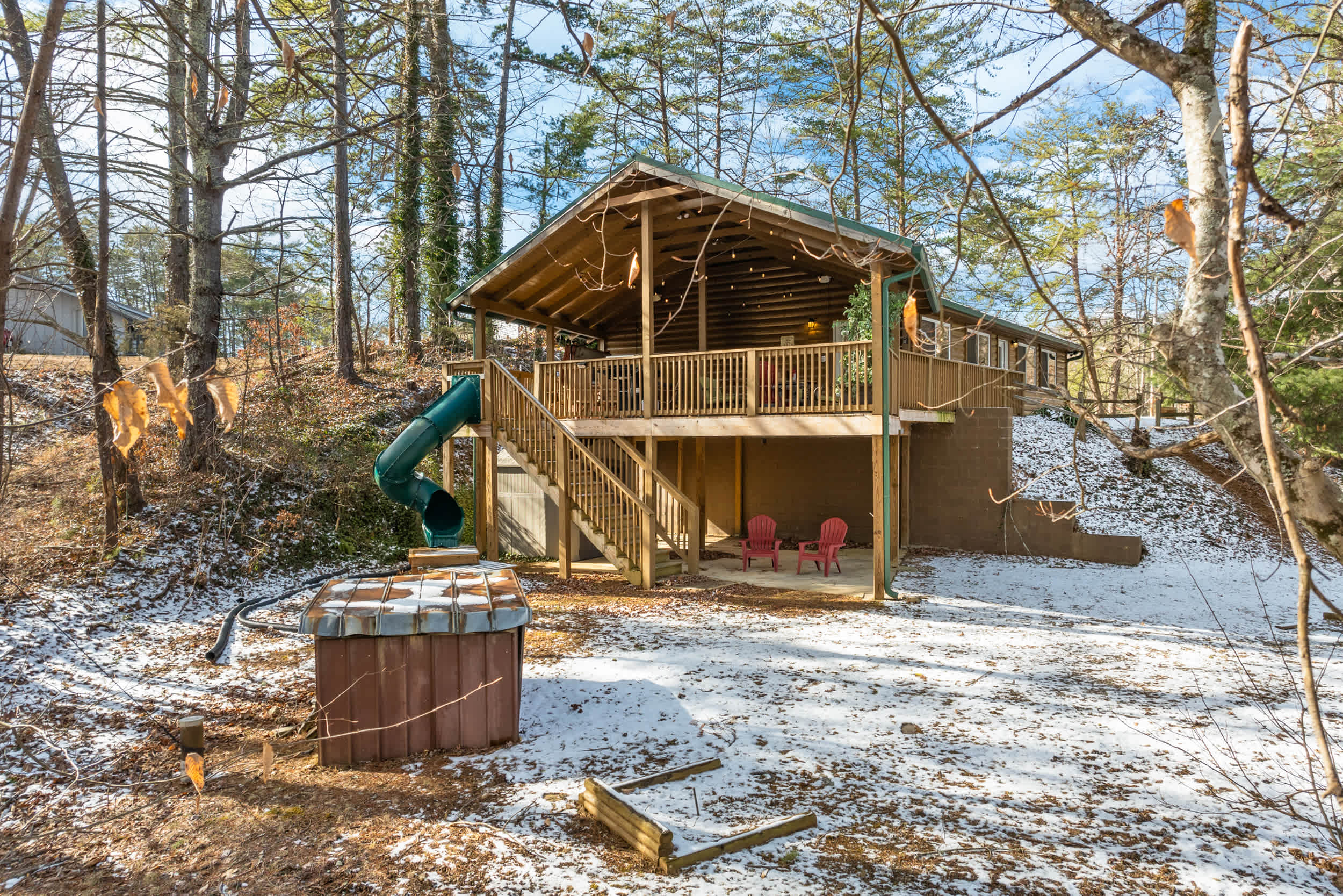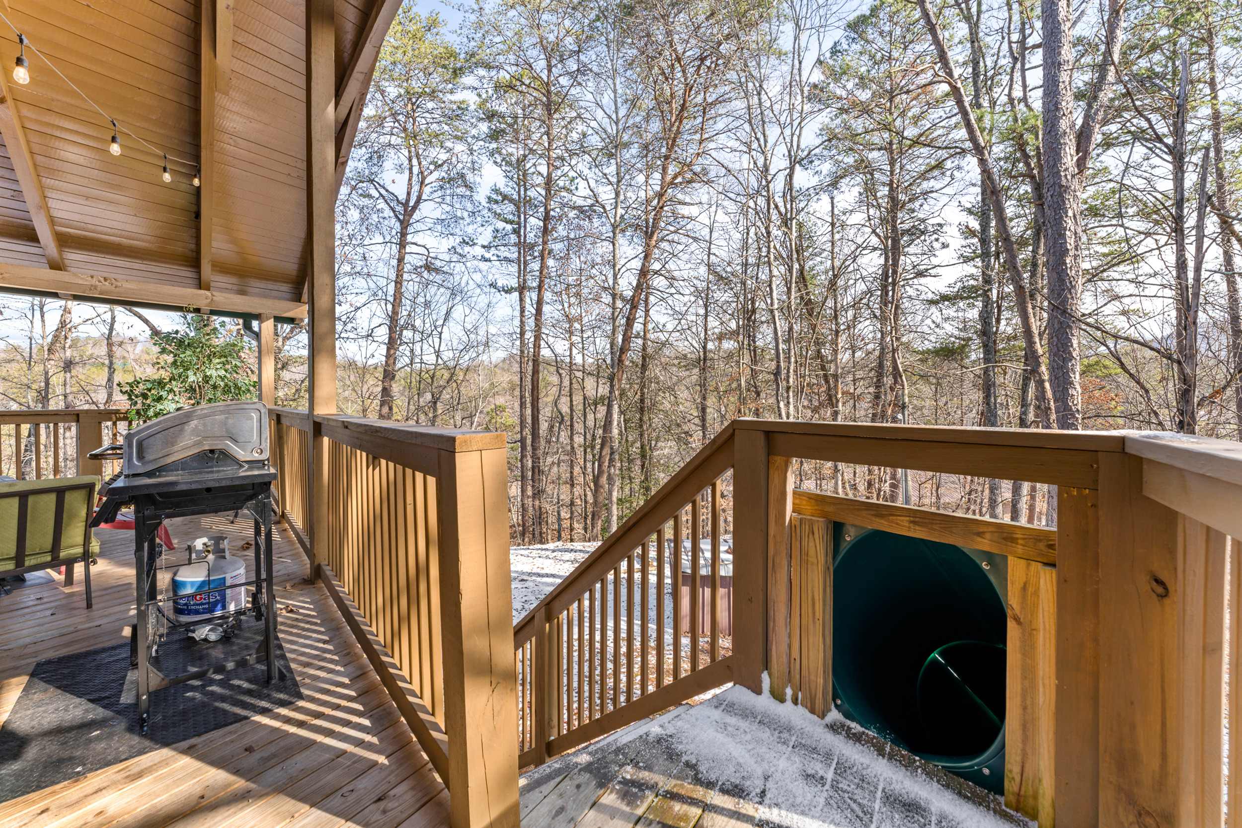 Bringing kids along? As soon as you arrive, they’ll be eager to test out the enclosed slide from the top deck. Follow their lead and opt for a quick dip in the hot tub while they mingle from the slide to horseshoe pitching. Of course, if you want to entertain your inner child as well, take a chance and have your turn on the slide, too! Whether you're unwinding by the firepit, soaking in the private hot tub, or enjoying a cookout on the spacious deck, this cabin provides a fun yet relaxing getaway for families and friends.