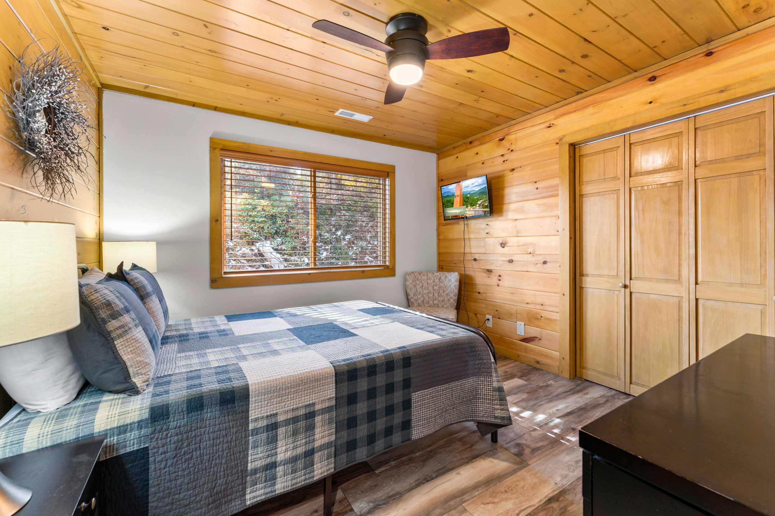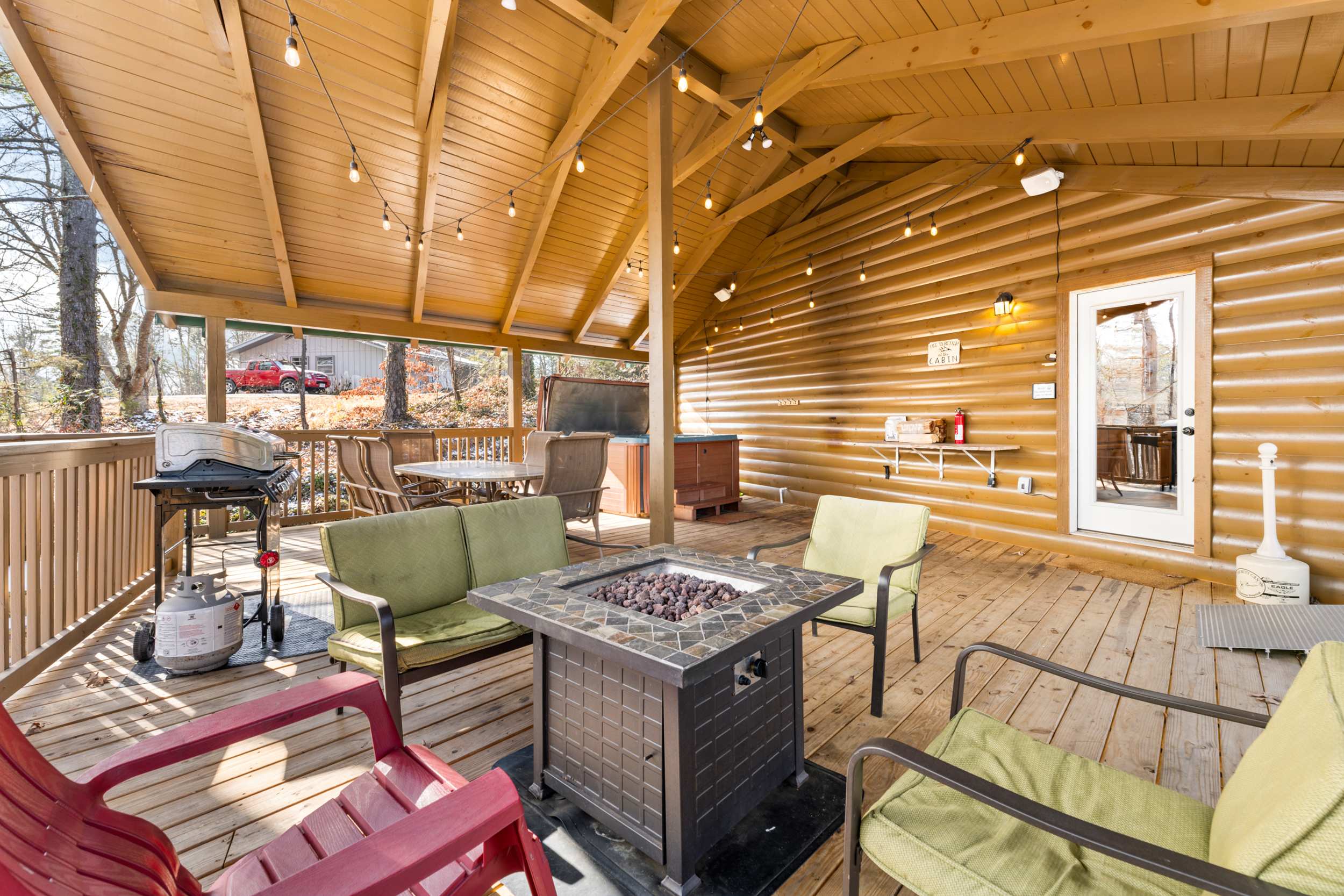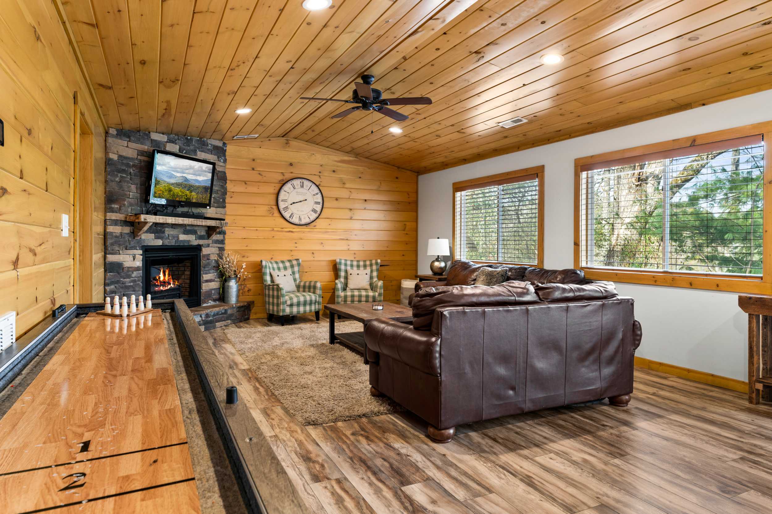 Bringing kids along? As soon as you arrive, they’ll be eager to test out the enclosed slide from the top deck. Follow their lead and opt for a quick dip in the hot tub while they mingle from the slide to horseshoe pitching. Of course, if you want to entertain your inner child as well, take a chance and have your turn on the slide, too! Whether you're unwinding by the firepit, soaking in the private hot tub, or enjoying a cookout on the spacious deck, this cabin provides a fun yet relaxing getaway for families and friends.