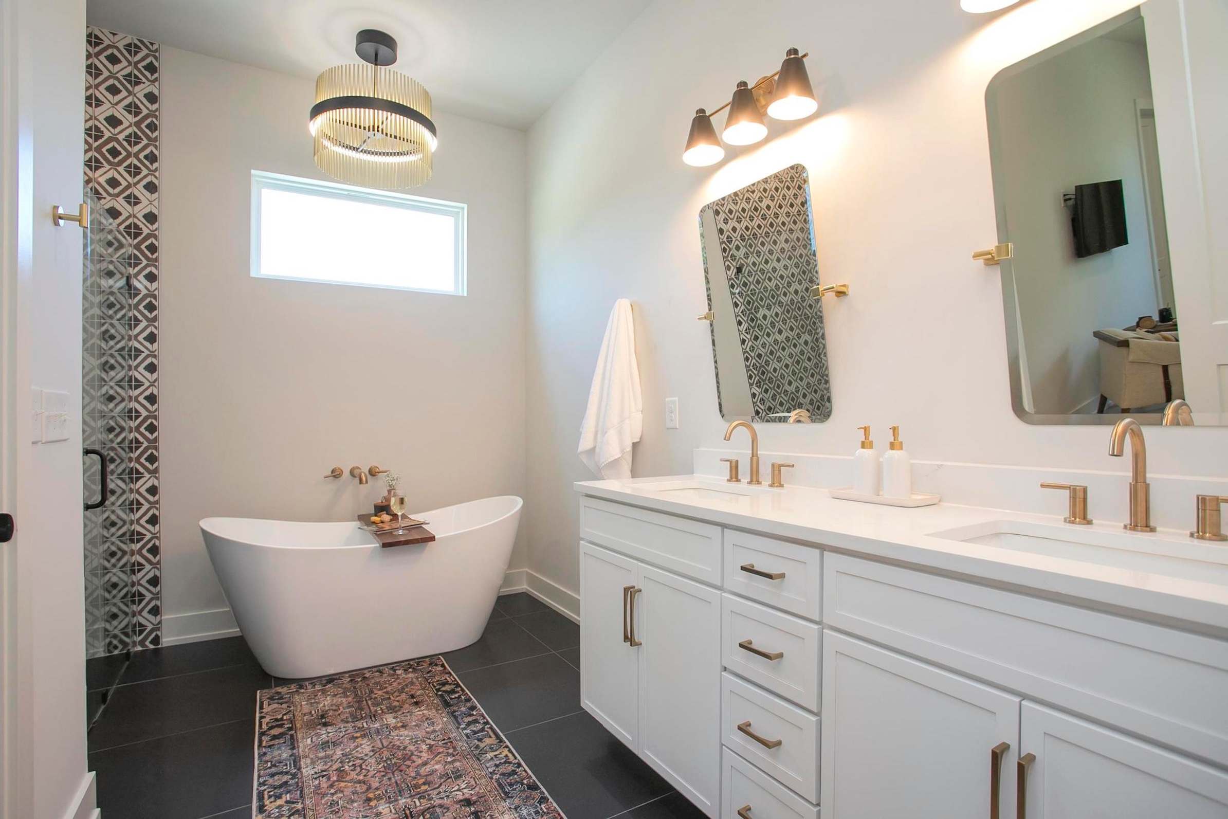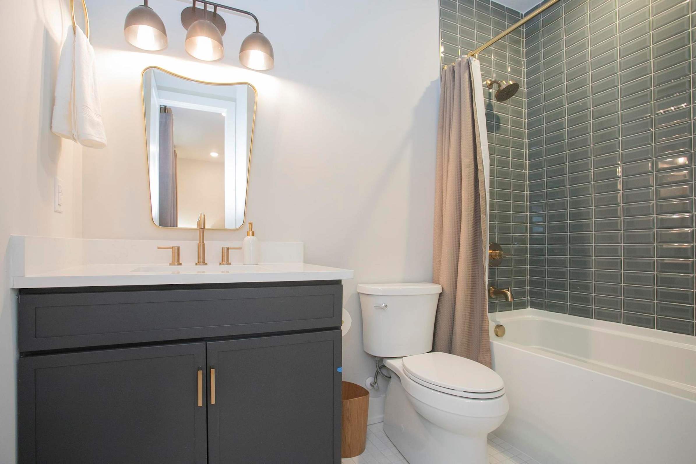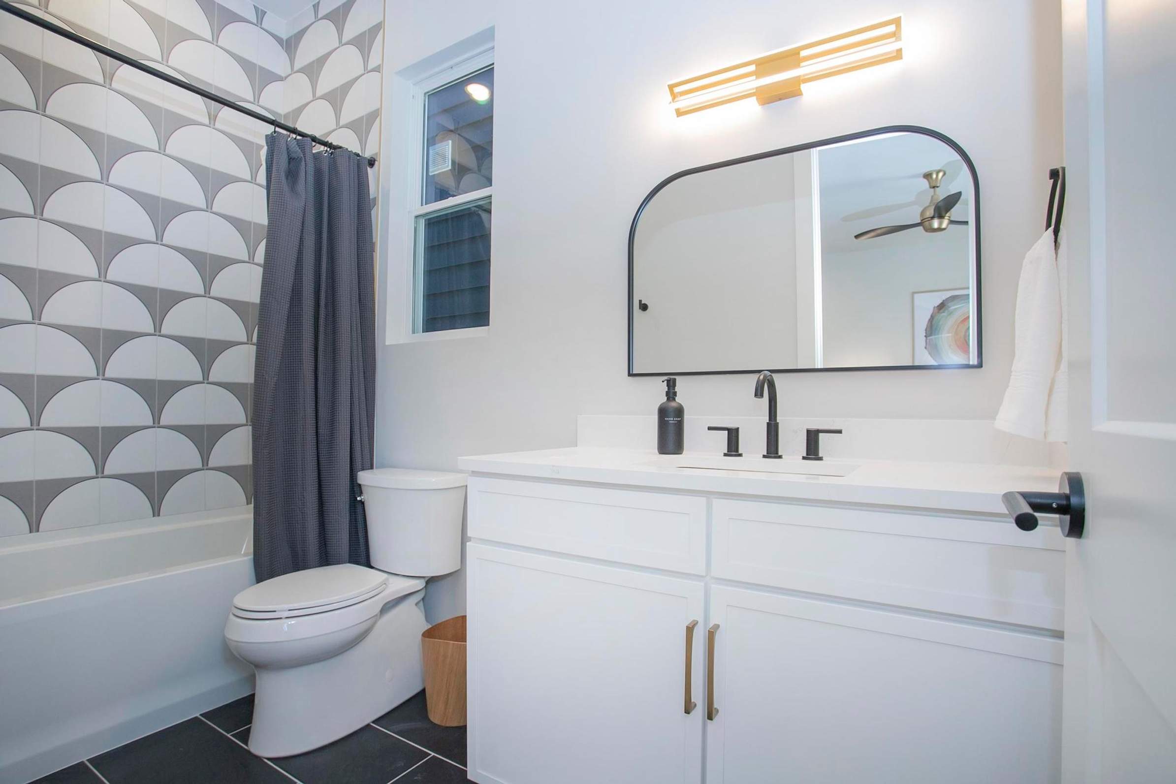 This home also includes a half bathroom and an additional full bathroom with a single vanity and a shower/tub combo.