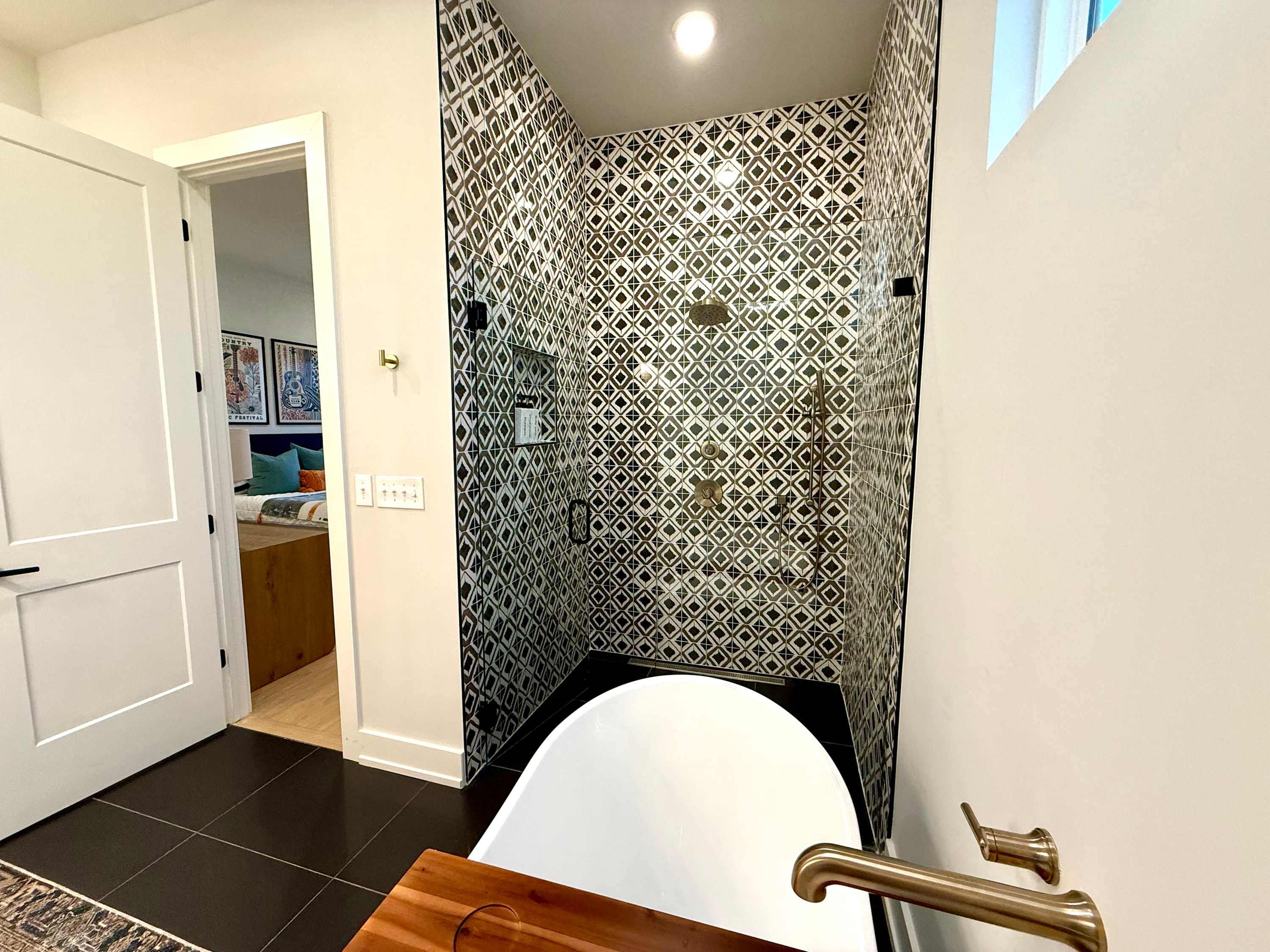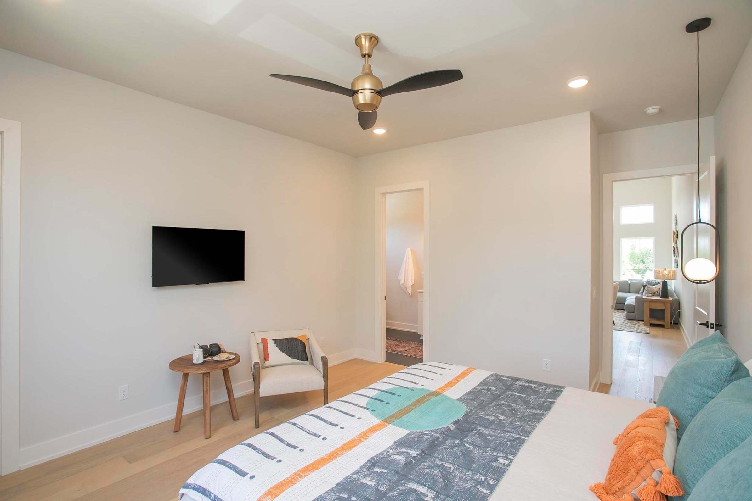 Bedroom #4 includes a king size bed, a smart TV, and an ensuite bathroom with dual vanities, a soaking tub, and a glass walk-in shower.