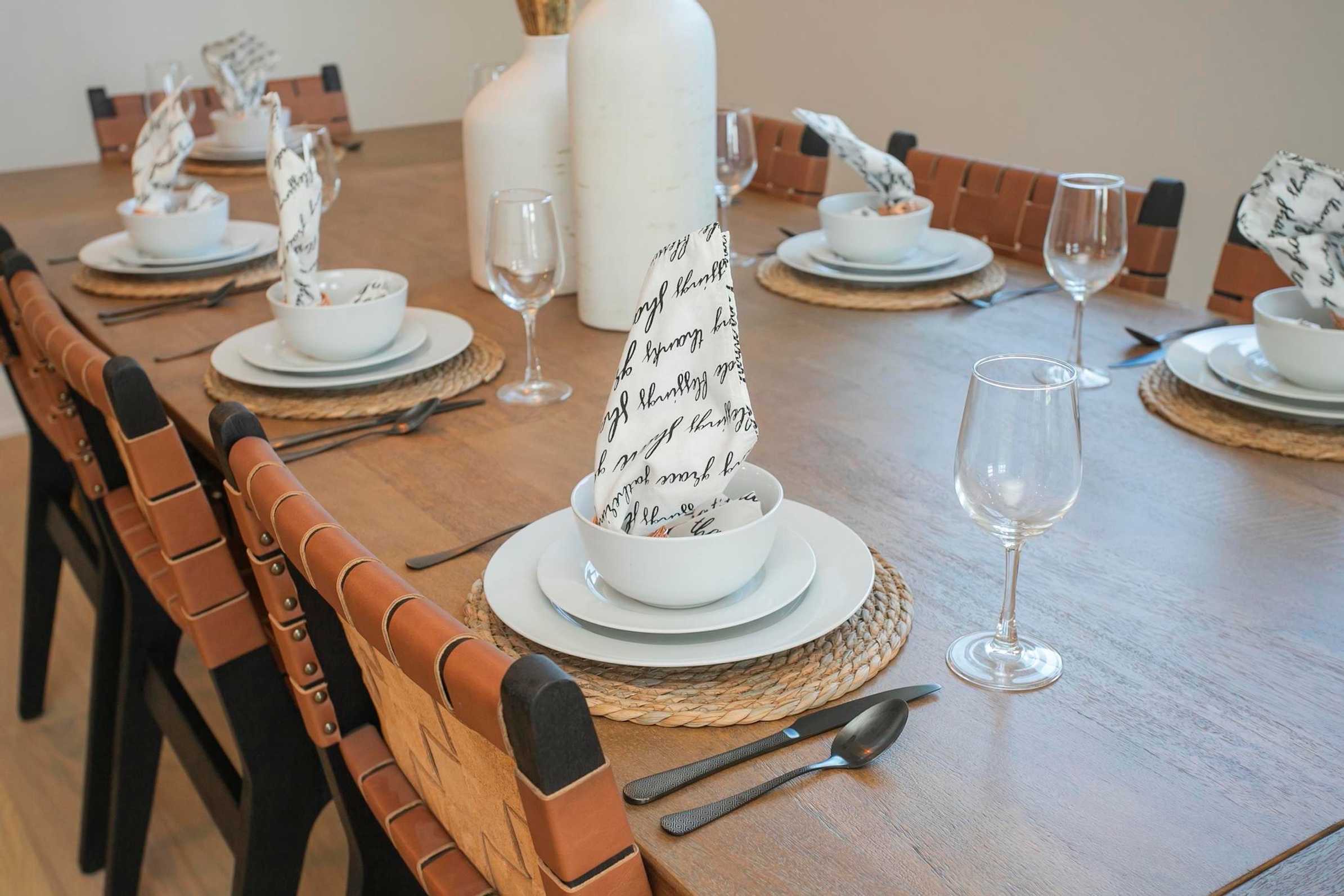 After some downtime outdoors, head inside to find beautifully decorated spaces with high ceilings and plenty of natural sunlight spilling through the windows. Set your wine in the full-size wine cooler to chill before you check out the rest of the space. The fully equipped kitchen provides ample counter space, stocked white cabinets, and stainless steel appliances ensuring you have all the cookware and dining ware you need to prepare a 3-course meal or some light appetizers. With a dining table for eight and counter seating for three, there’s plenty of room for the crew to enjoy mealtime together. If you’re looking for a relaxing night in, pour yourself a glass of wine, claim your spot on the spacious sectional, turn on the fireplace (out of service until further notice), and kick your feet up while you stream your favorite show on the smart TV. If you’re in the mood, dig out a board game for some friendly competition with everyone before you head to bed!