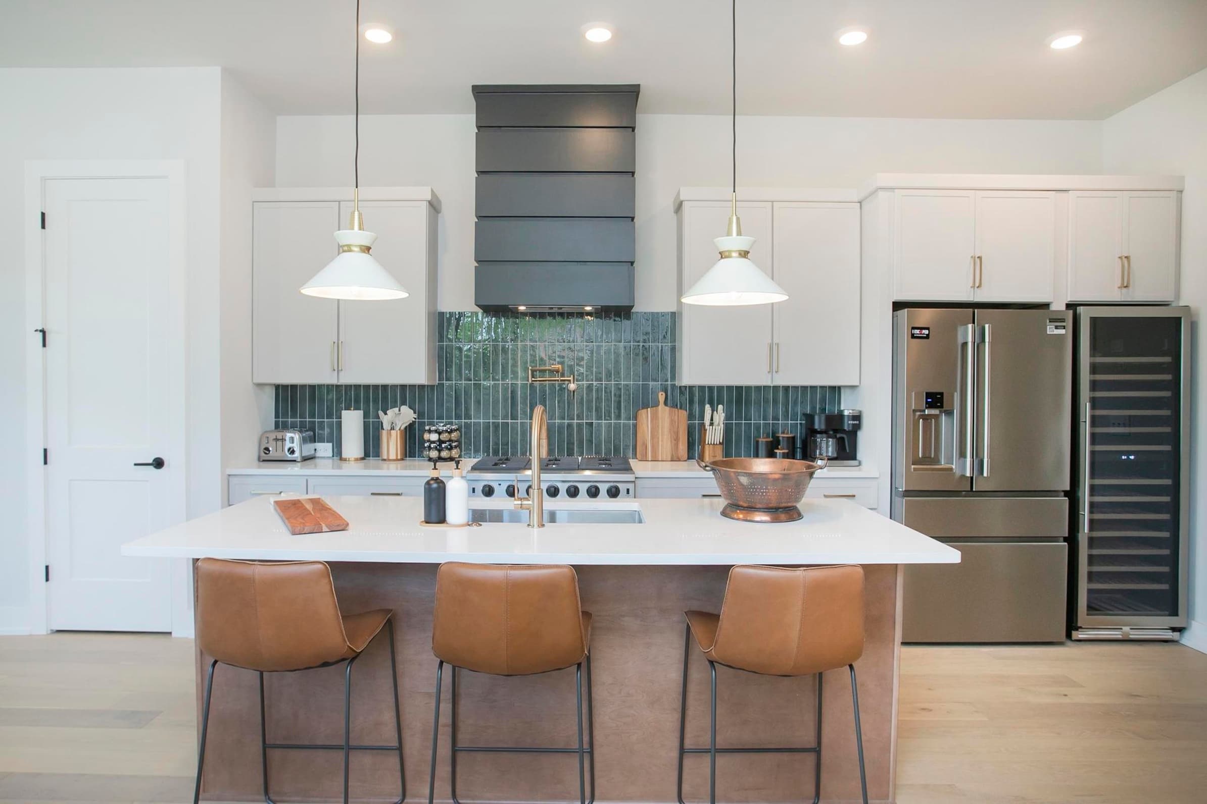 If you’re in need of some fresh air after a day of traveling, head straight up to the spacious top-floor, where you can prepare a cocktail at the wet bar and walk out onto the rooftop deck offering downtown views. Picture yourself looking up at the stars curled up close to your loved ones around the firepit when you return from an evening out on the town. Or try to catch the sunrise first thing in the morning after grabbing a cup of coffee from the Keurig on the top-floor or the traditional coffee maker in the kitchen.
