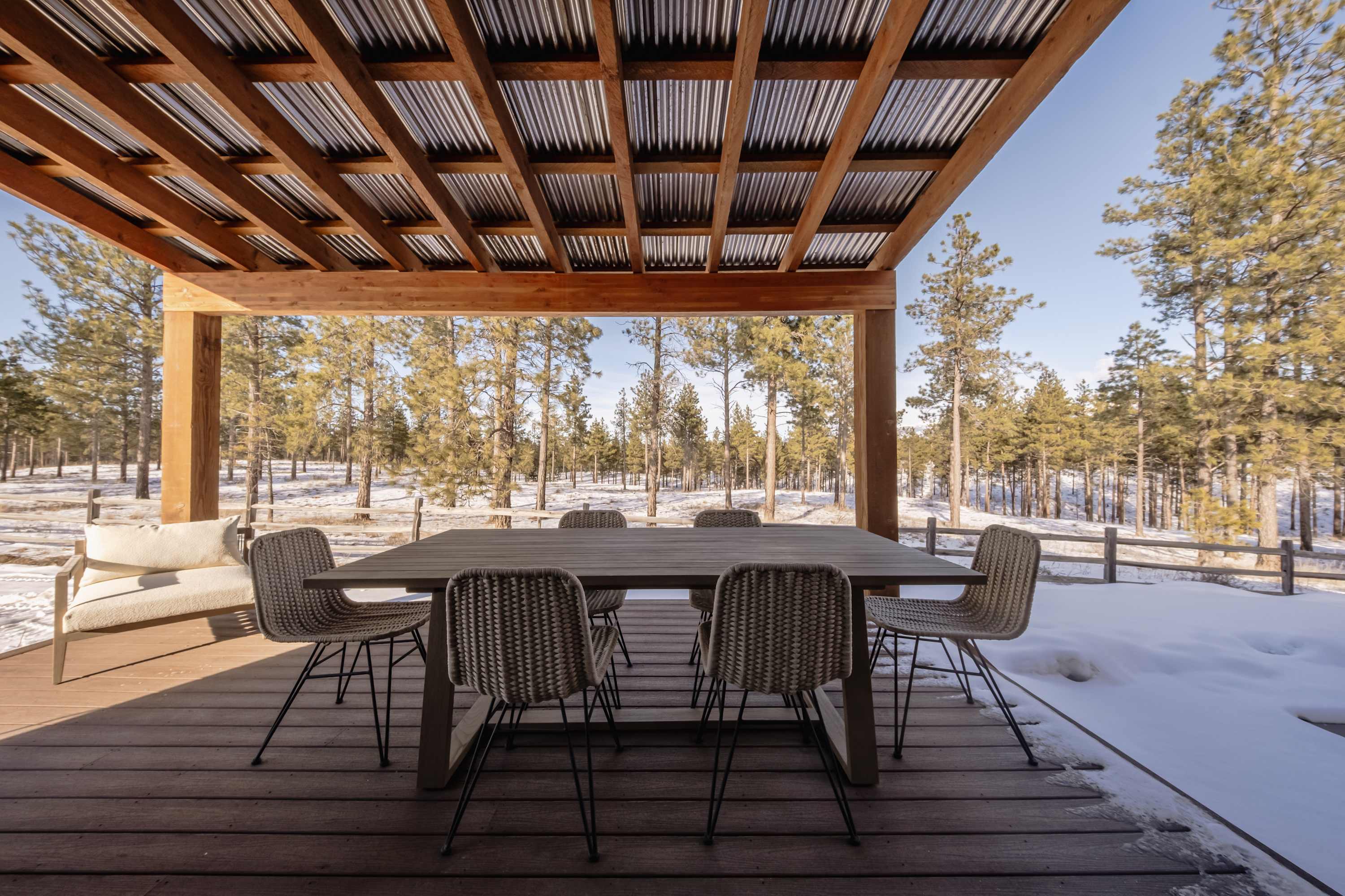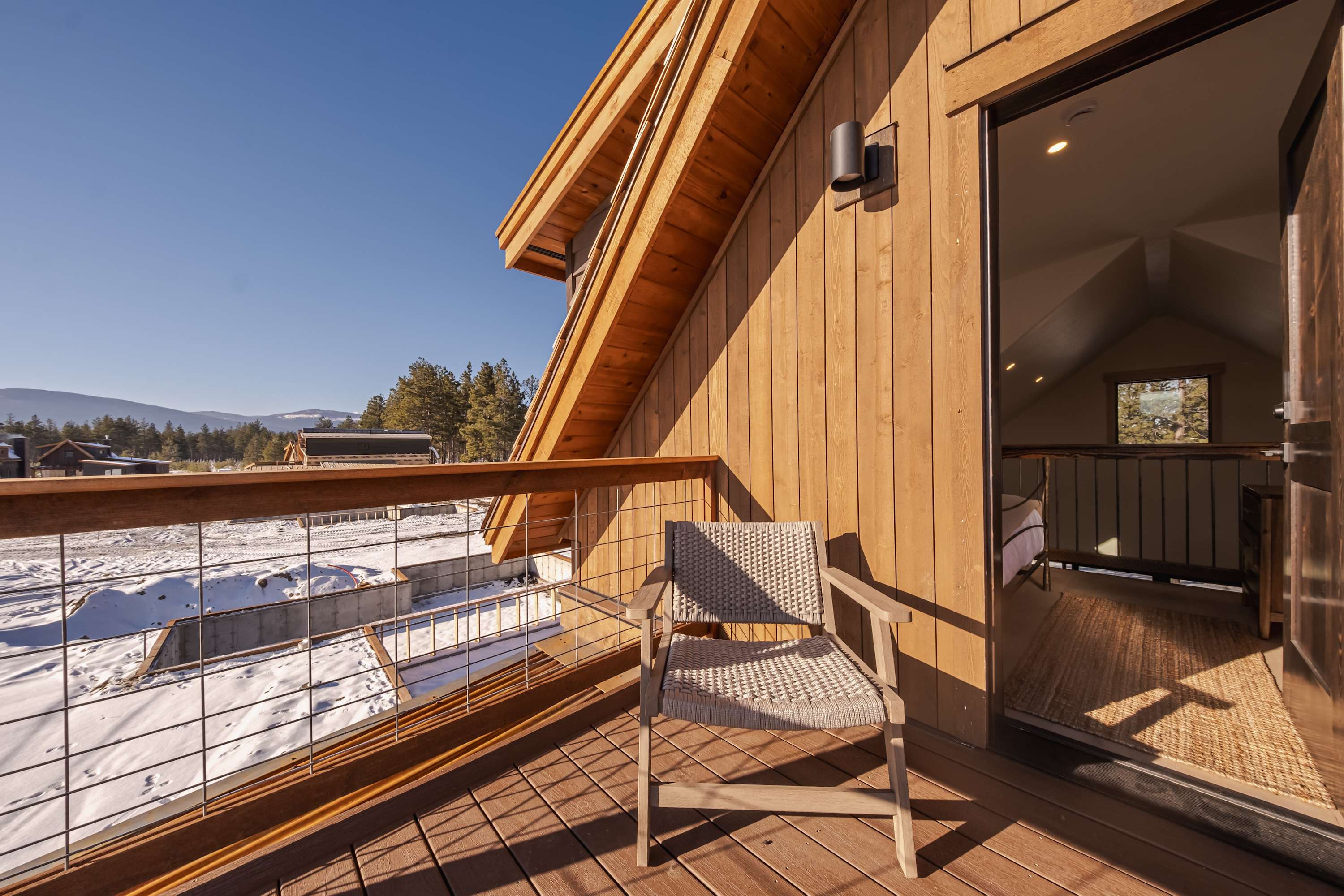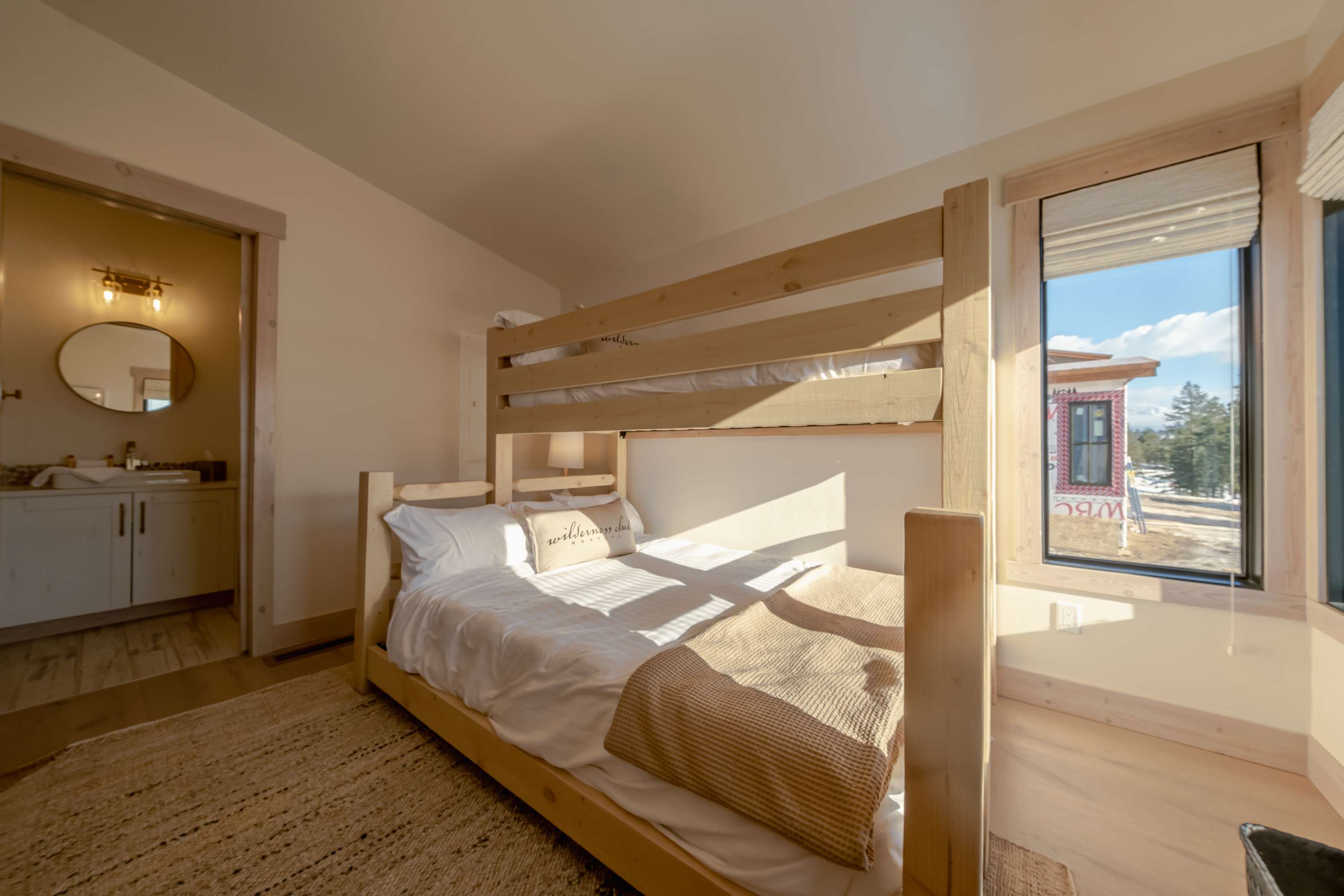 Once you’ve arrived home after a busy day exploring the area, the patio invites you to unwind and reconnect with cozy seating, a fire pit, and a soothing hot tub. Get cooking on the grill or order dinner in and enjoy your meal with a view at the table for six. Then head inside to warm up in the open-concept living room lined with windows that frame picturesque mountain views. Comfortable seating, including a plush couch and an armchair, surrounds a smart TV next to the gas fireplace, creating a cozy spot to relax. Whether you're seeking adventure or tranquility, Wilderness Club Nest offers the perfect backdrop for creating lasting memories in the heart of Montana’s natural beauty.