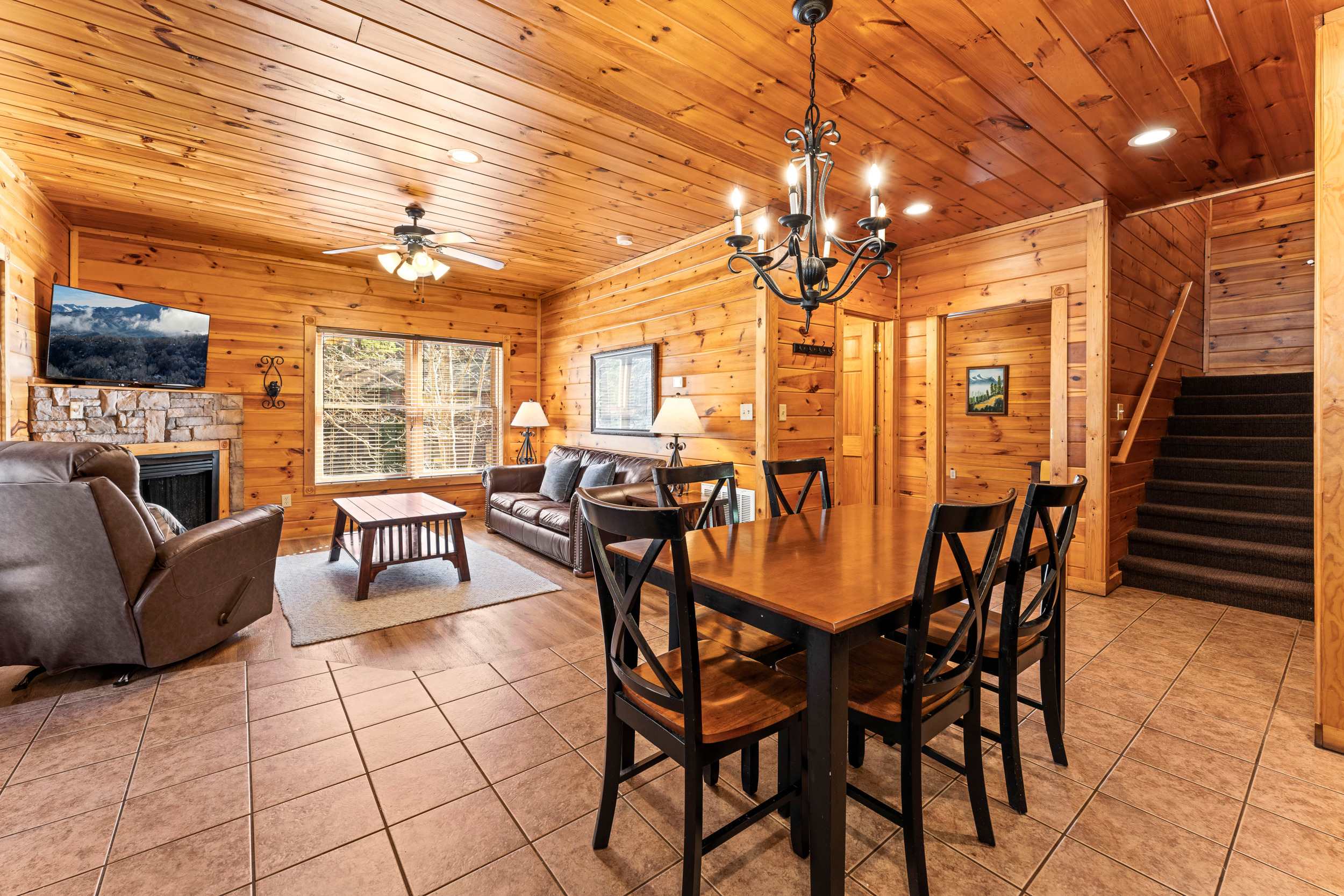 This cozy cabin in the heart of the Smoky Mountains offers a blend of rustic charm and modern amenities, making it an ideal destination for your next getaway. As part of the Gatlinburg Falls Resort, guests have access to resort amenities including a heated outdoor swimming pool, as well as arcade games, pool tables, and a hot tub available at the cabin. Whether you’re planning a family vacation, a romantic retreat, or a fun trip with friends, Carefree Daze provides a welcoming space to relax and unwind.