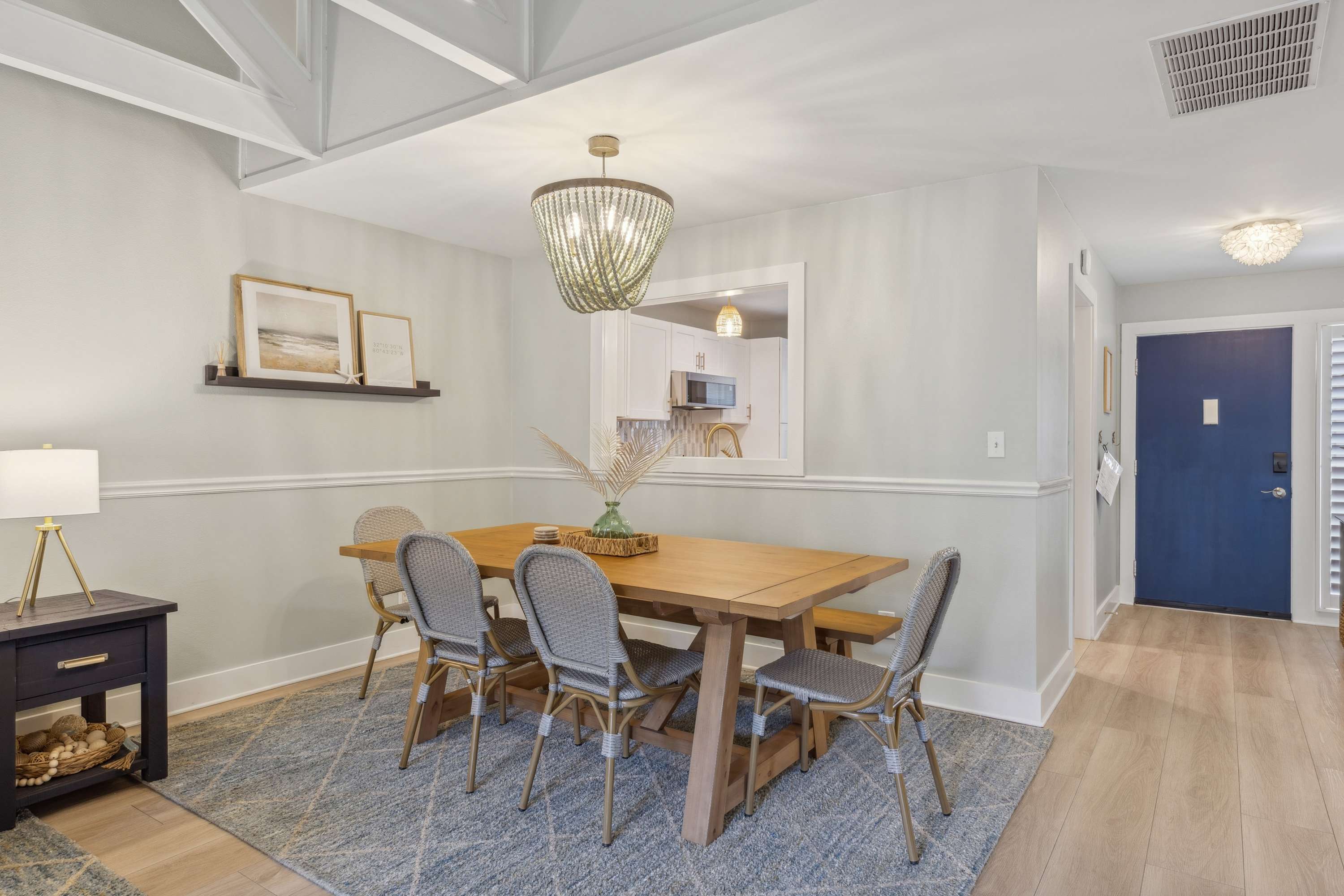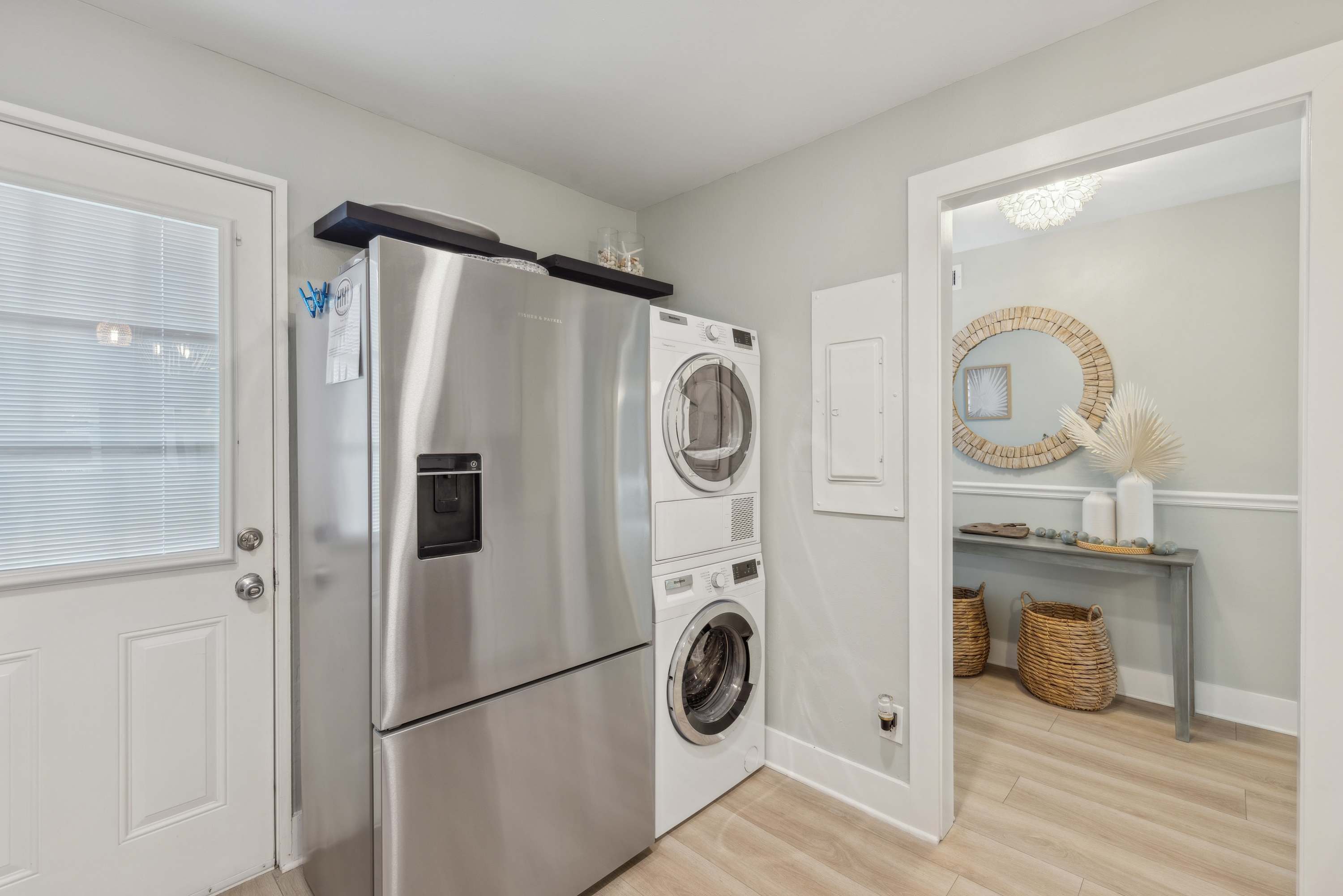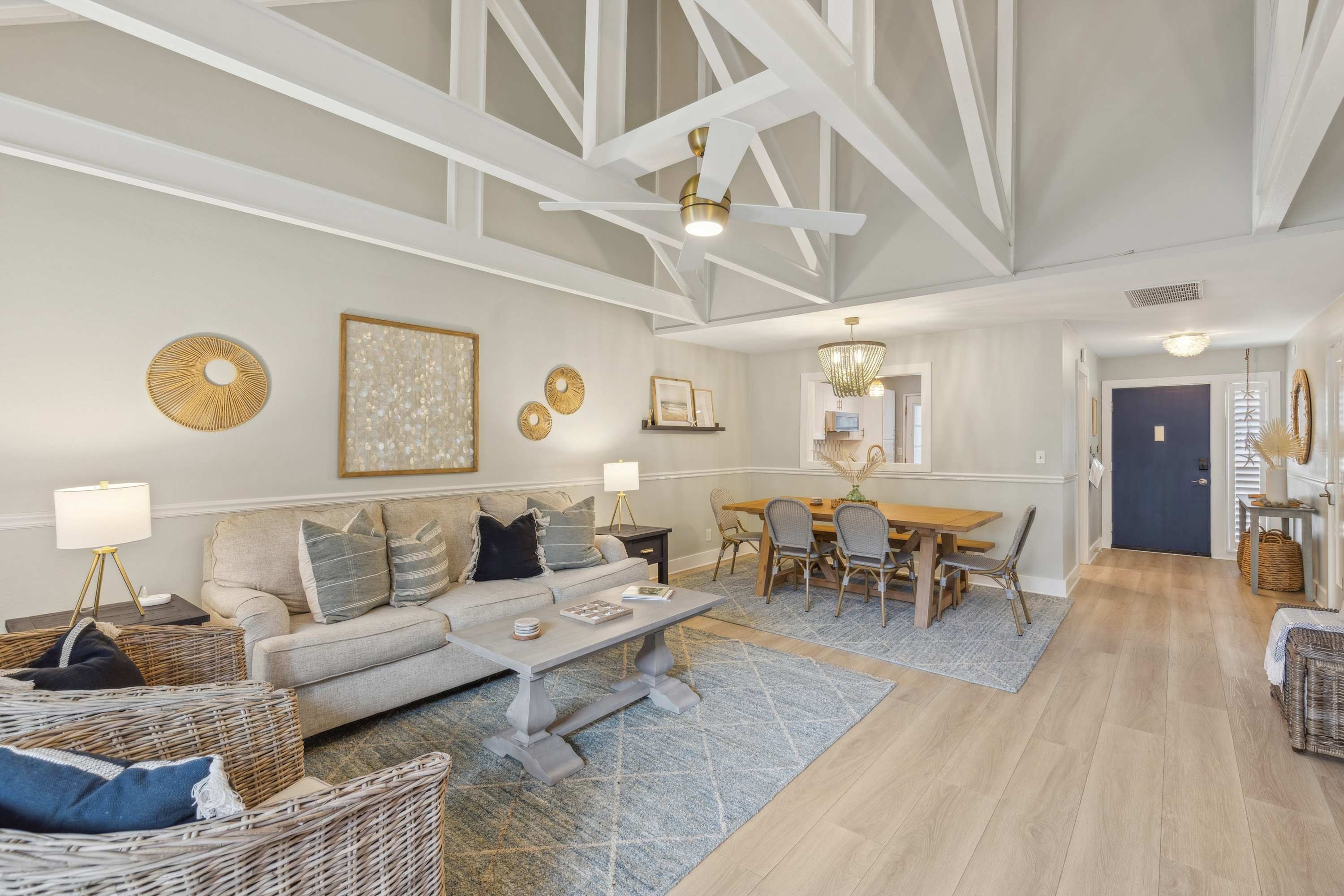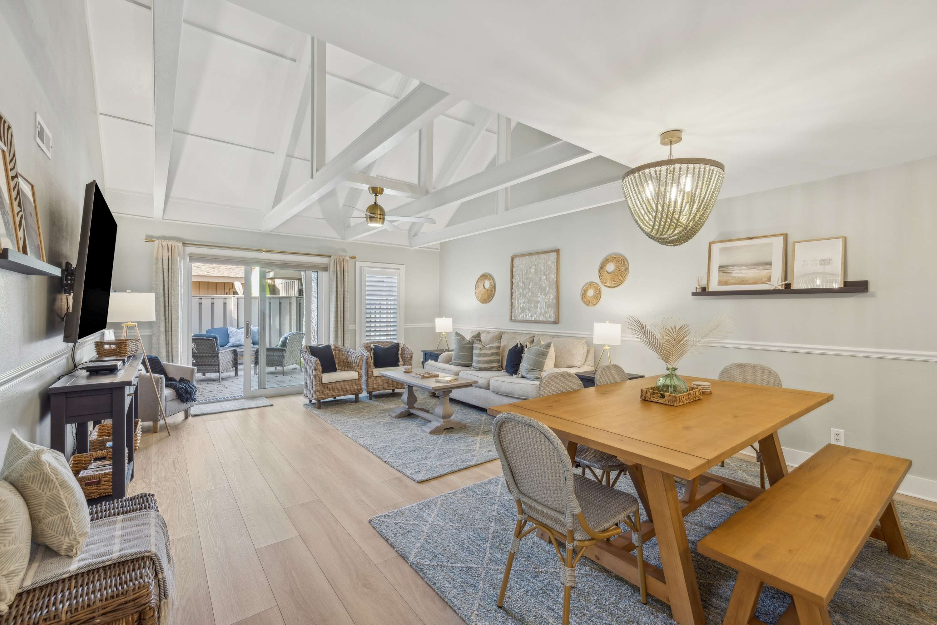 Unwind in the comfortable living area, stream your favorites on the smart TVs in each bedroom, and stay connected with Wi-Fi. If you need to check in with work, a laptop-friendly workspace makes it simple. Step outside to the furnished patio for morning coffee or evening BBQs, then rinse off in the enclosed outdoor shower after a beach day. Practical perks like an in-home washer and dryer and a Culligan water softener system help keep your stay smooth.