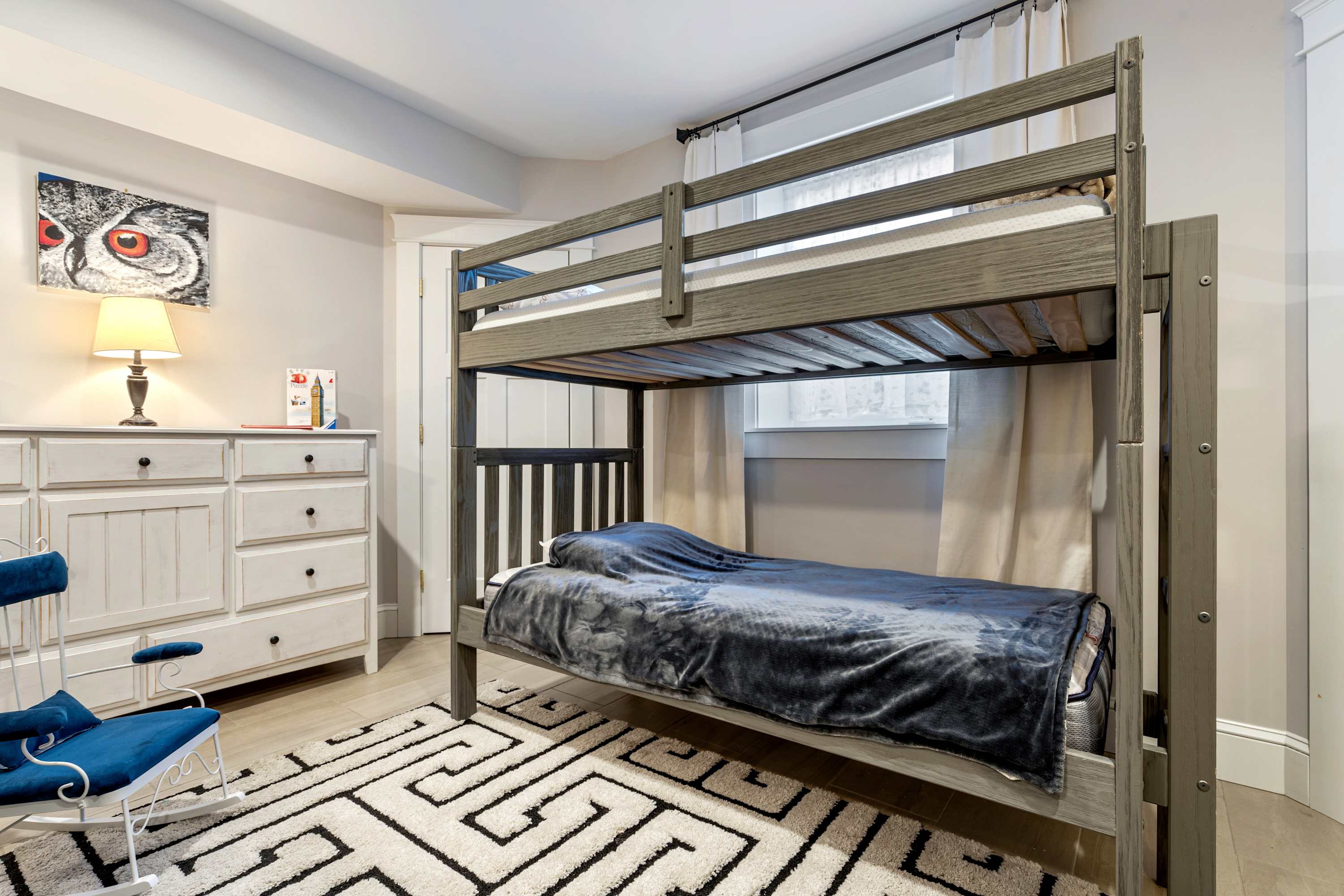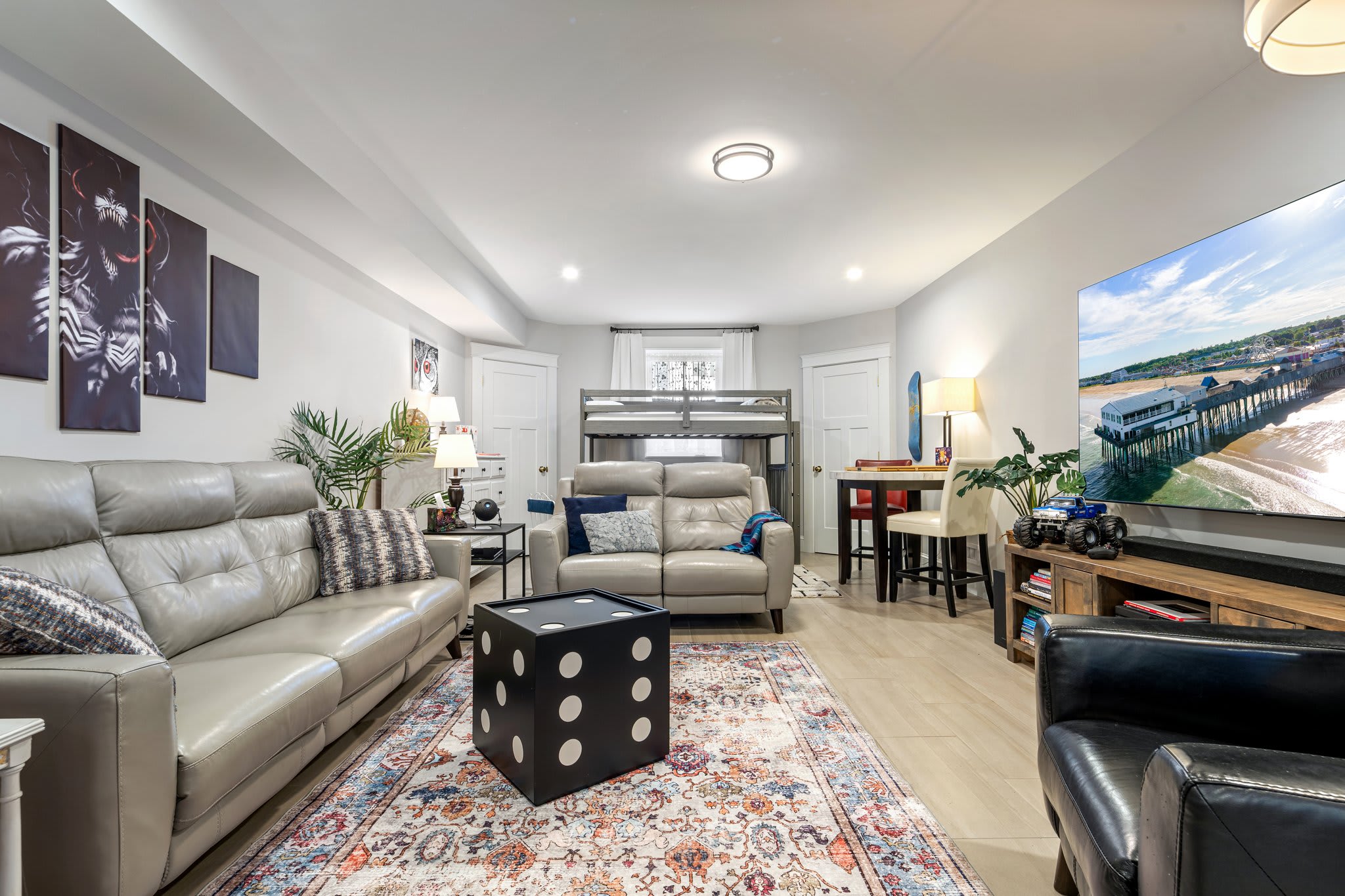 • Bedroom #4 (Game Room): Twin-over-twin bunk bed, smart TV