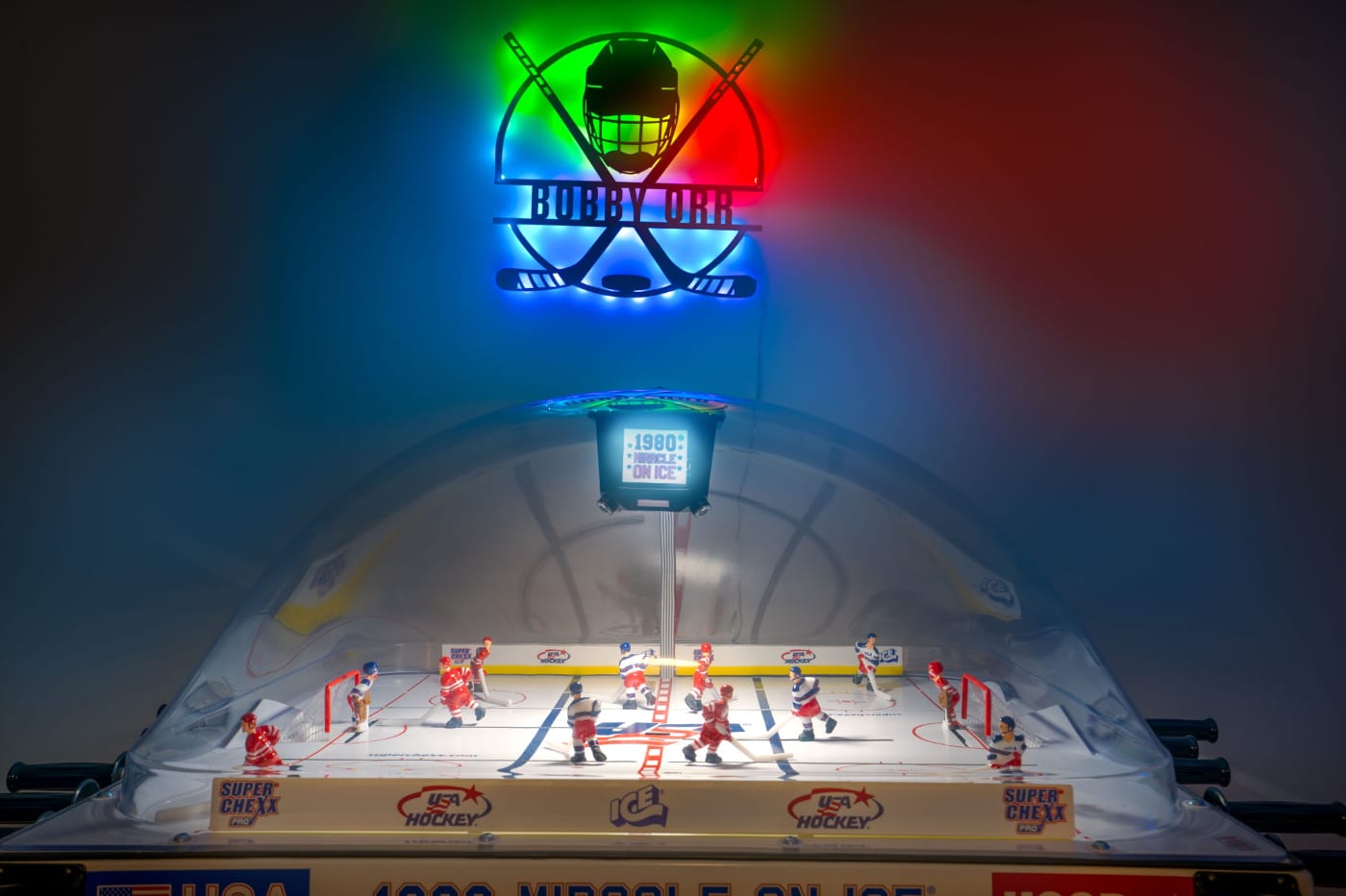 • 1980 Miracle on Ice Bubble Air Hockey – Collector’s edition with a mini jumbotron
