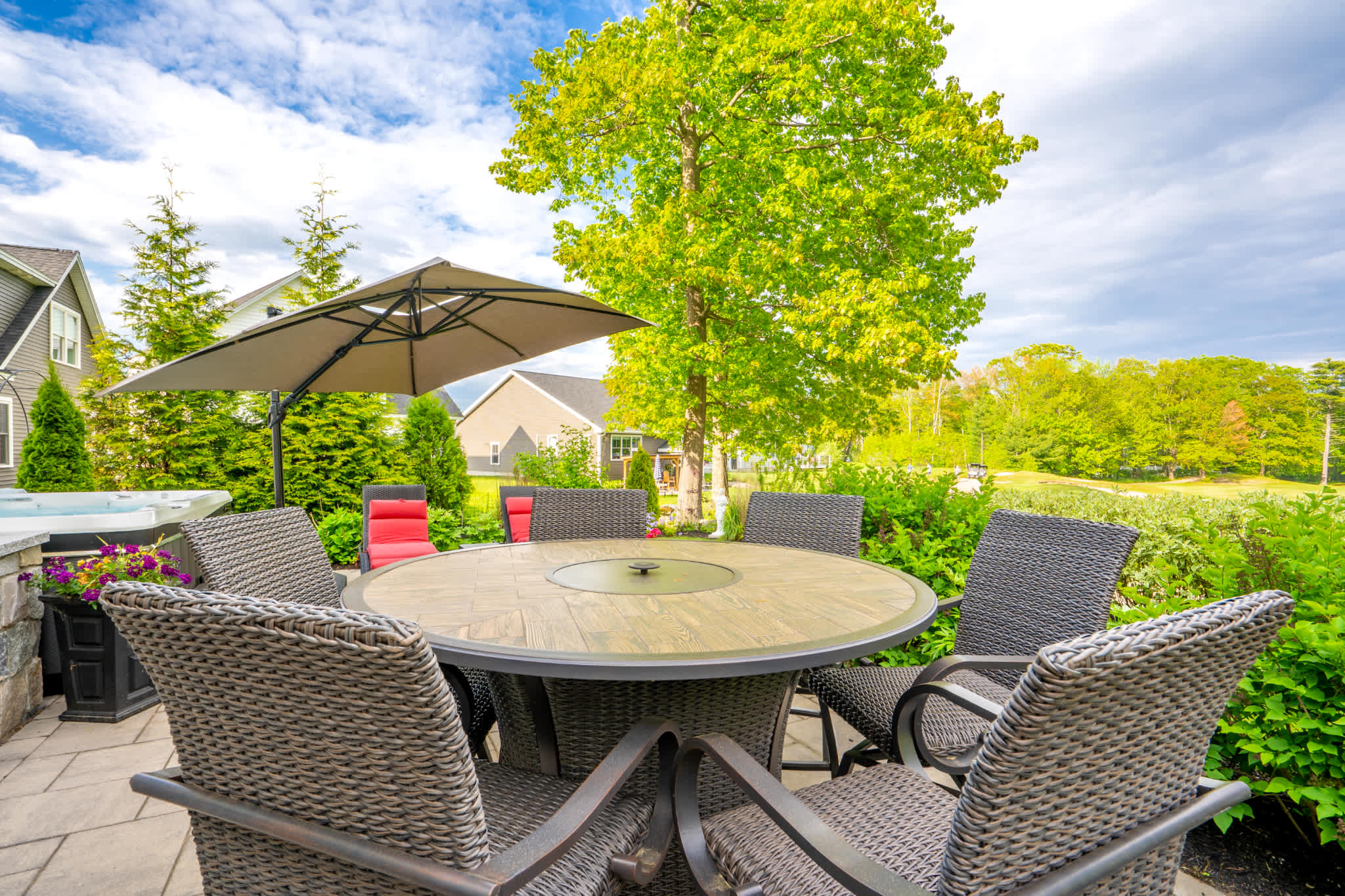 • Spacious patio with outdoor dining table & lounge chairs