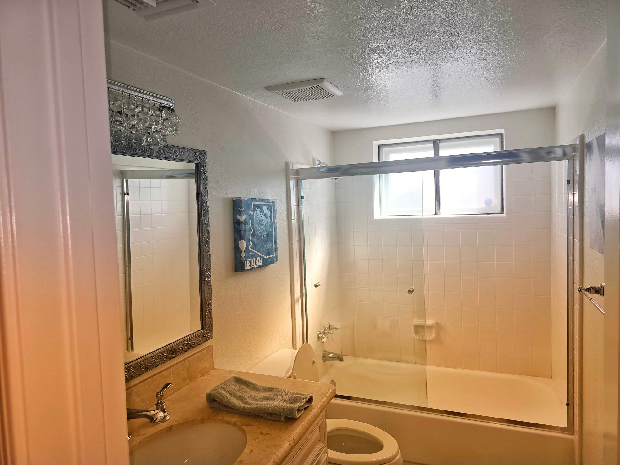 This home also includes a full bathroom with a single vanity and a shower/tub combo.