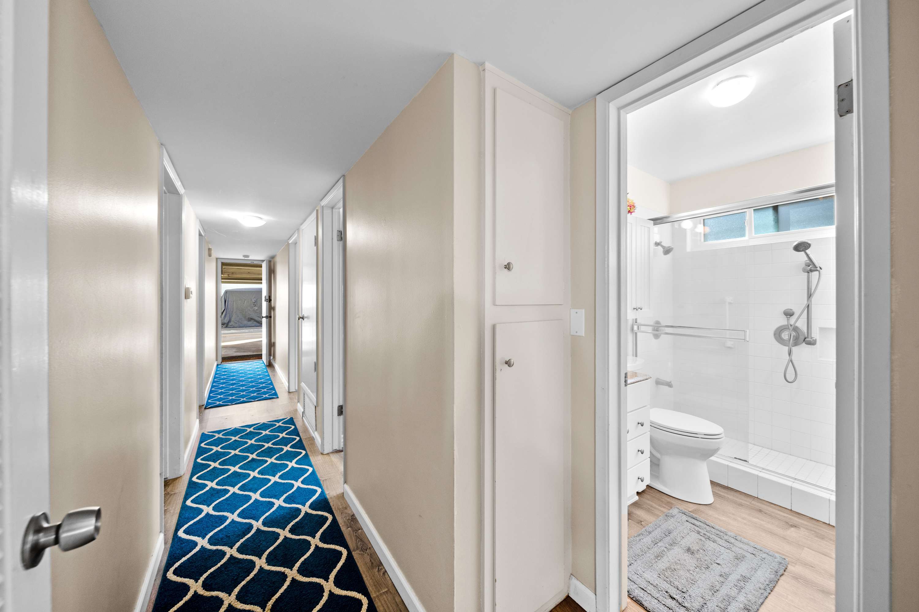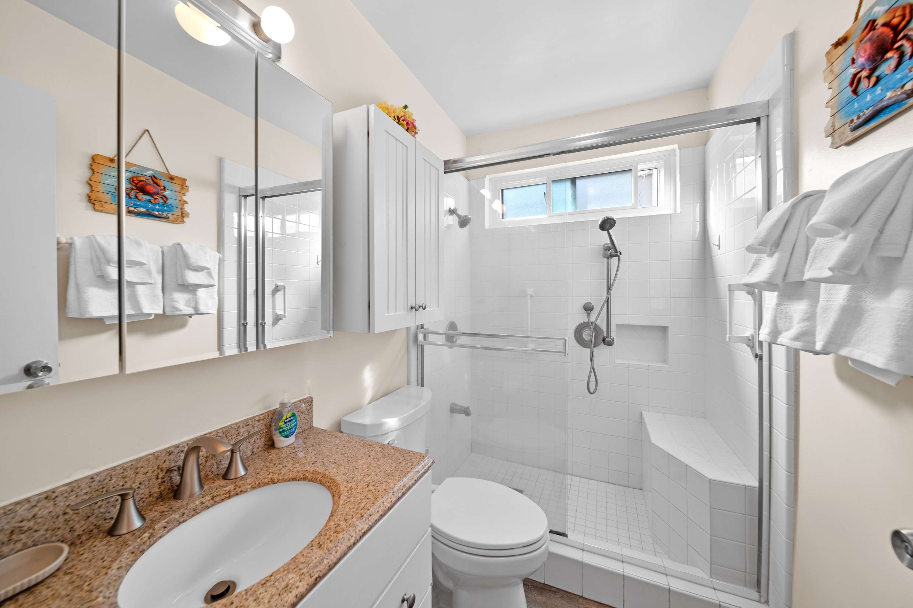 The home also includes 2 full bathrooms, one with a single vanity and a walk-in shower, and another with a single vanity and shower/tub combo.