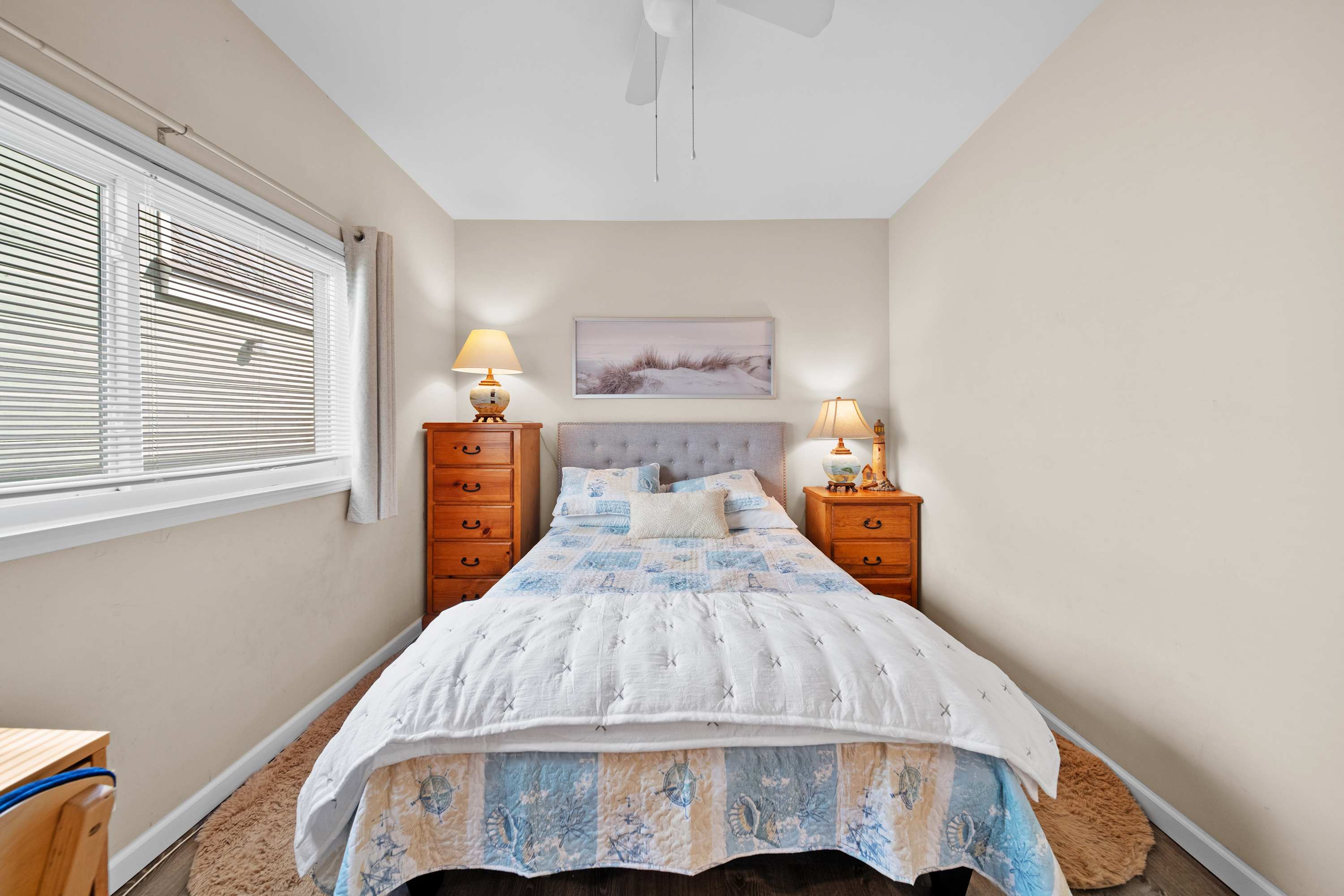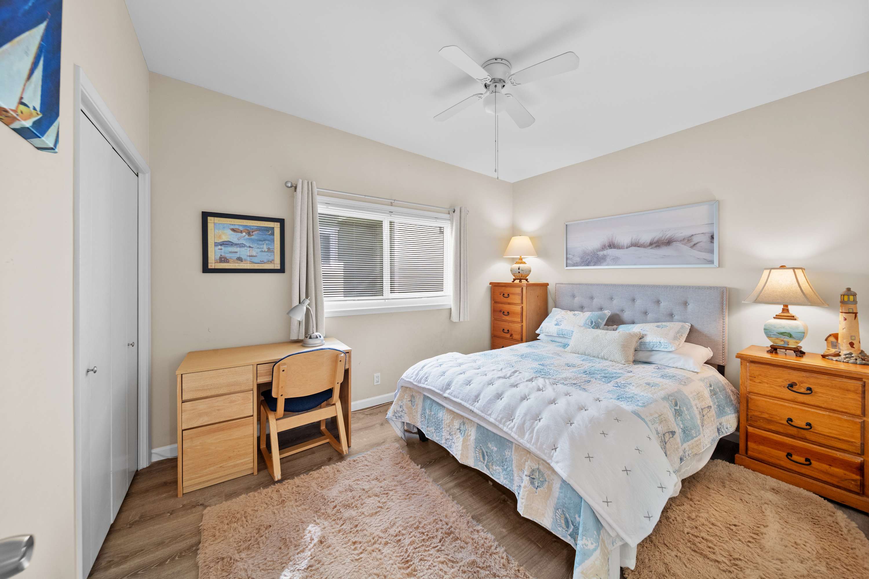 Bedroom #2 includes a queen size bed and a desk.