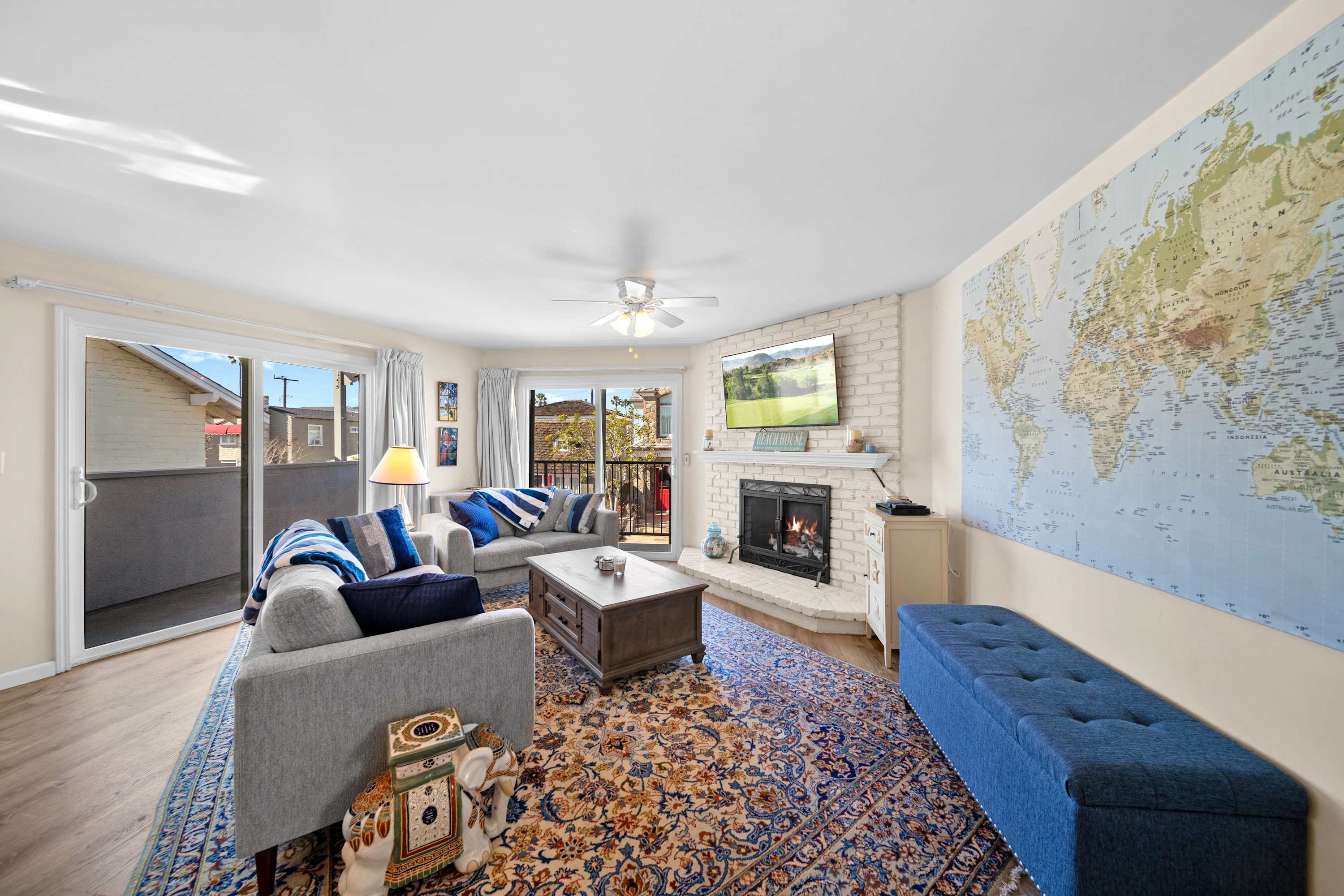 The outdoor space enhances the experience, with a private balcony offering seating for two—an ideal spot to savor your morning coffee or an evening glass of wine beneath the stars. Just beyond your doorstep, Balboa Island invites you to wander its charming boardwalks, rent a Duffy boat for a peaceful cruise through Newport Harbor, or explore nearby attractions like Fashion Island’s premier shopping and dining. With its unbeatable location, walkable streets, and easy access to coastal adventures, Ruby Villa B is a perfect haven for your Newport Beach getaway.