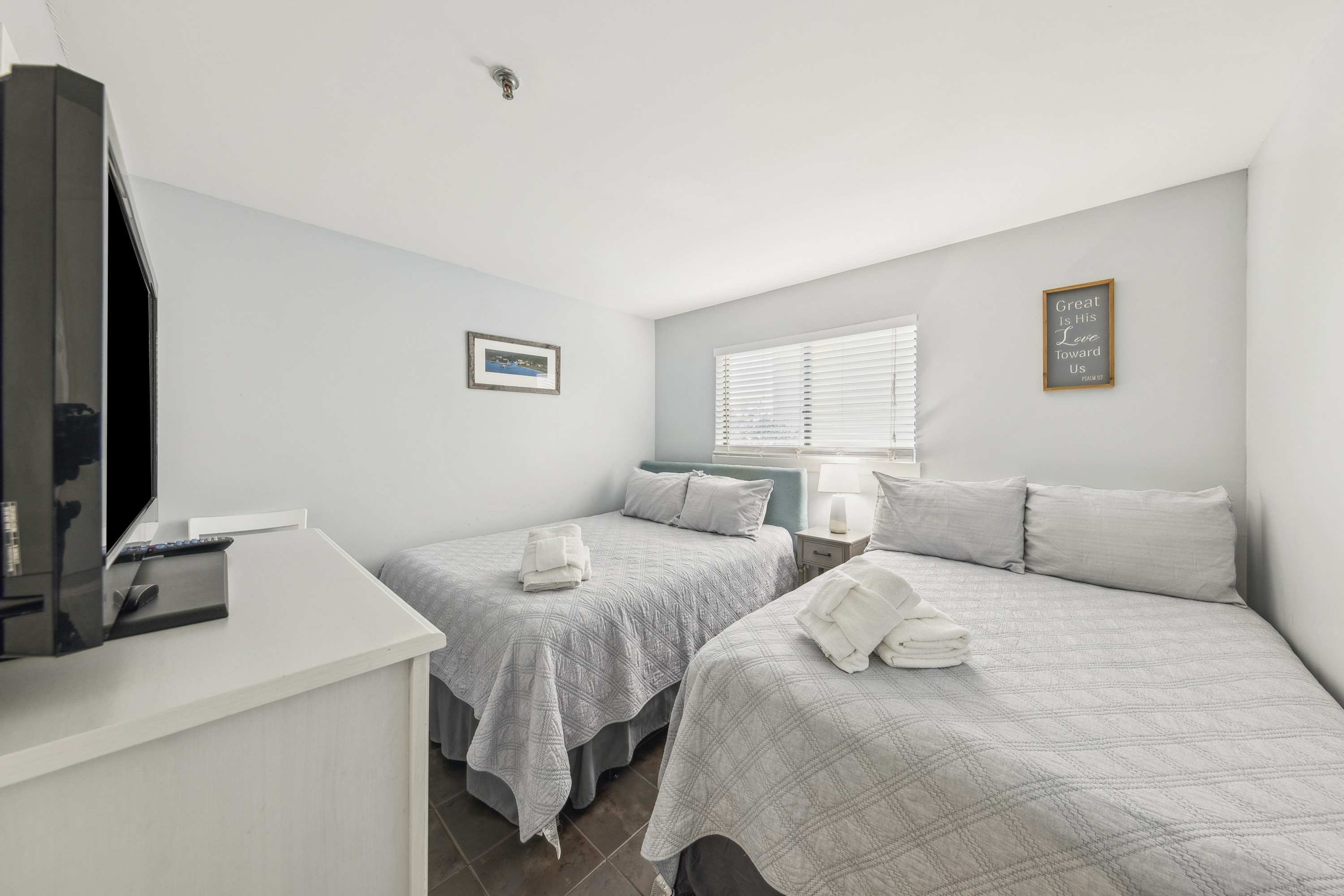• Bedroom 2: One queen bed and one full bed, Smart TV. Sleeps up to 4.