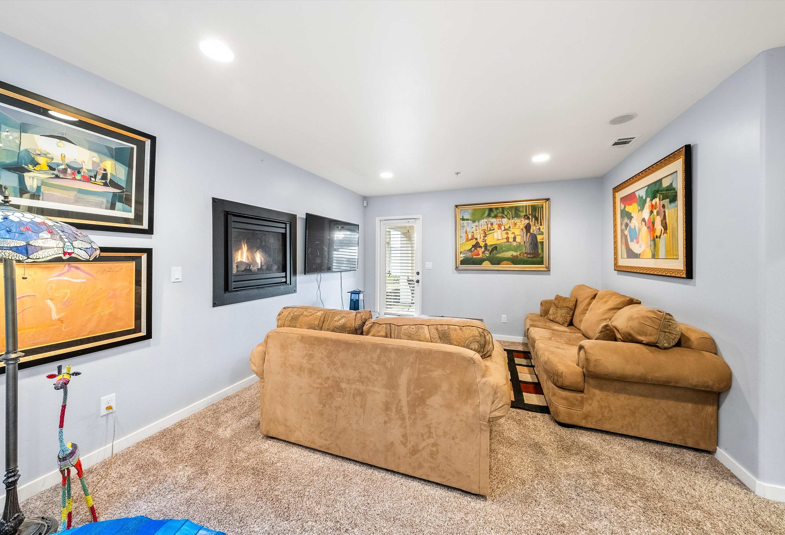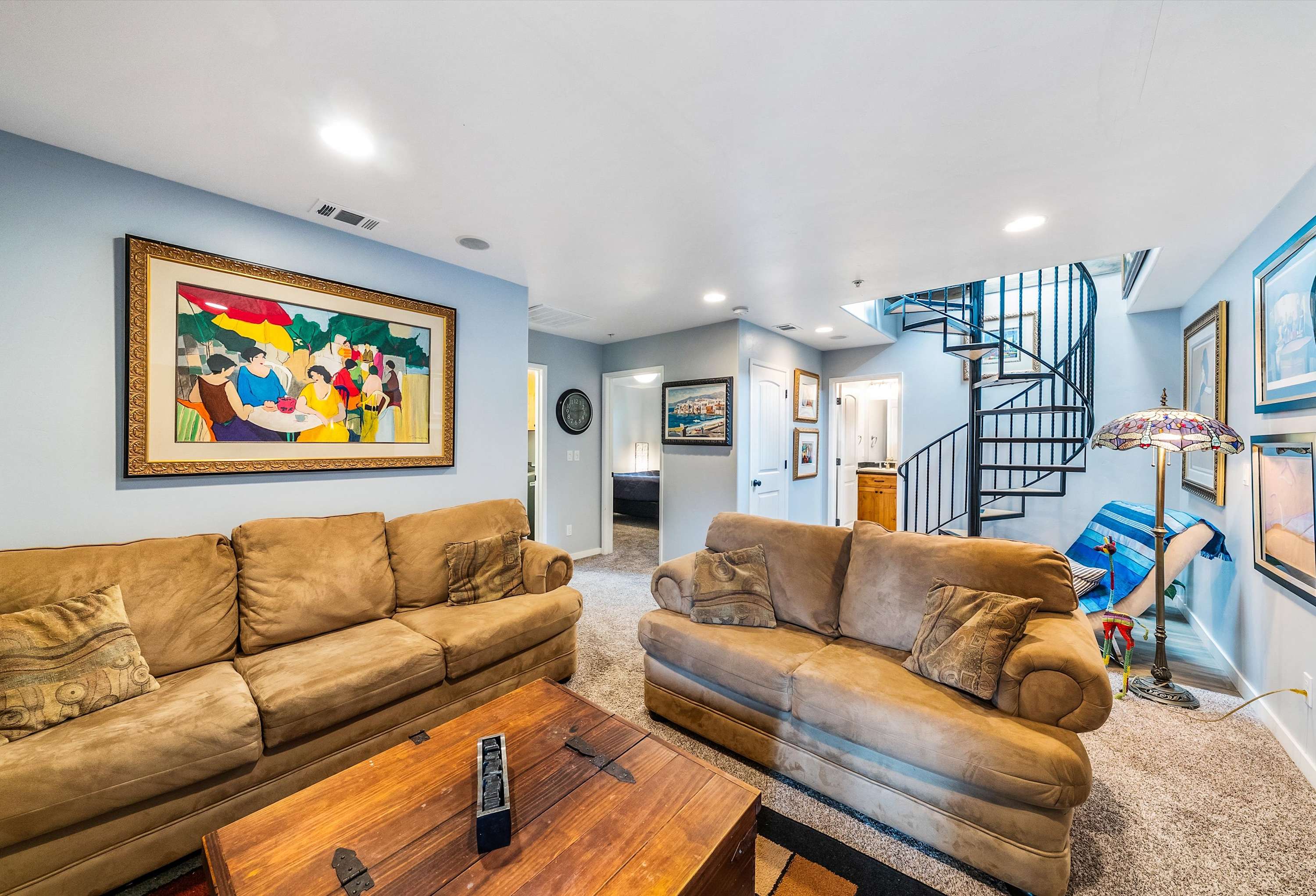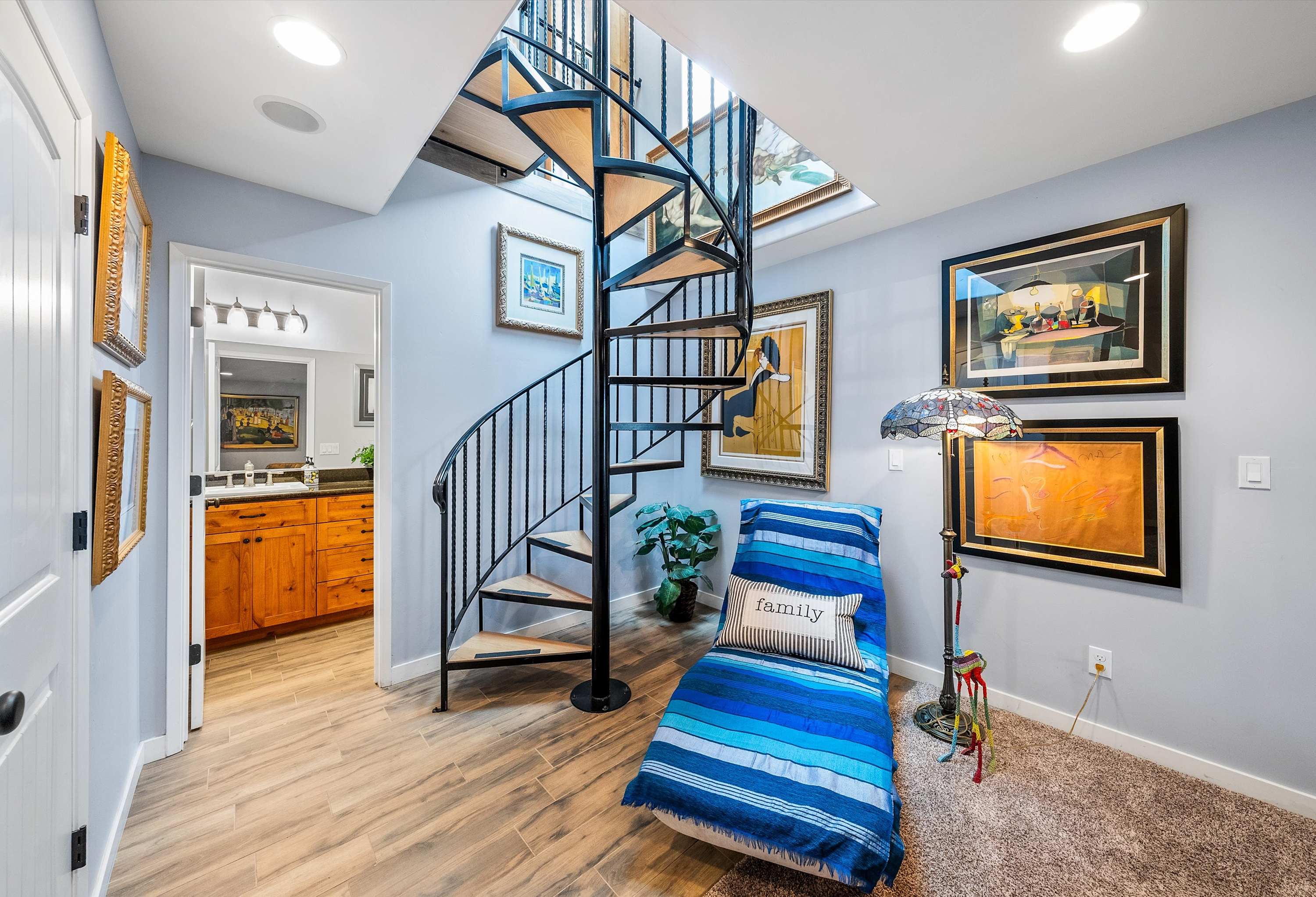 When you venture downstairs via the spiral staircase, you’ll discover an additional living space designed for relaxation. Head down to this lower-level retreat, featuring a comfortable couch and love seat, a second fireplace, and another smart TV, for some downtime or a quiet evening in. A cozy reading area offers the ideal spot to curl up with a good book after a busy day exploring the Monterey Peninsula. With its spacious layout, thoughtful amenities, and ideal location near Monterey’s top attractions, Otter’s Nest offers everything you need for a memorable vacation. Whether you're traveling with family or friends, this inviting retreat is sure to provide a relaxing and enjoyable stay.