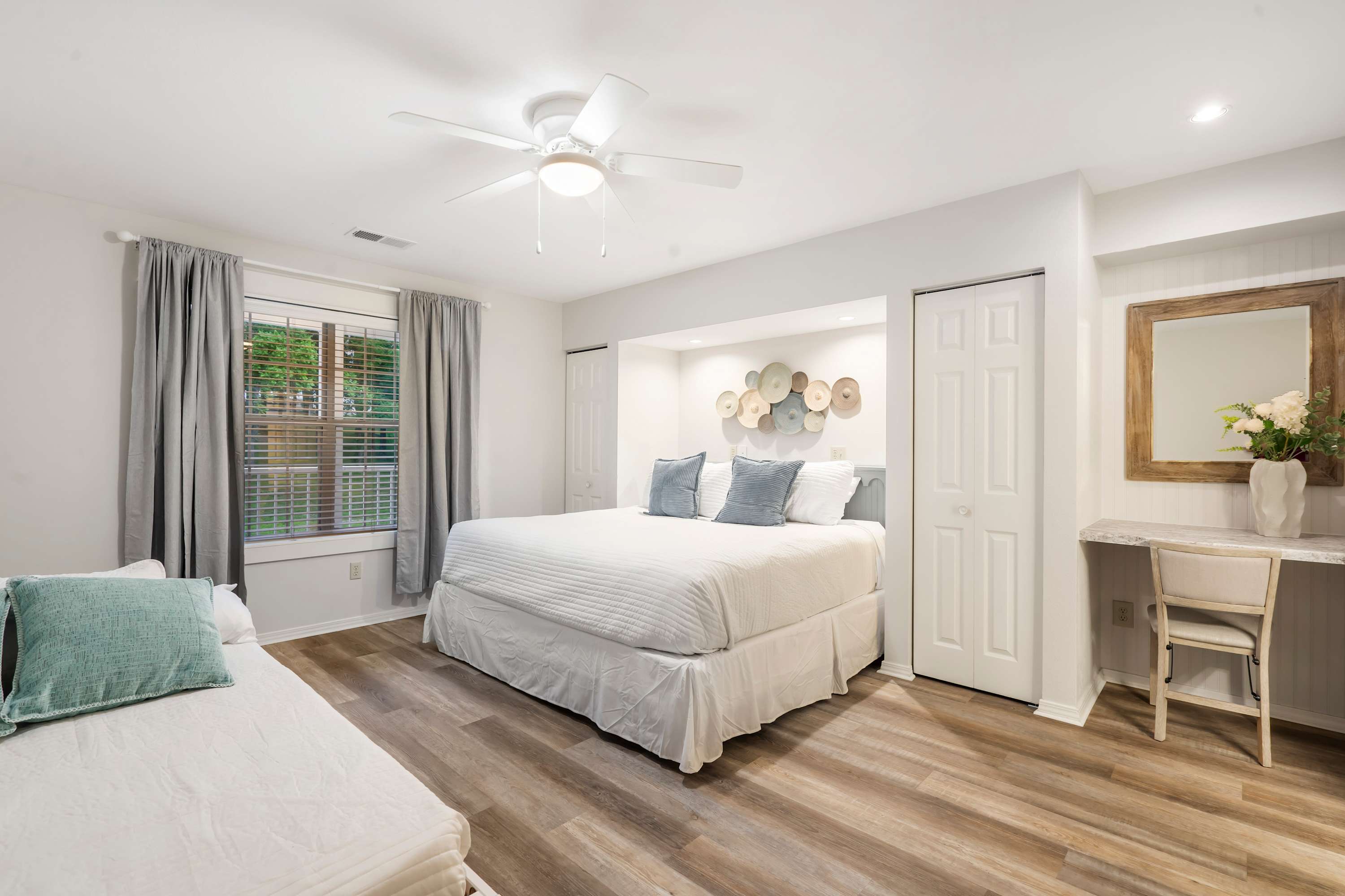 This home comfortably sleeps 7 guests between 2 private bedrooms and a queen size sleeper sofa in the living room.