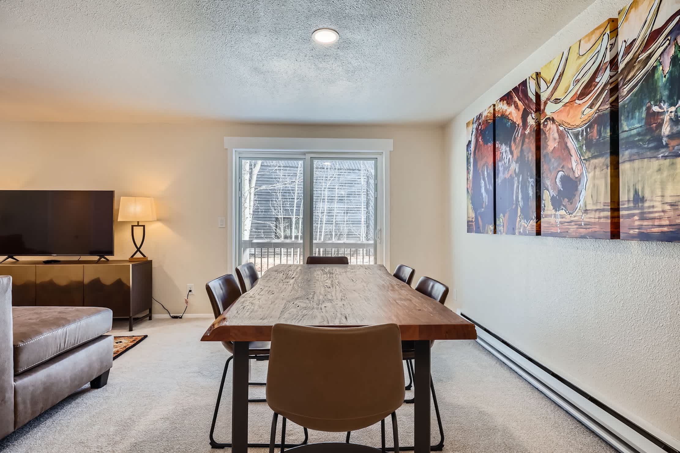 Designed for easy mountain getaways, this comfortable townhouse offers space for families and friends to relax between adventures. The main living area features a full-size sleeper sofa for extra guests and room to gather, while a desk in the primary bedroom provides a laptop-friendly spot to check in with work.